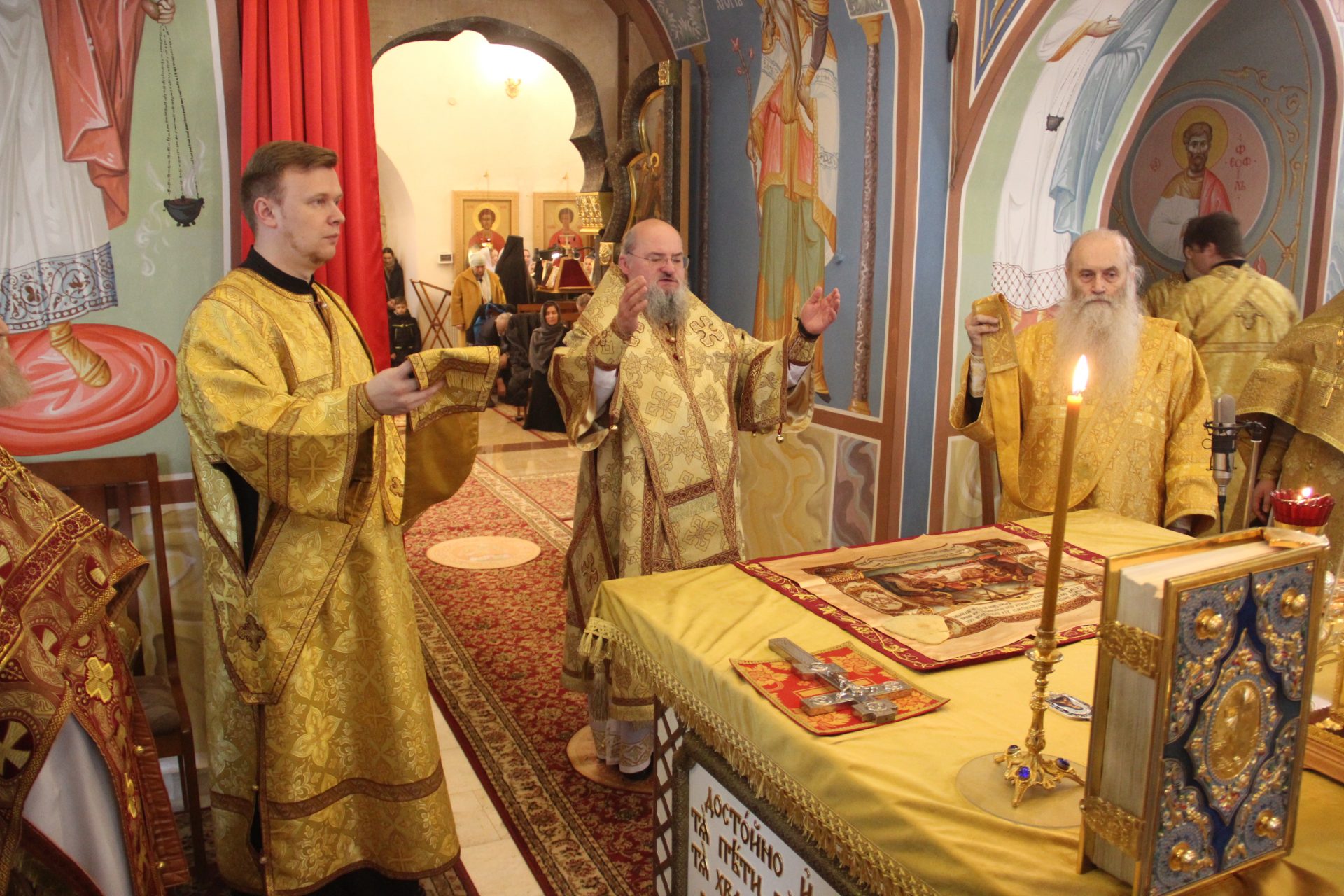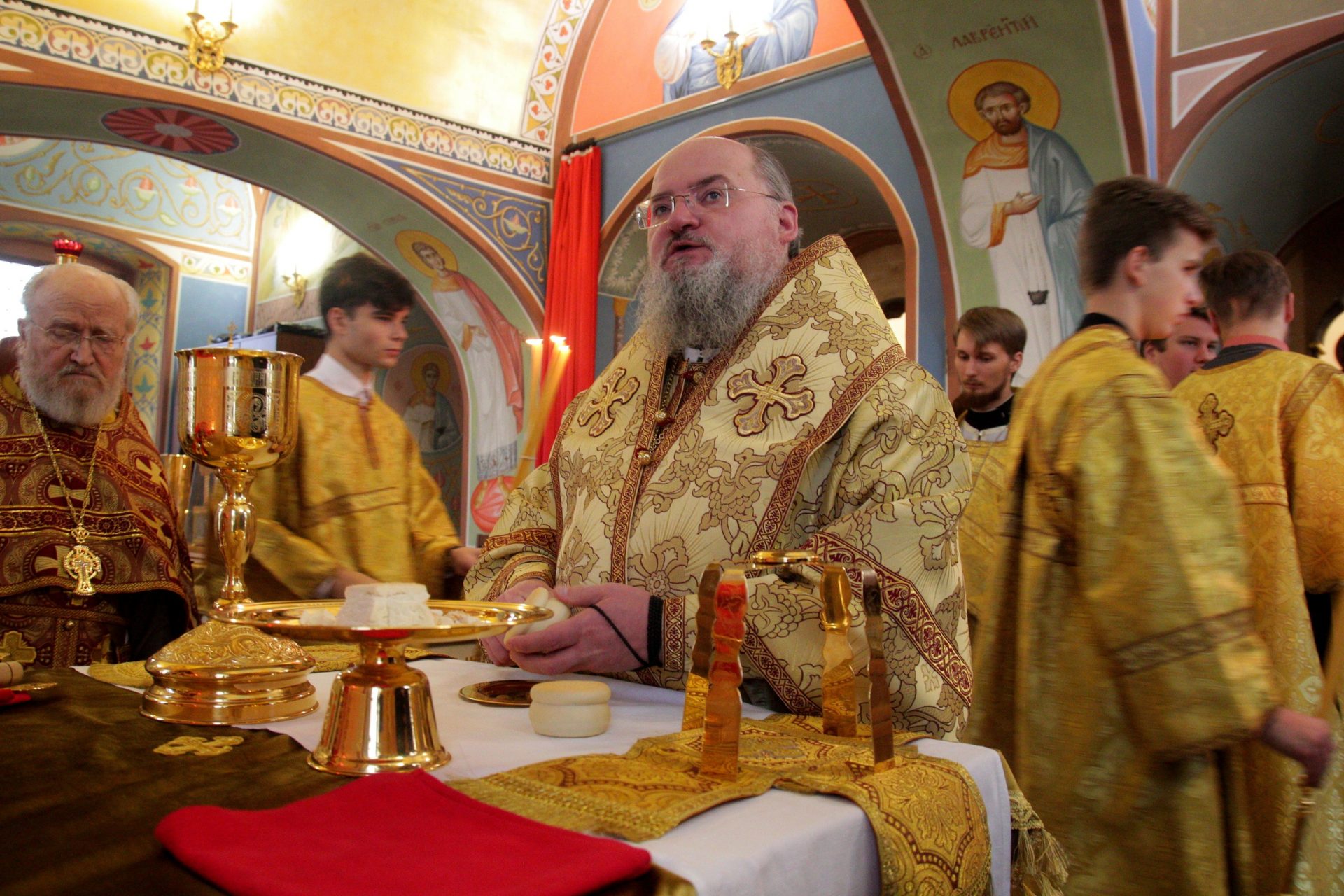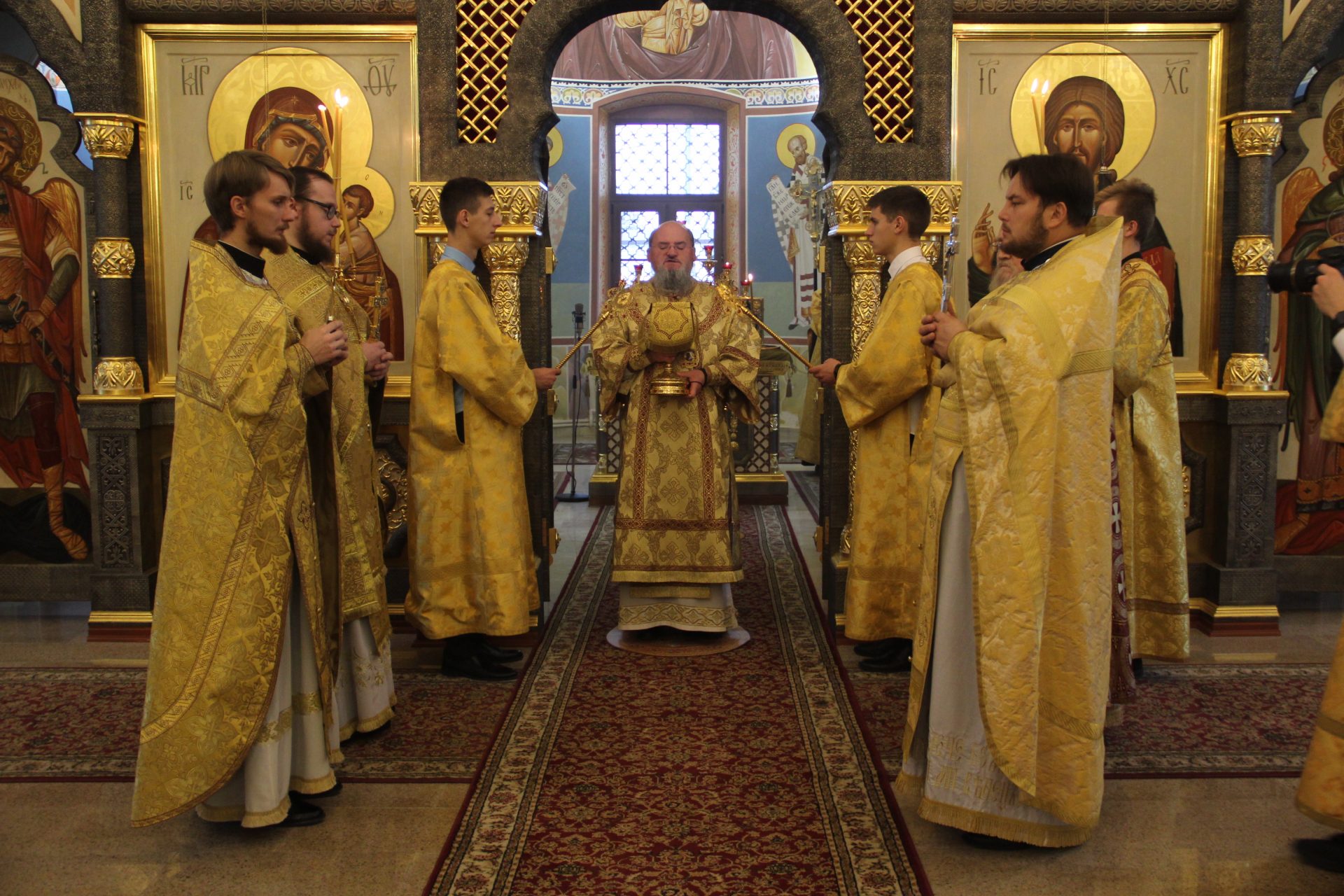 После отпуста литургии священнослужители совершили праздничный молебен святой великомученице Параскеве в завершение которого, вознеся молитву святой, владыка обратился к богомольцам с проповедью.