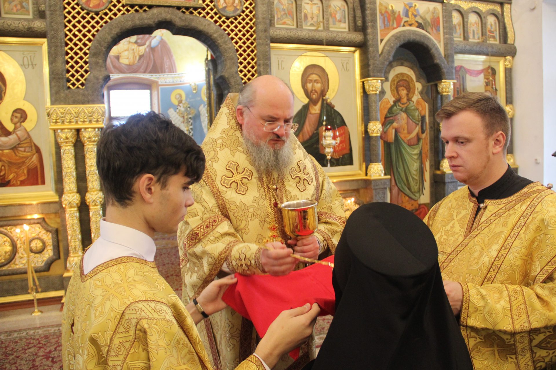 По благословению митрополита Калужского и Боровского Климента, епископ Козельский и Людиновский Никита совершил Божественную литургию в храме Калужской иконы Божией Матери соименного женского монастыря в городе Калуге.