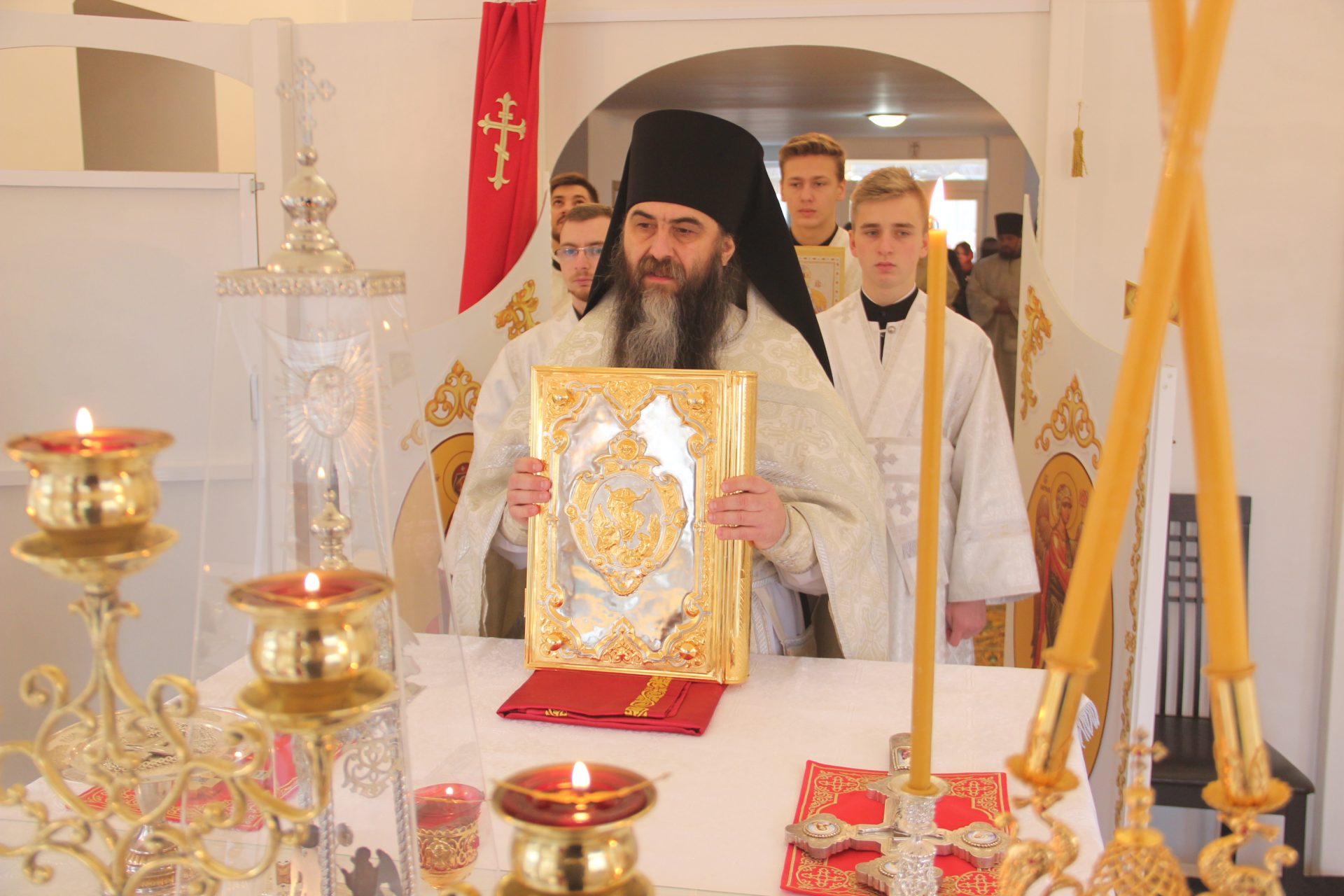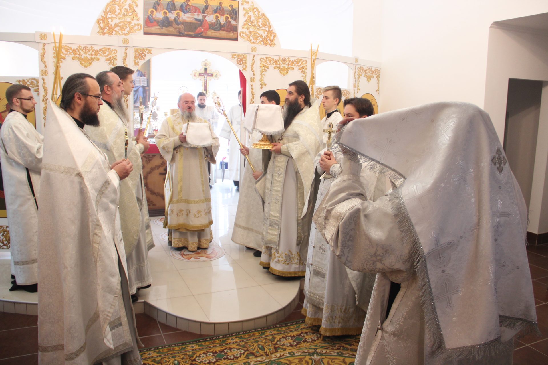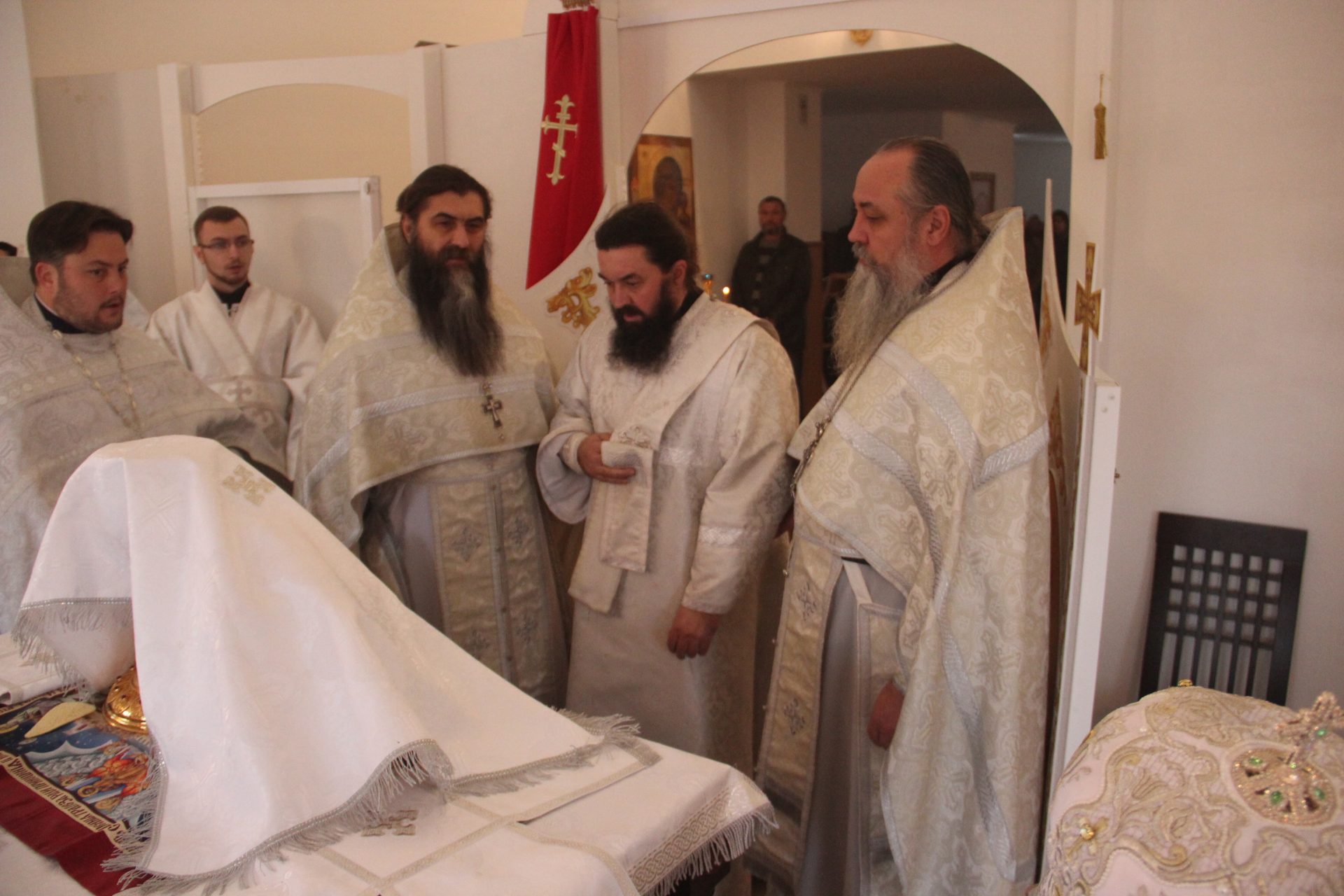 Преосвященному владыке сослужили: настоятель монастыря игумен Михаил (Семенов), протоиерей Сергий, протоиерей Антоний Хатунцев, иеромонах Паисий (Курмаз), братия монастыря в священном сане.