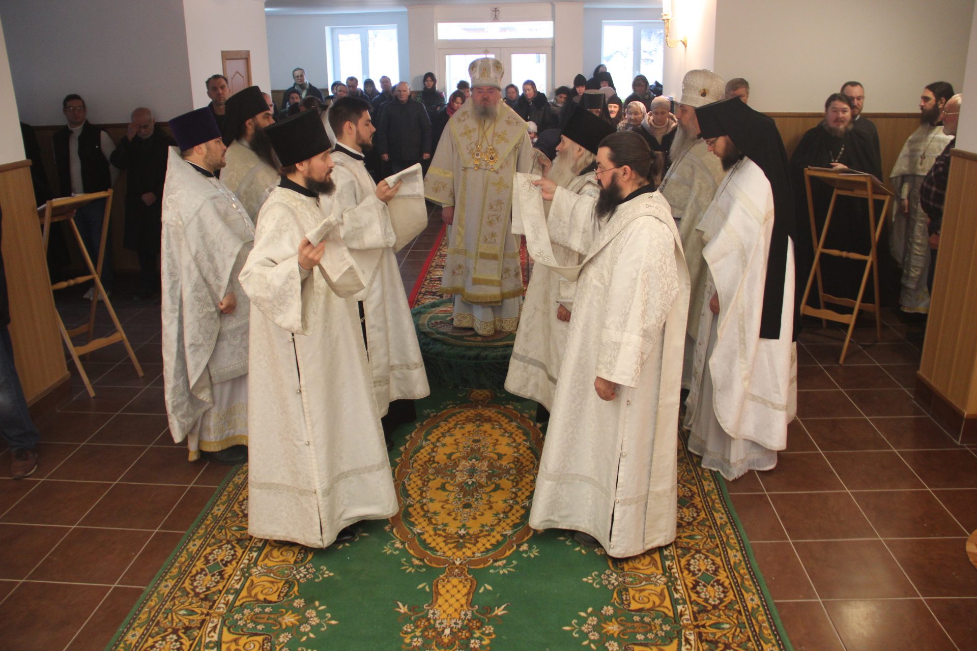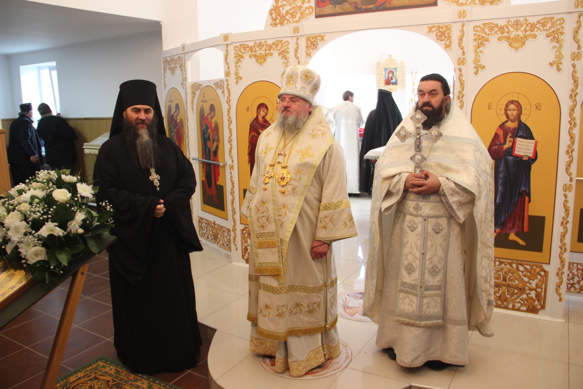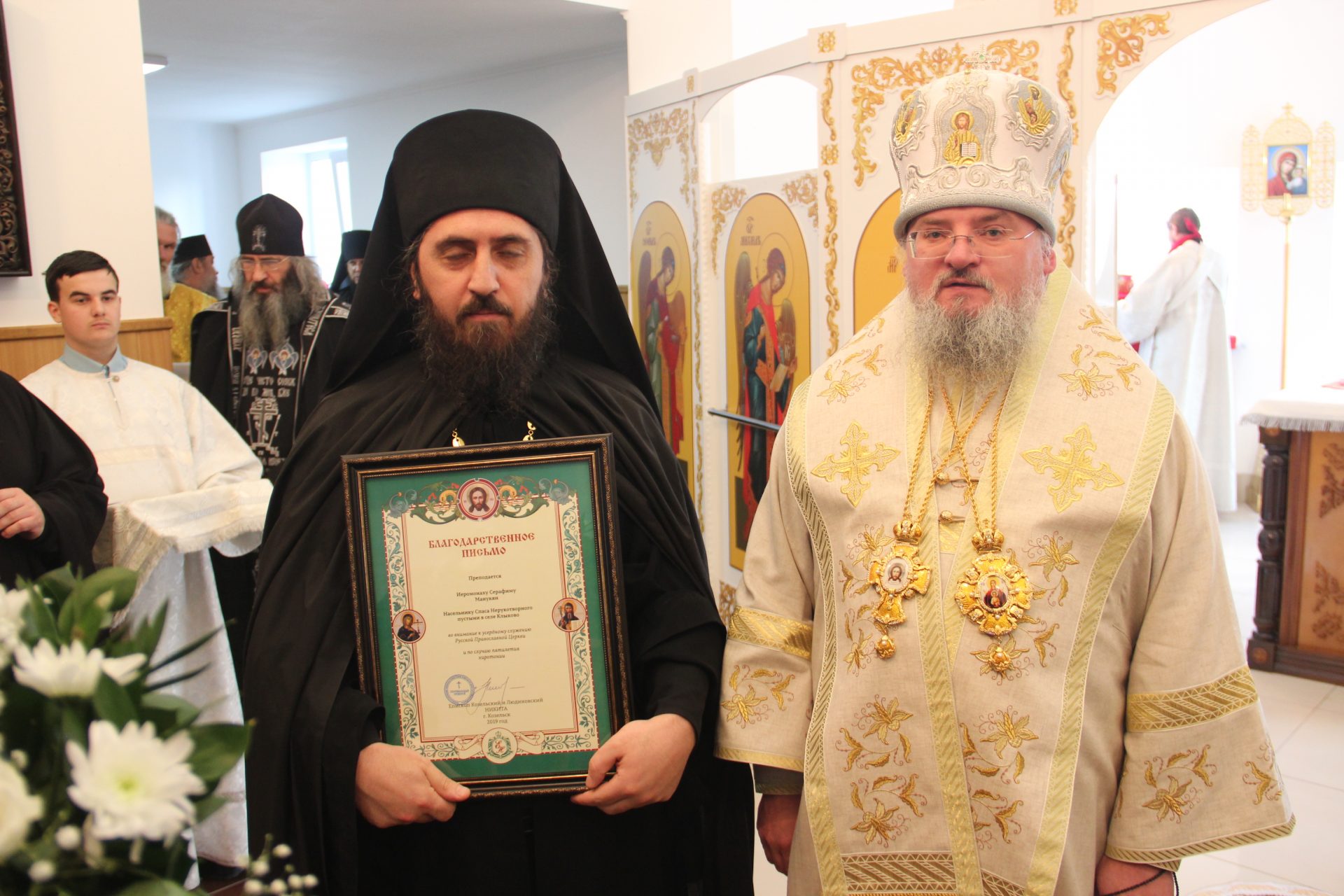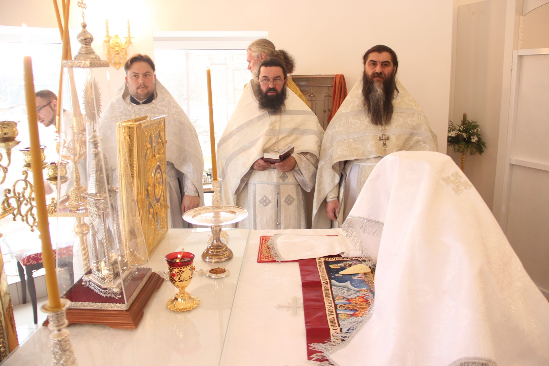Преосвященному владыке сослужили: настоятель монастыря игумен Михаил (Семенов), протоиерей Сергий, протоиерей Антоний Хатунцев, иеромонах Паисий (Курмаз), братия монастыря в священном сане.