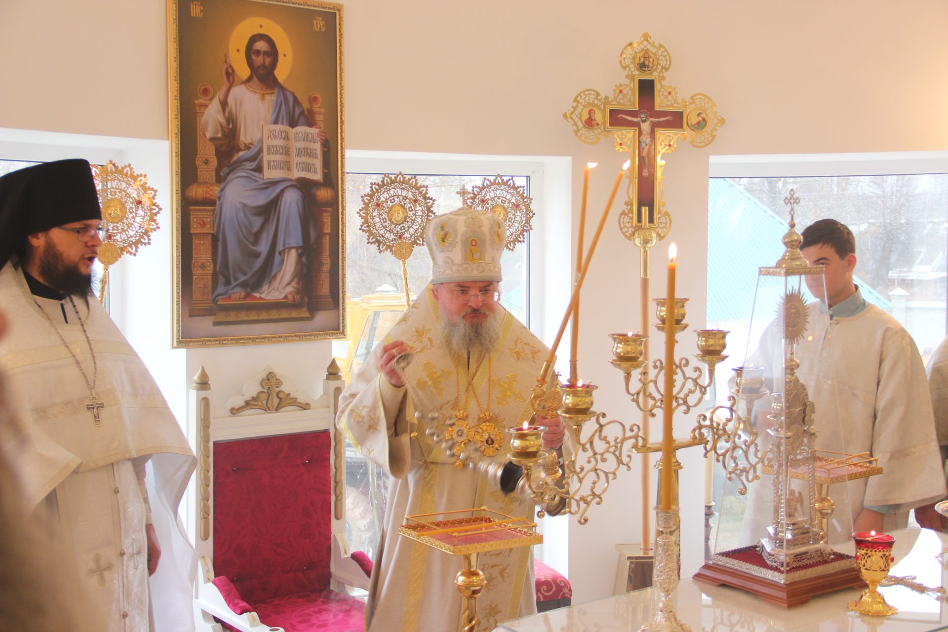 Епископ Козельский и Людиновский Никита совершил Божественную литургию в Михайло-Архангельском храме монастыря Спаса Нерукотворного пустынь в селе Клыково Козельского района.