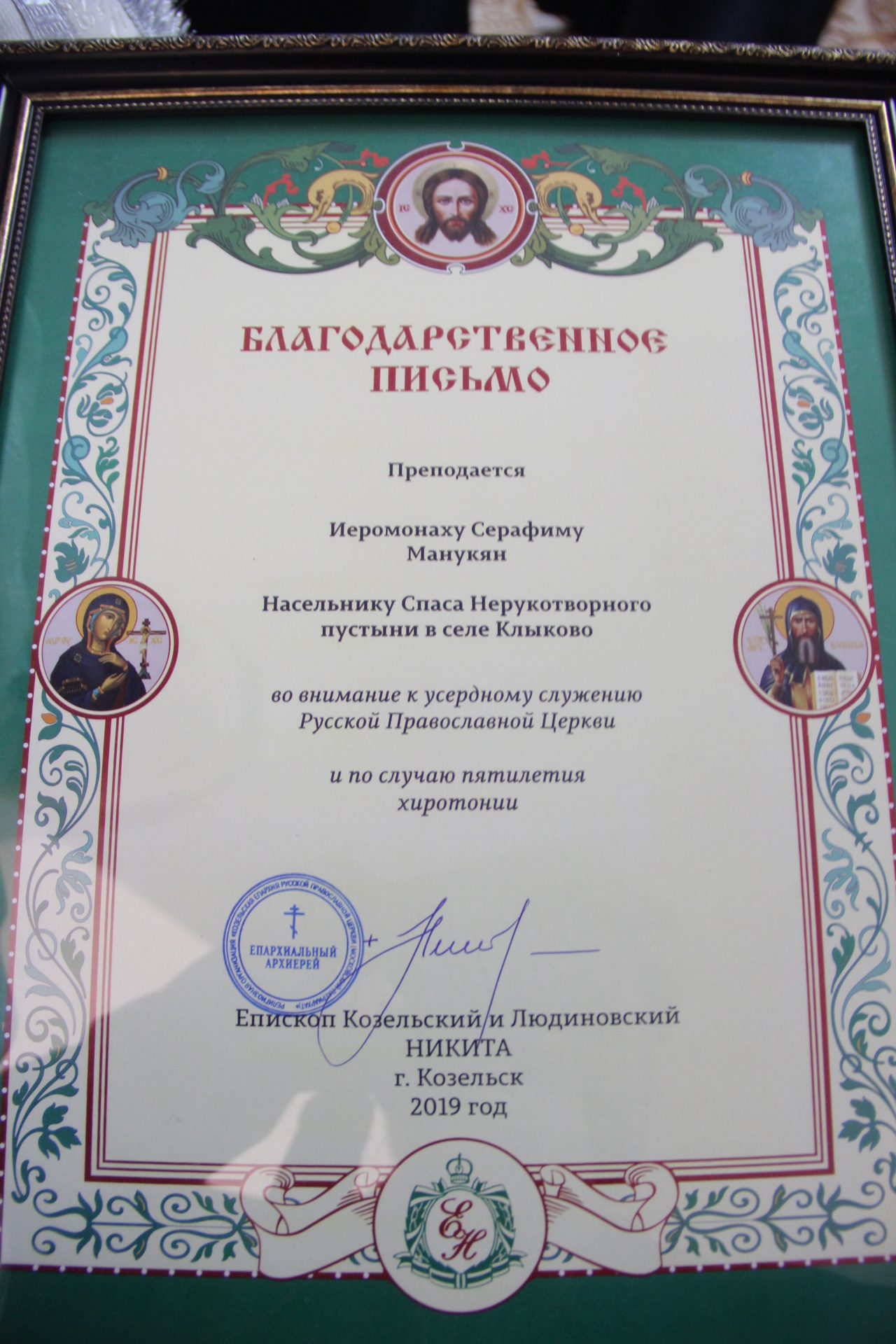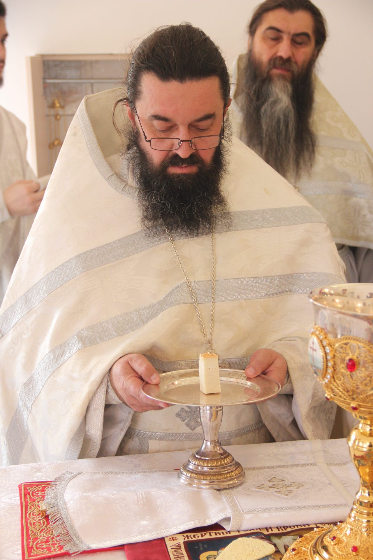 На Малом Входе, во внимание к усердным трудам во славу Святой Церкви, благочинный обители иеромонах Серафим (Манукян) был награжден наперстным крестом.