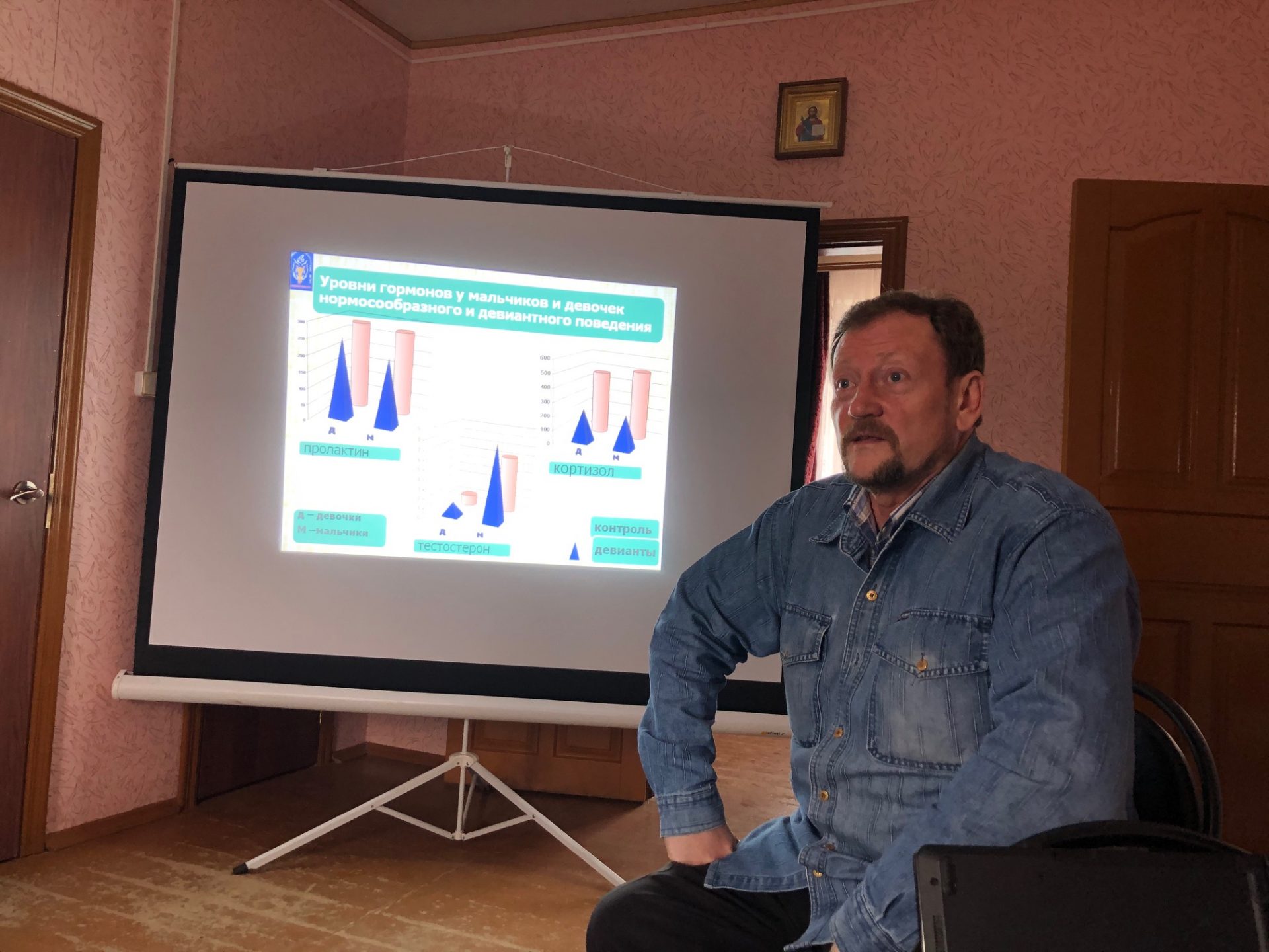 В формате семинара состоялась встреча с заслуженным педагогом РФ, директором Хабаровского краевого центра психолого-педагогической реабилитации медицинской и социальной помощи Александром Геннадьевичем Петрыниным с Мариной Владимировной Куклиной — директором Епархиального Центра и его сотрудниками.