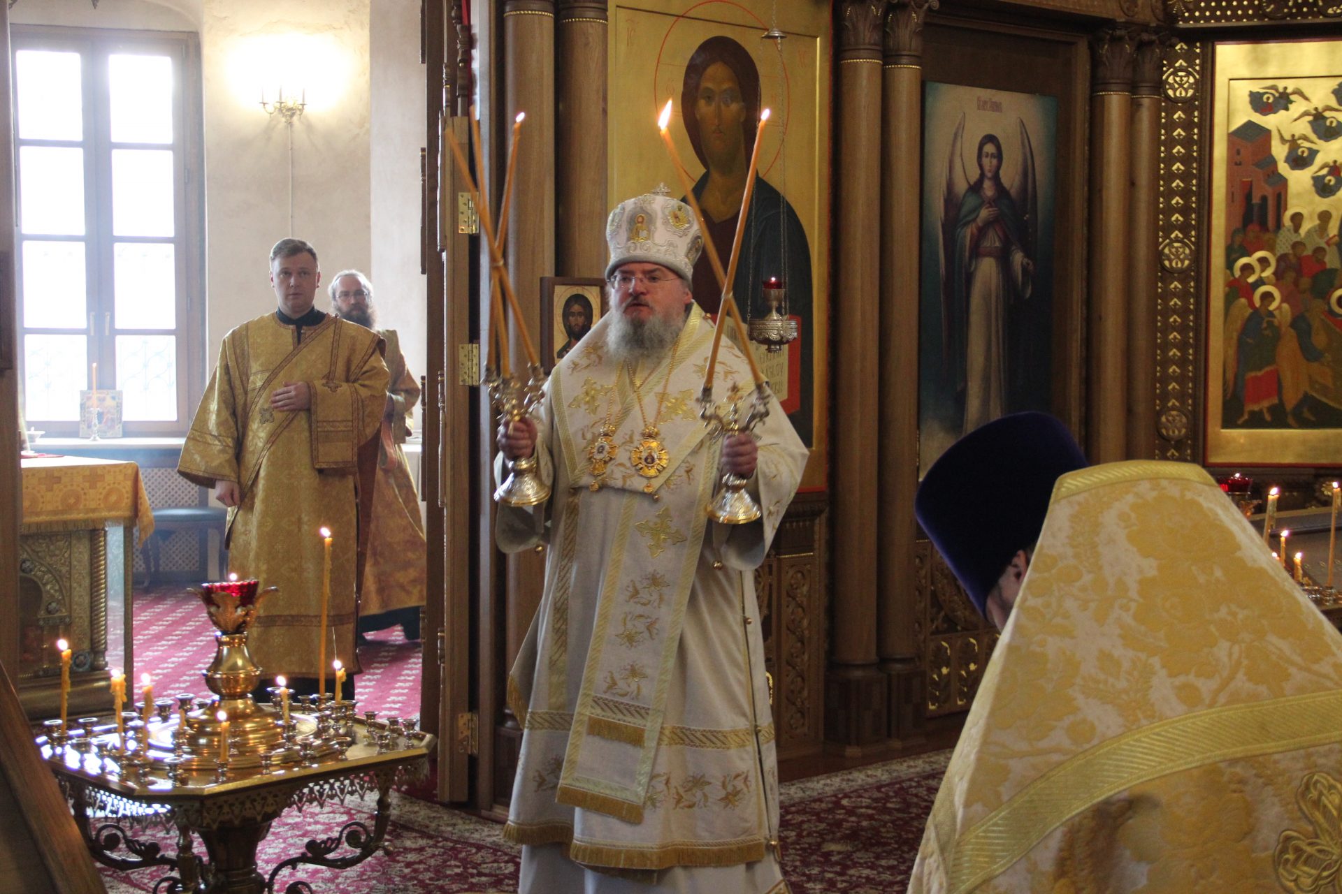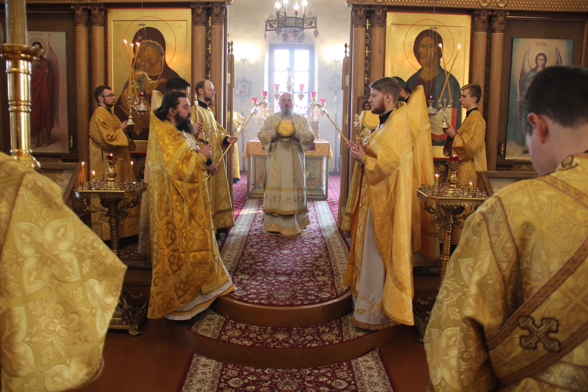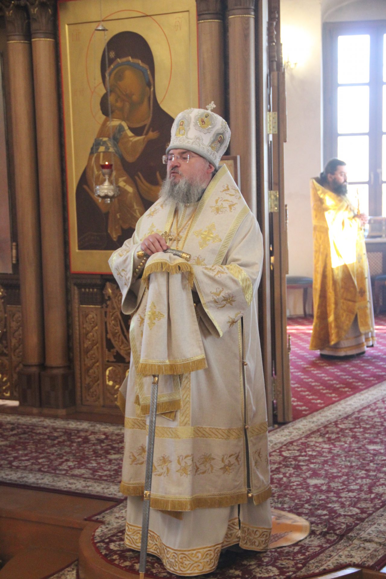 Архипастырю сослужили: настоятель собора иеромонах Паисий (Курмаз), протоиерей Антоний Хатунцев, иерей Елисей Тимофеев, иерей Ярослав Стрельников, диакон Евгений Ковригин и диакон Димитрий Лутков.