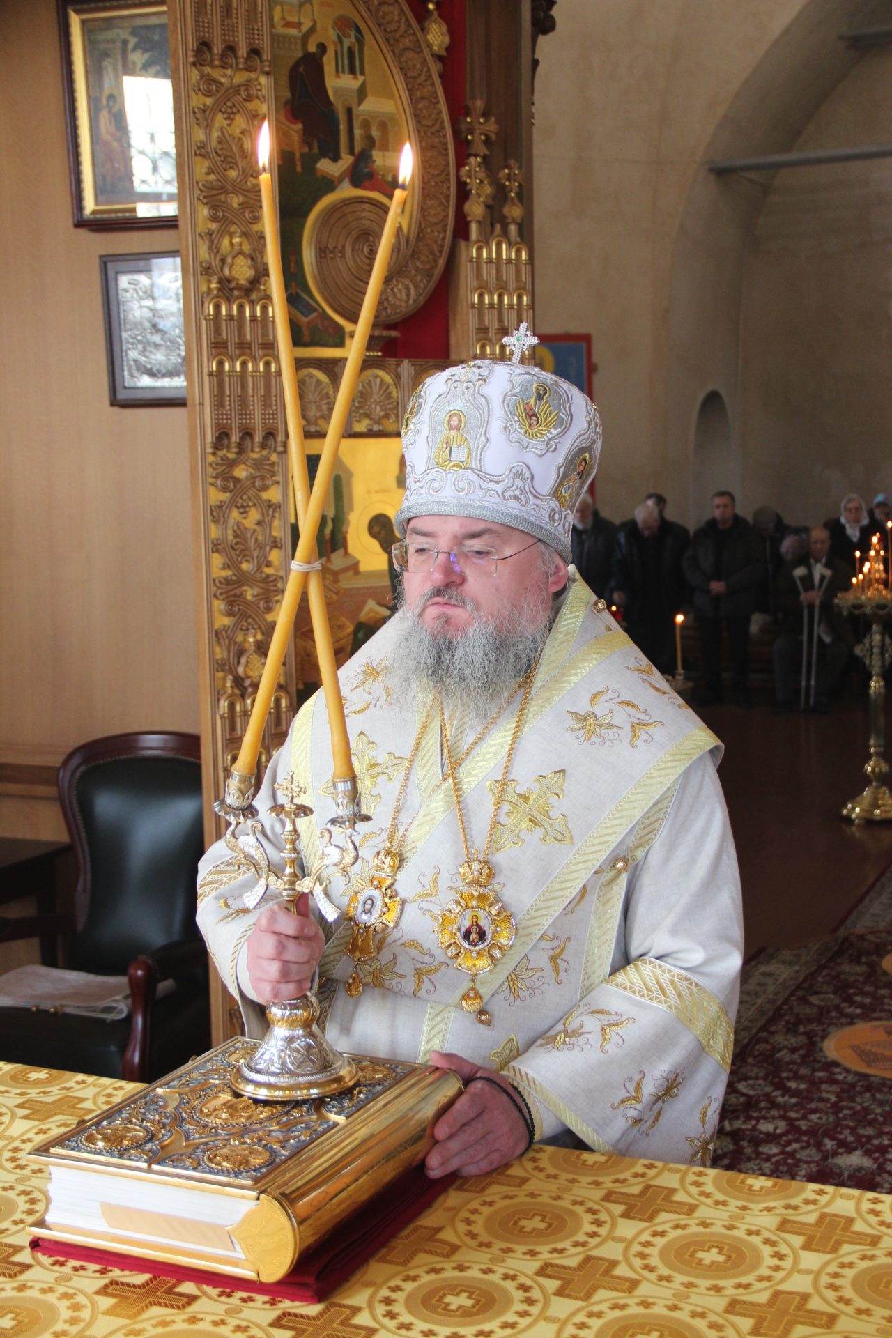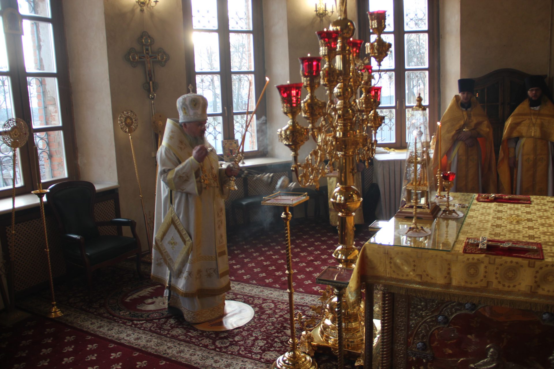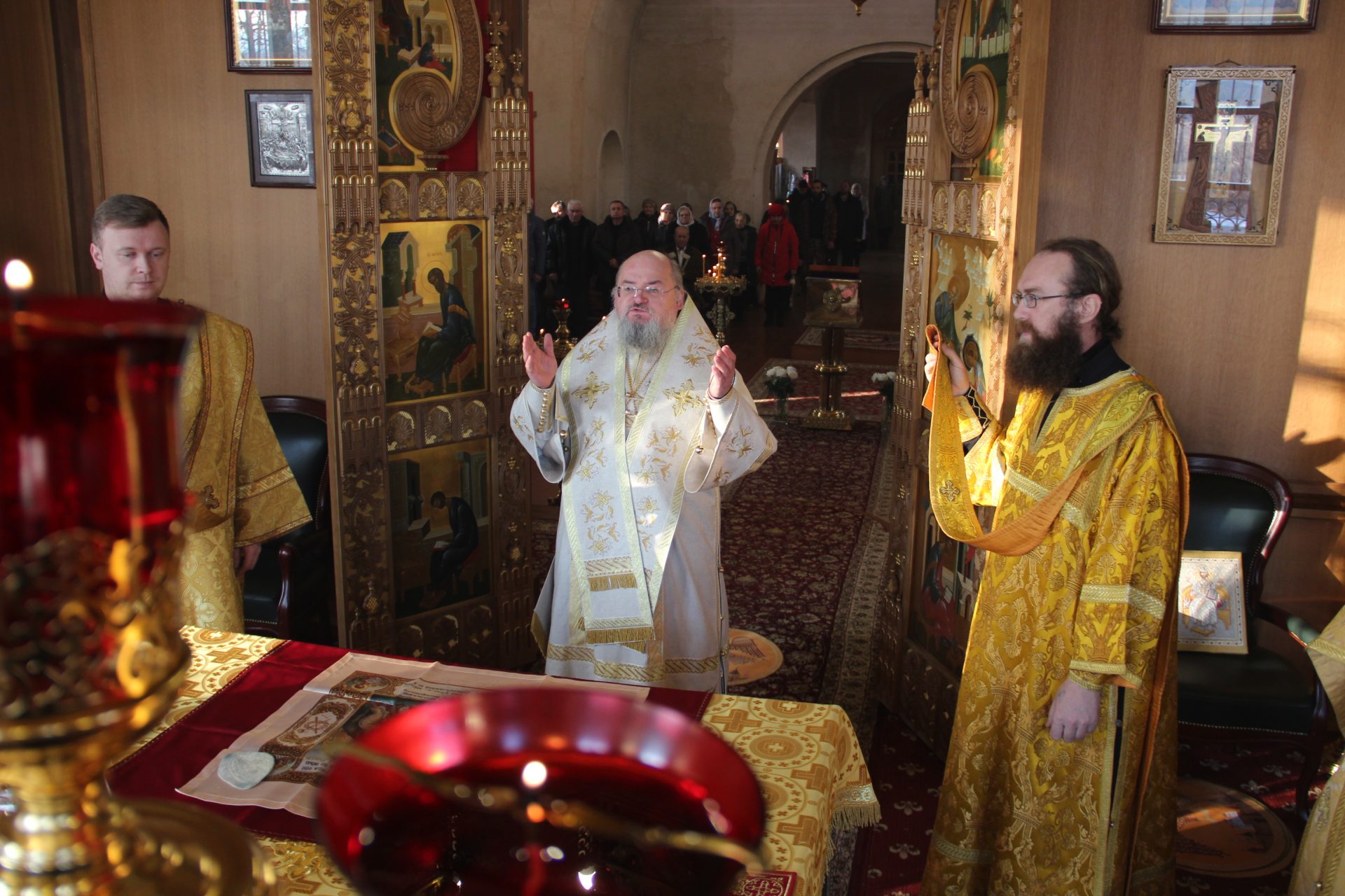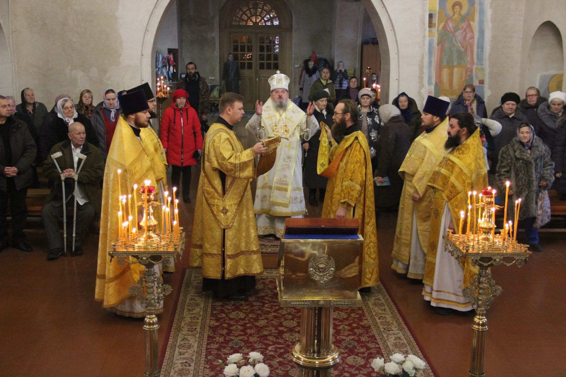 Архипастырю сослужили: настоятель собора иеромонах Паисий (Курмаз), протоиерей Антоний Хатунцев, иерей Елисей Тимофеев, иерей Ярослав Стрельников, диакон Евгений Ковригин и диакон Димитрий Лутков.