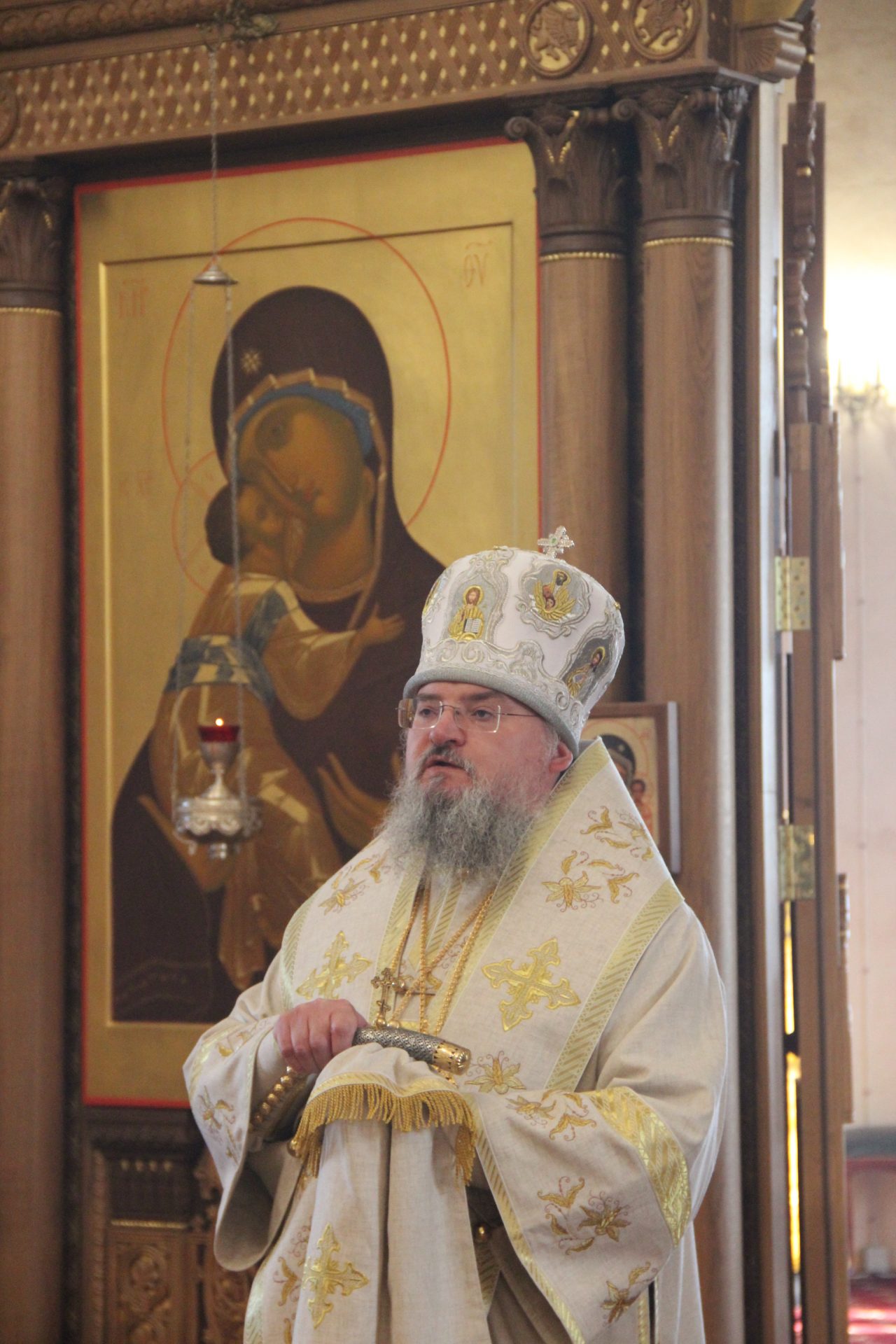 По отпусте литургии владыка обратился к богомольцам с проповедью.