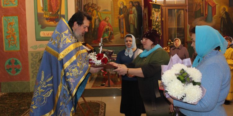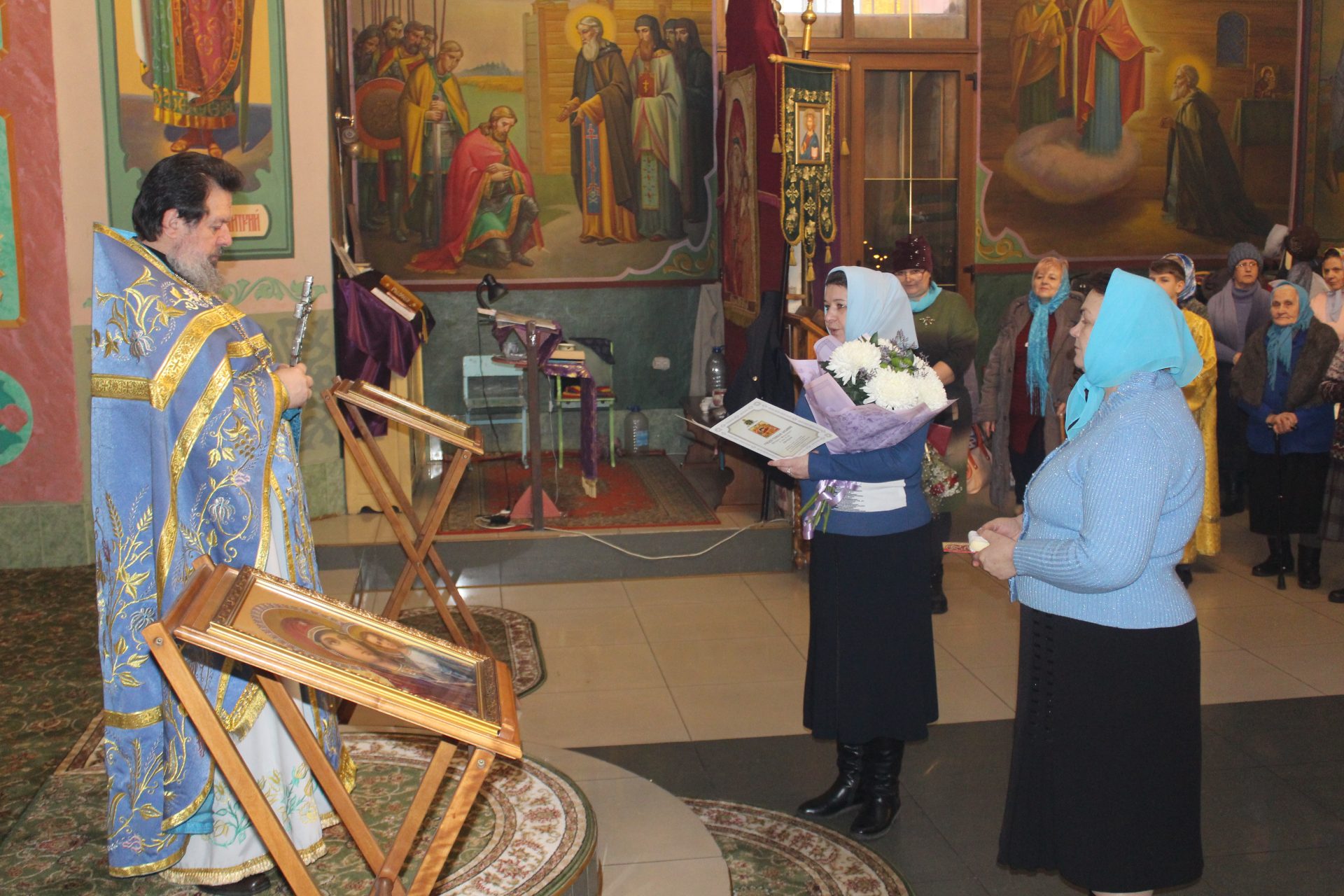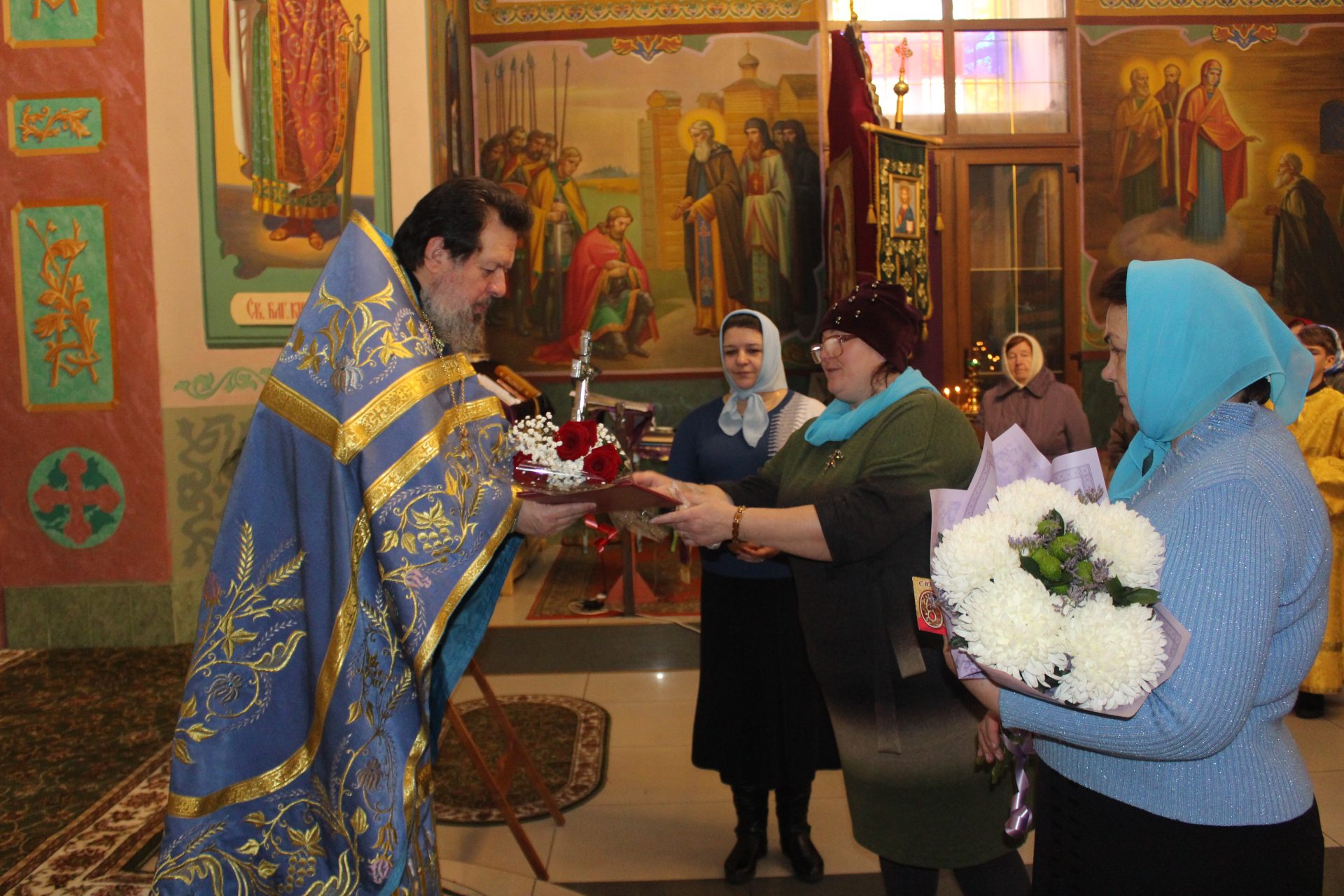 В конце литургии прихожане храма поздравили своего настоятеля с 30-летием  священнической   хиротонии. Выразили ему слова благодарности за тот священнический подвиг, который он совершает. Пожелали ему крепкого здоровья, помощи Божией во всех пастырских делах. » Всей своей жизнью Вы, дорогой батюшка, являете многим образец для подражания. Своей пастырской ревностью и любовью к людям Вы снискали высокий авторитет среди священнослужителей, взаимную любовь паствы и уважение в обществе, о чем хорошо может свидетельствовать Ваш богатый жизненный опыт в деле восстановления приходской жизни. Всеблагой Господь да дарует Вам крепость душевных и телесных сил, терпение и мудрость в нелегком пастырском служении во благо народа Божия и Святой Церкви.»