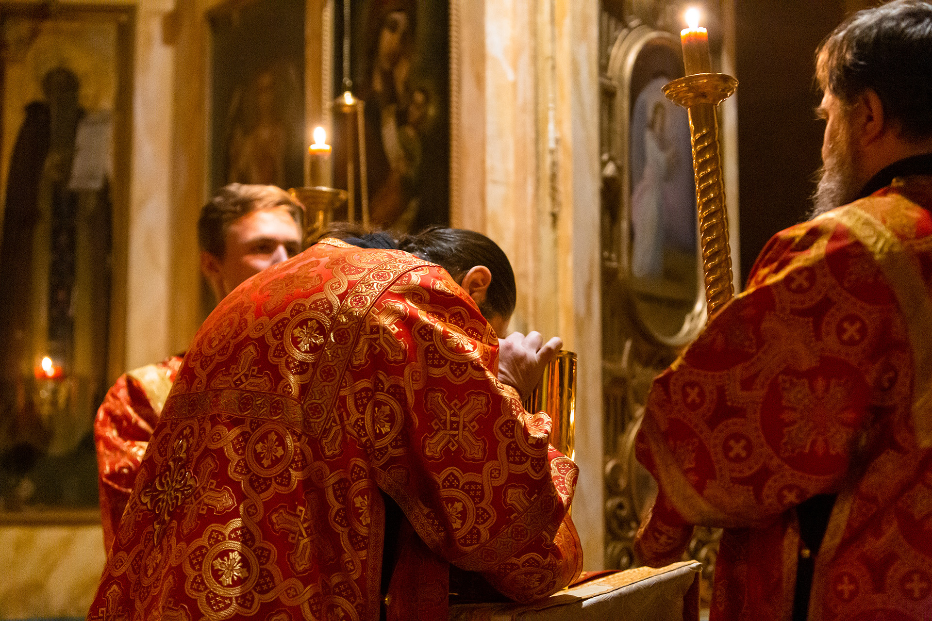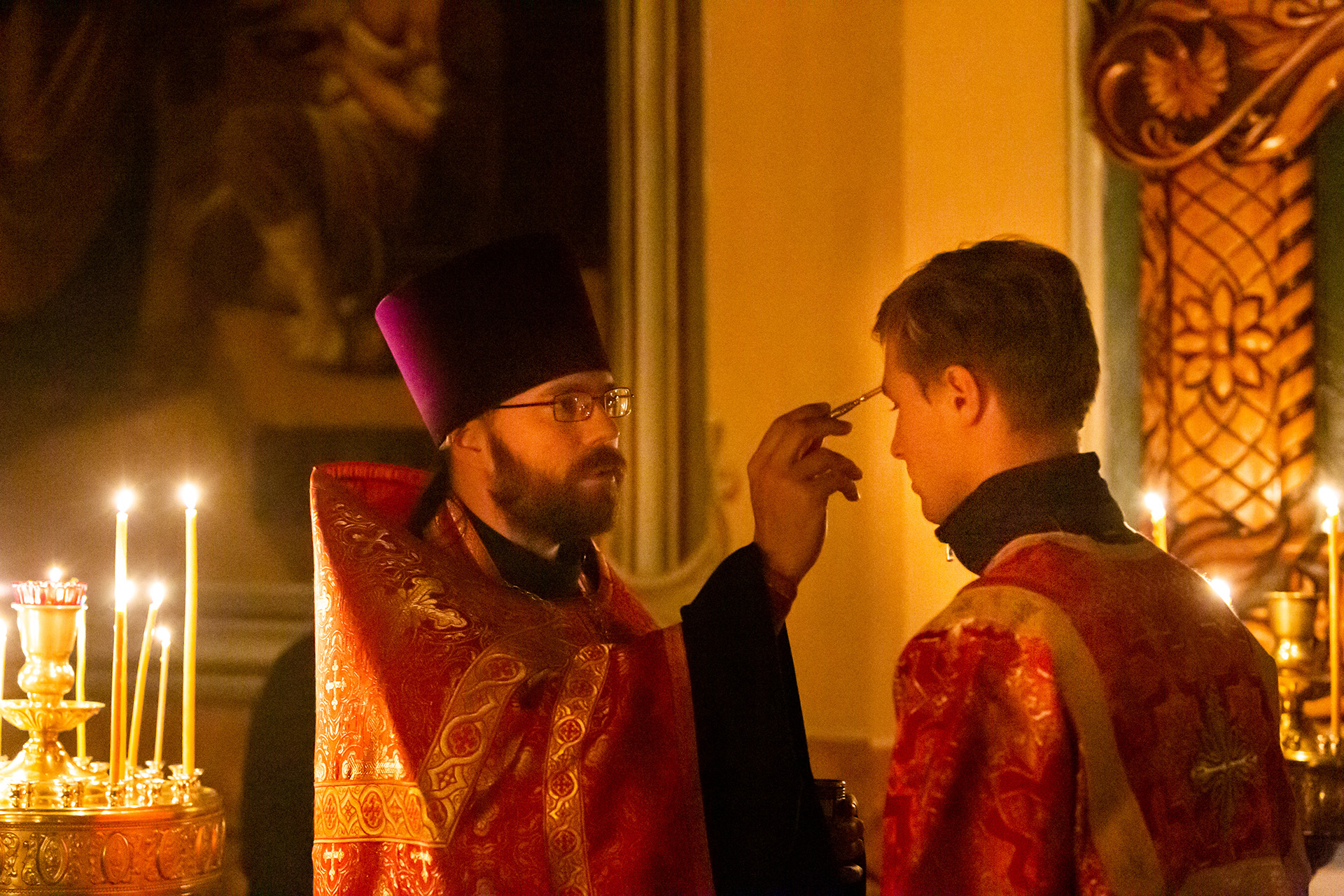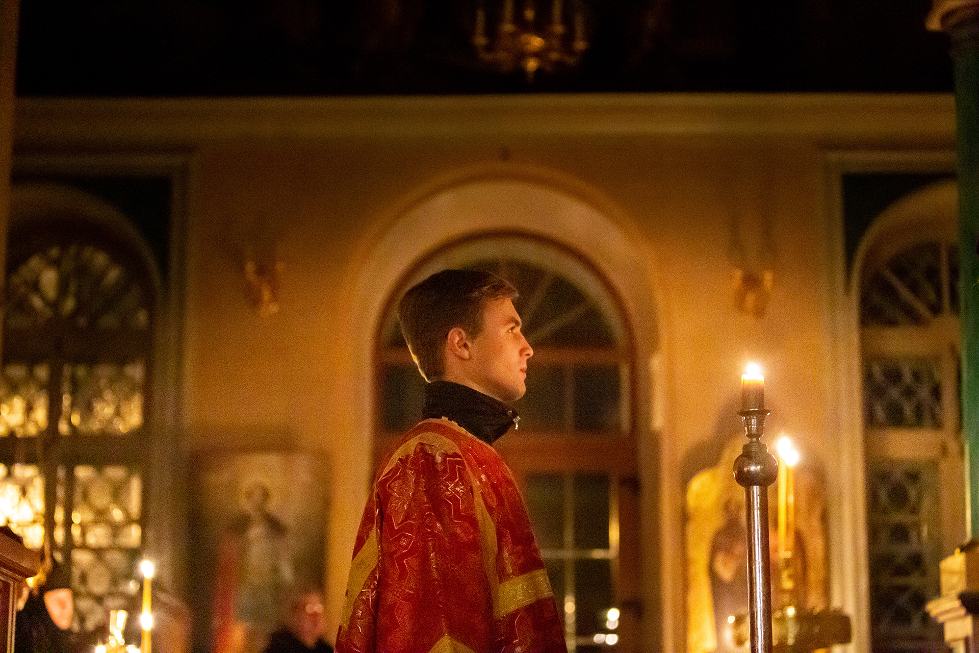 Песнопения на клиросе исполнил мужской хор храма Преображения Господня под управлением Анатолия Гринденко.