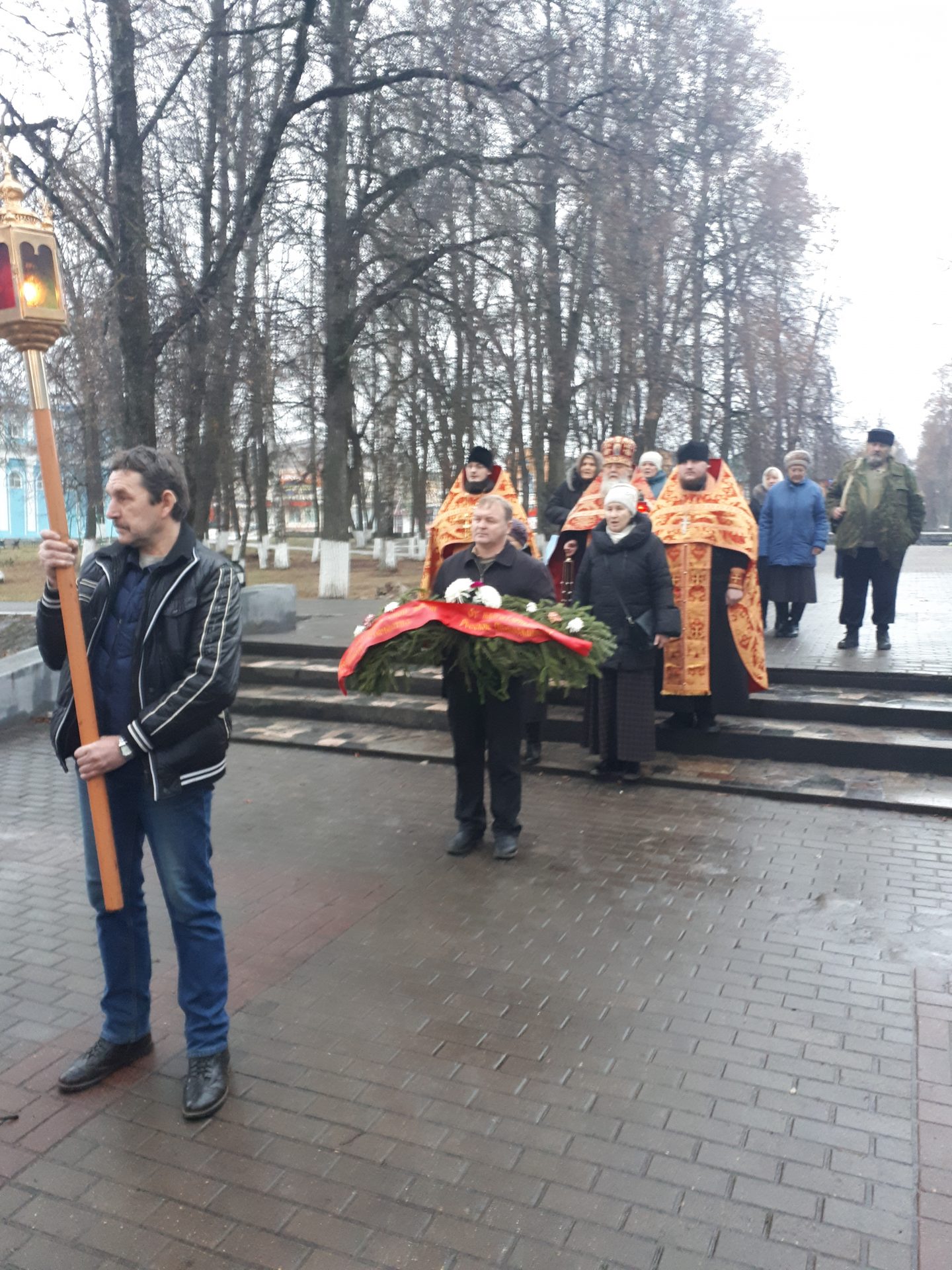 В этот день от Казанского кафедрального собора города Людиново состоялся Крестный ход к Поклонному Кресту, установленному на Площади Победы. Духовенством храма была совершена лития обо всех вождях и воинах душу свою за Отечество положивших. По окончании заупокойной молитвы, настоятель Казанского собора протоиерей Алексий Жиганов, клирики храма иерей Алексий Сначёв и Иоанн Майоров, а также прихожане возложили цветы к Поклонному Кресту и к памятной стеле «Людиново — город воинской доблести».