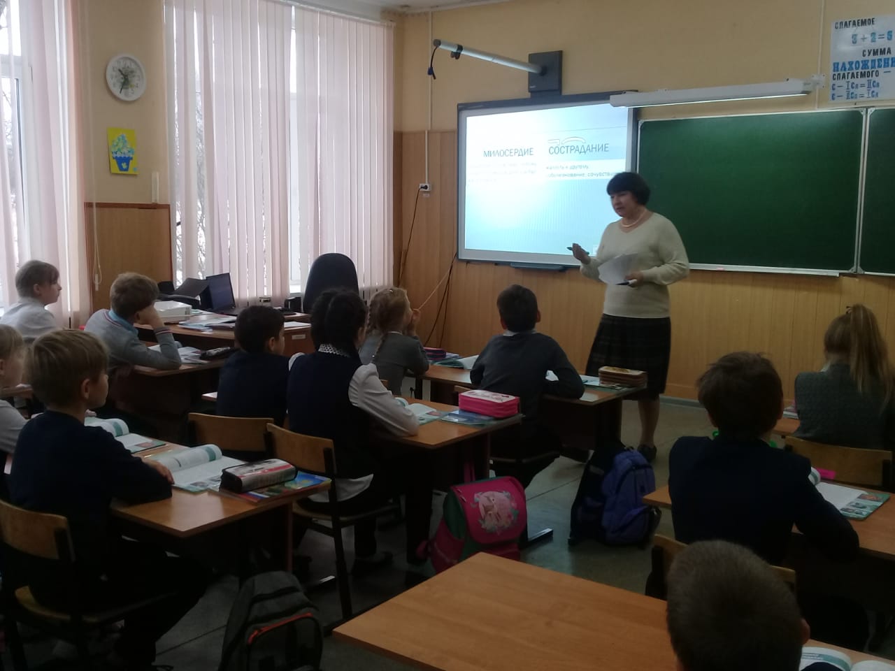 В рамках семинара были проведены: открытое занятие в 4 классе на тему «Милосердие и сострадание» — учитель Наталья Викторовна Серегина и внеклассное мероприятие (4-е классы) — учитель Валентина Михайловна Кулакова и педагог-организатор Марина Алексеевна Мосичкина.