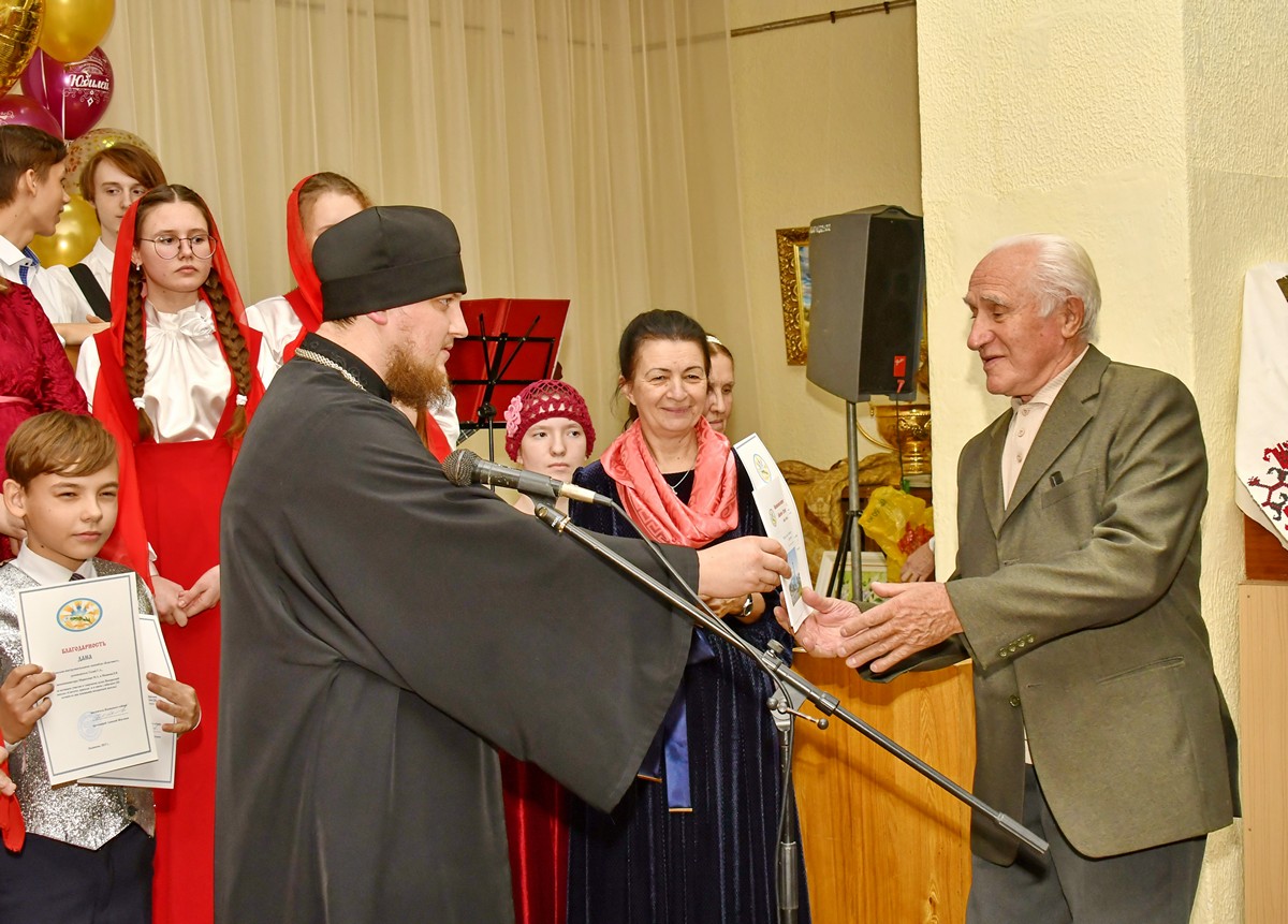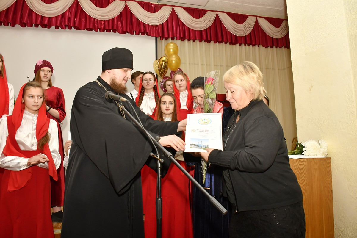 После концерта настоятель собора протоиерей Алексий Жиганов и клирик собора иерей Иоанн Майоров вручили благодарности, подарки и цветы творческим коллективам, педагогам, учащимся и сотрудникам музея.