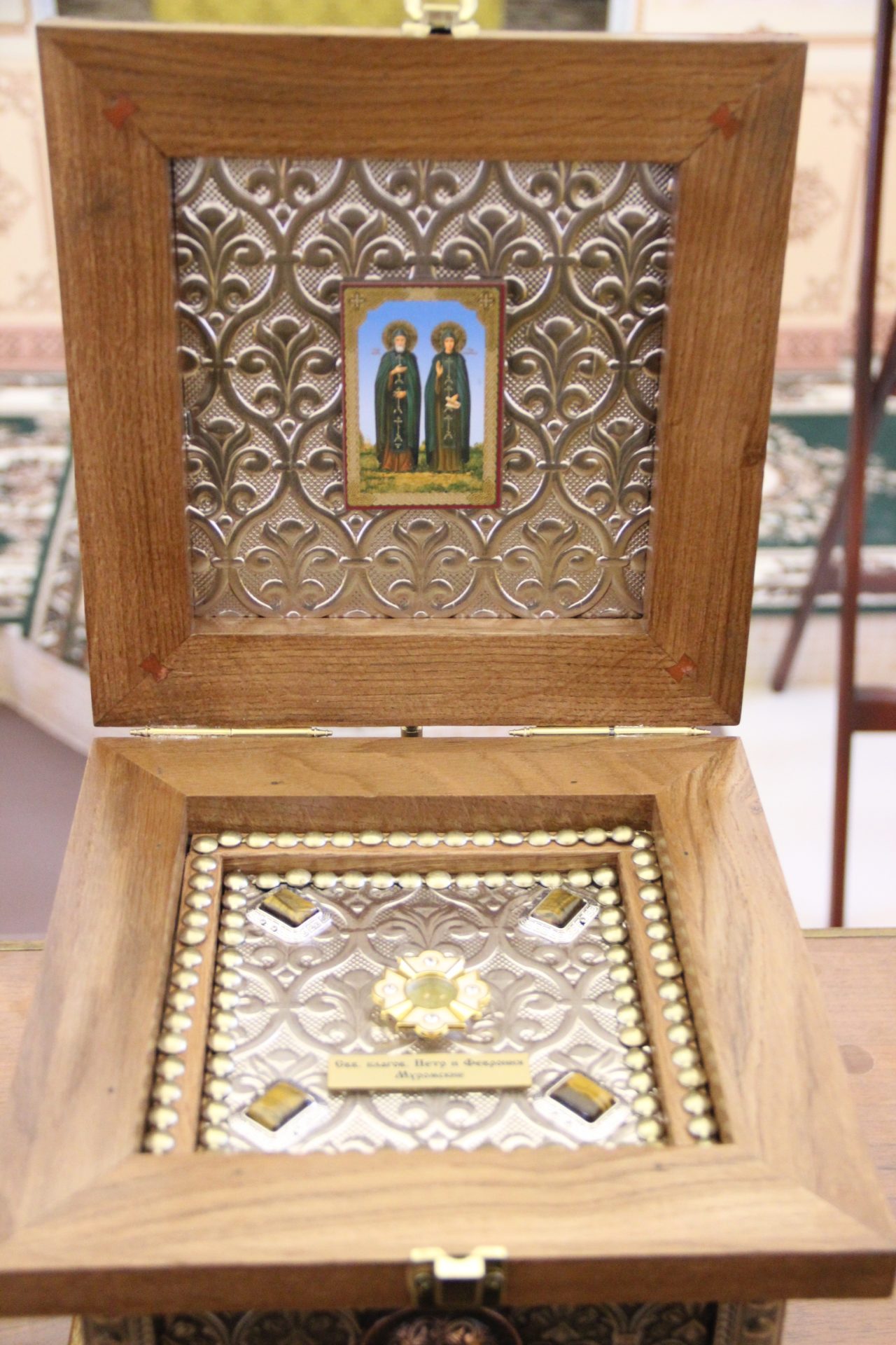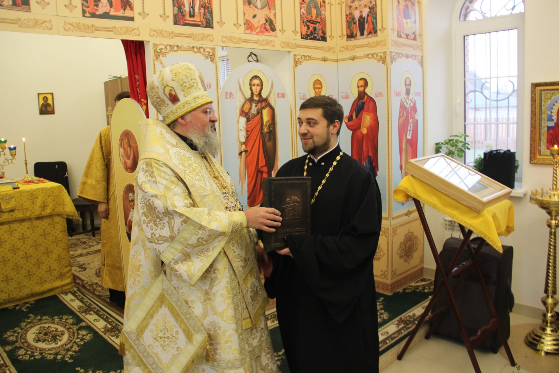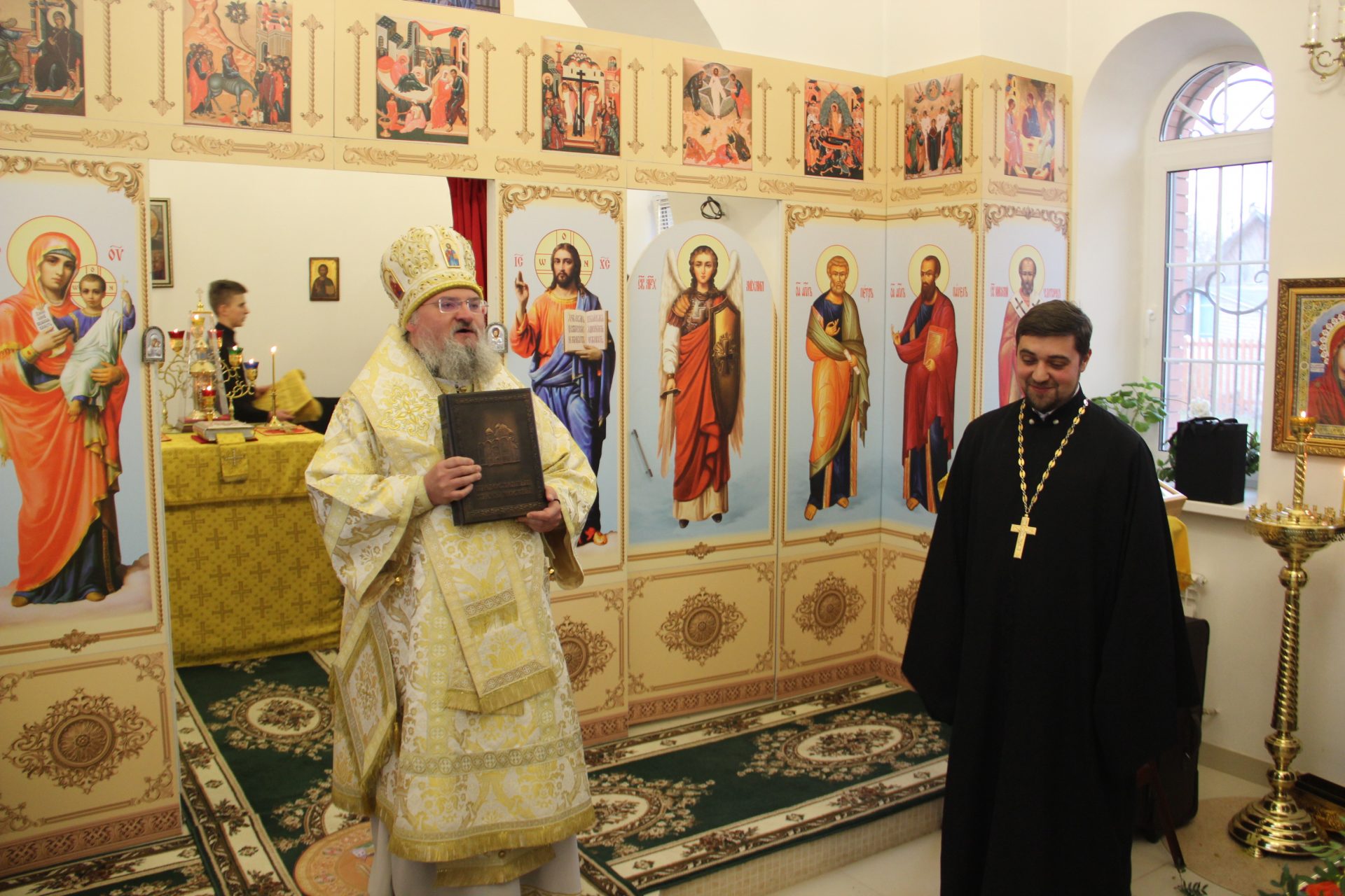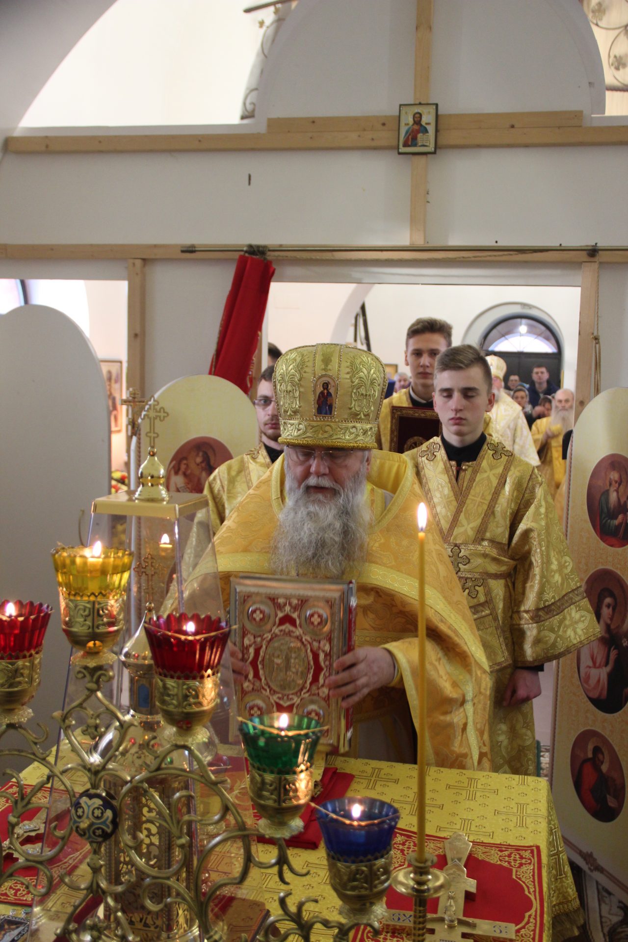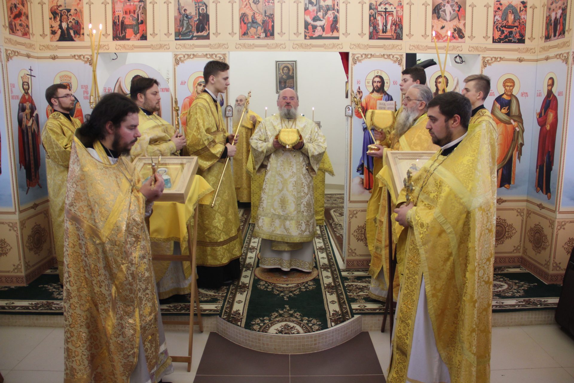Перед началом литургии из алтаря в центр храма был вынесен мощевик с частицами мощей святых благоверных Петра и Февронии Муромских чудотворцев, который владыка передал в дар приходу. Также архипастырь освятил храмовую икону святителя Спиридона Тримифунтского, написанную и освященную на острове Корфу. В икону была вставлена частица мощей святителя, также переданная владыкой для храма.