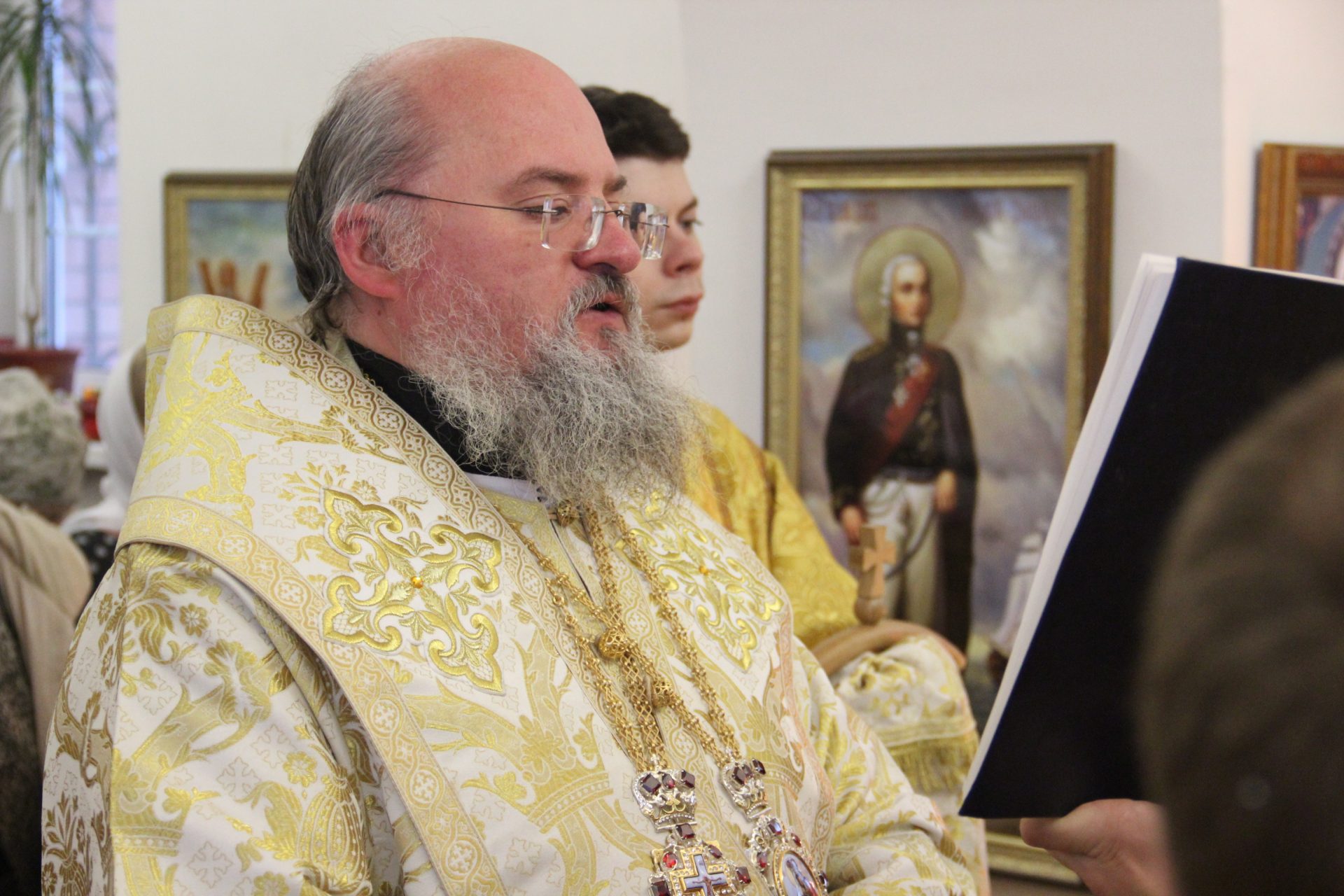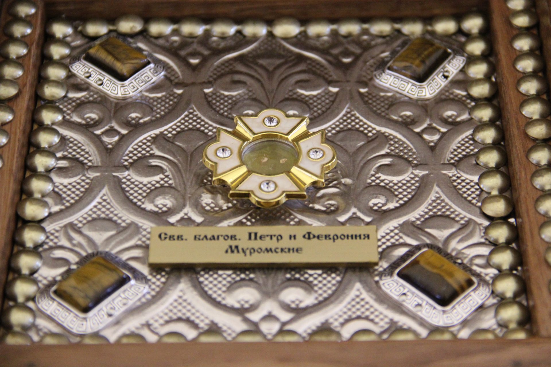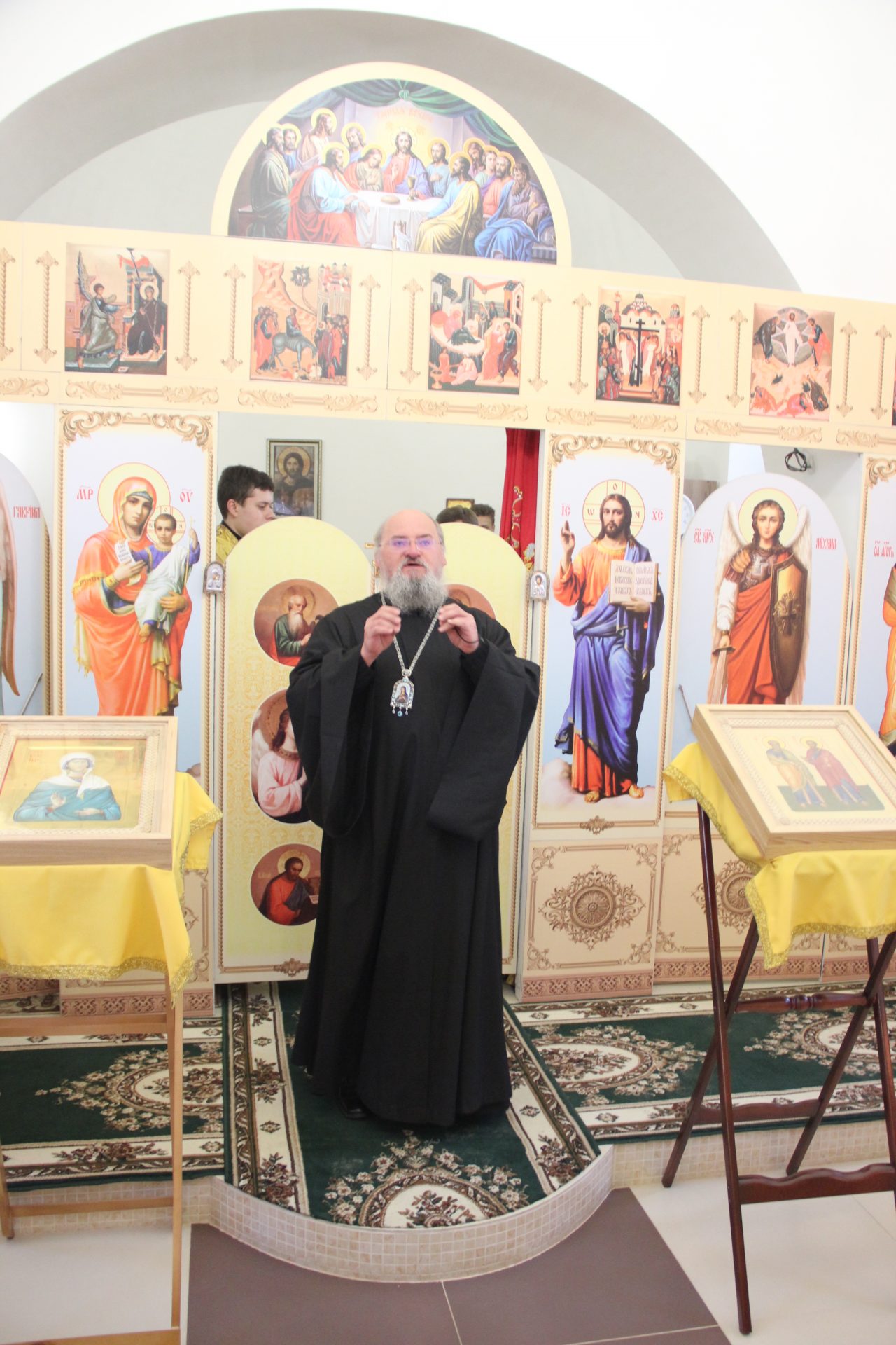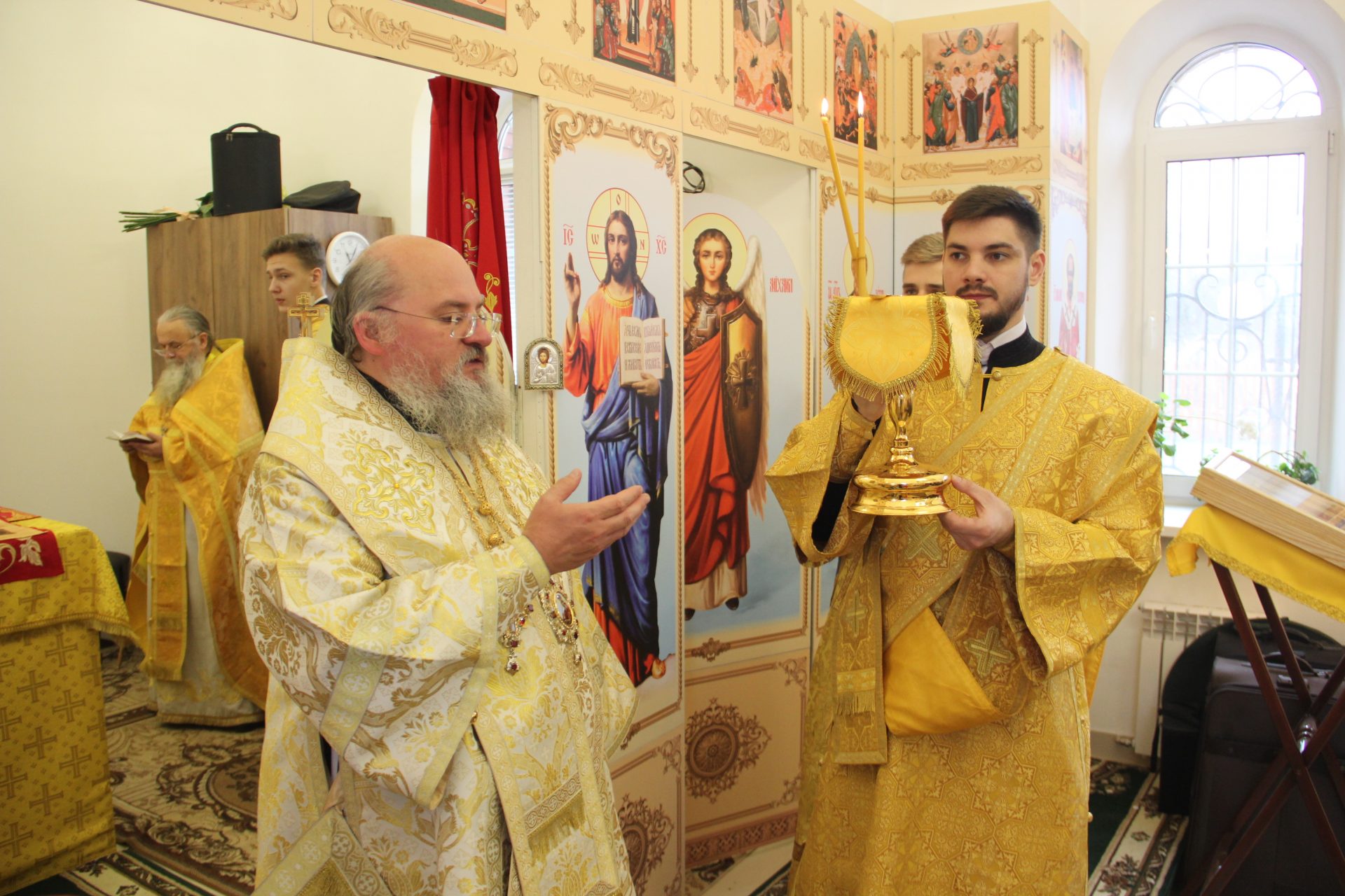 Перед началом литургии из алтаря в центр храма был вынесен мощевик с частицами мощей святых благоверных Петра и Февронии Муромских чудотворцев, который владыка передал в дар приходу. Также архипастырь освятил храмовую икону святителя Спиридона Тримифунтского, написанную и освященную на острове Корфу. В икону была вставлена частица мощей святителя, также переданная владыкой для храма.