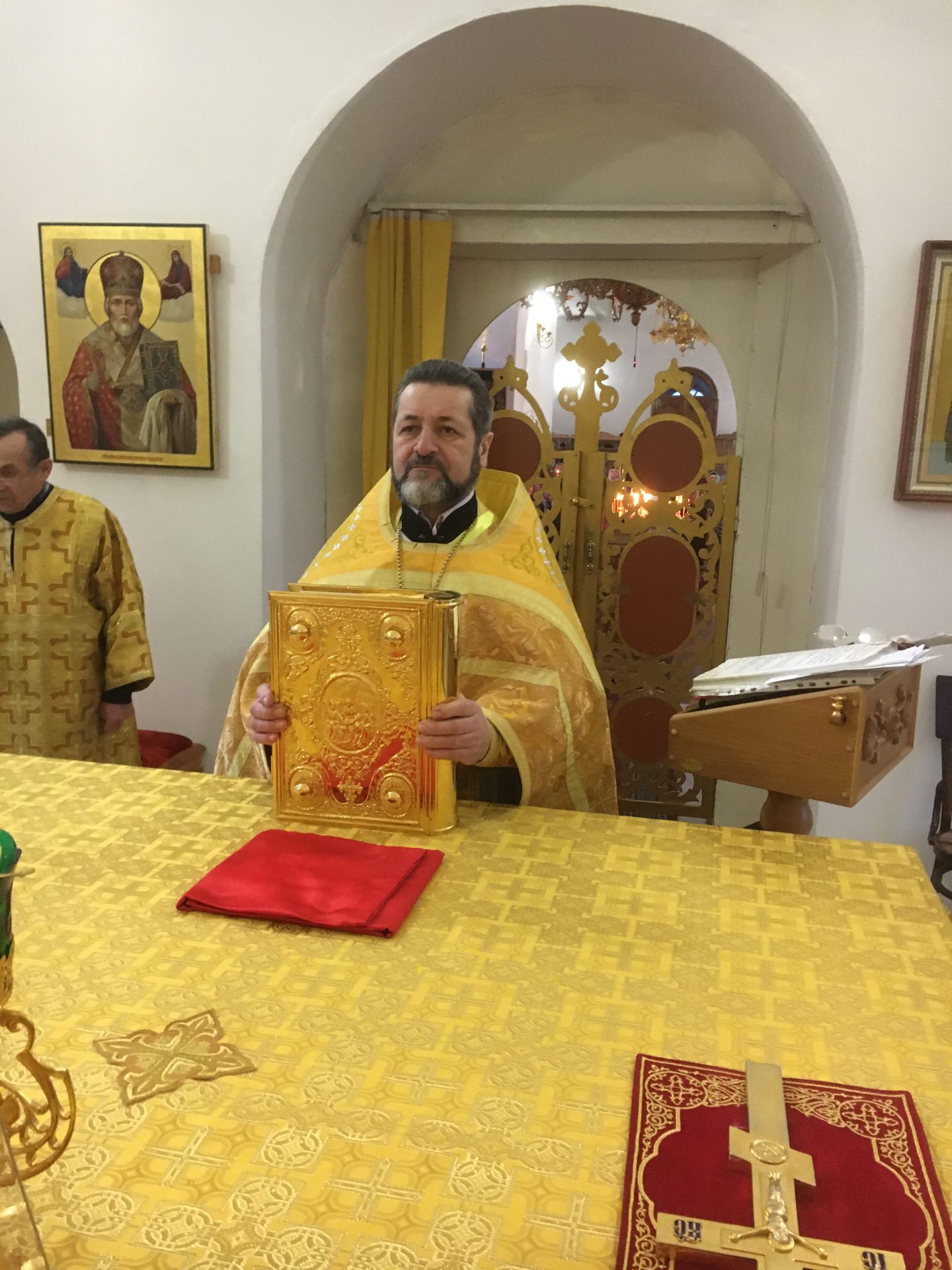 После богослужения настоятель обратился с приветственным словом к прихожанам, рассказал о житии и чудесах совершаемых по молитвам святителя Николая.