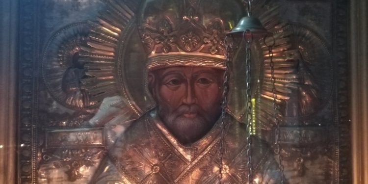 19 декабря 2019 года, в день памяти святителя Николая, архиепископа Мир Ликийских, чудотворца, праздничное богослужение – водосвятный молебен с акафистом святителю Николаю и Божественную литургию совершили в Казанском кафедральном соборе Людинова.