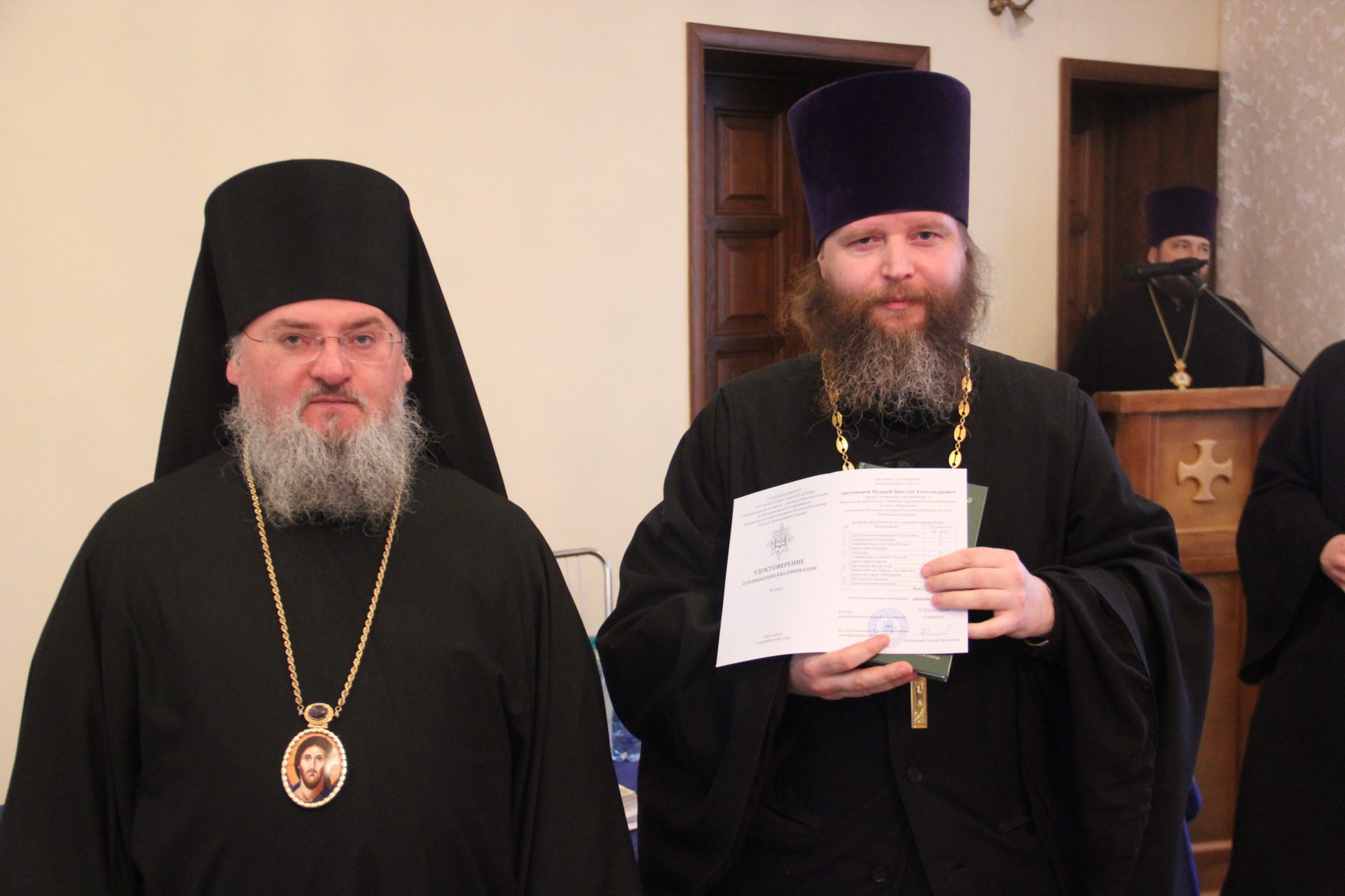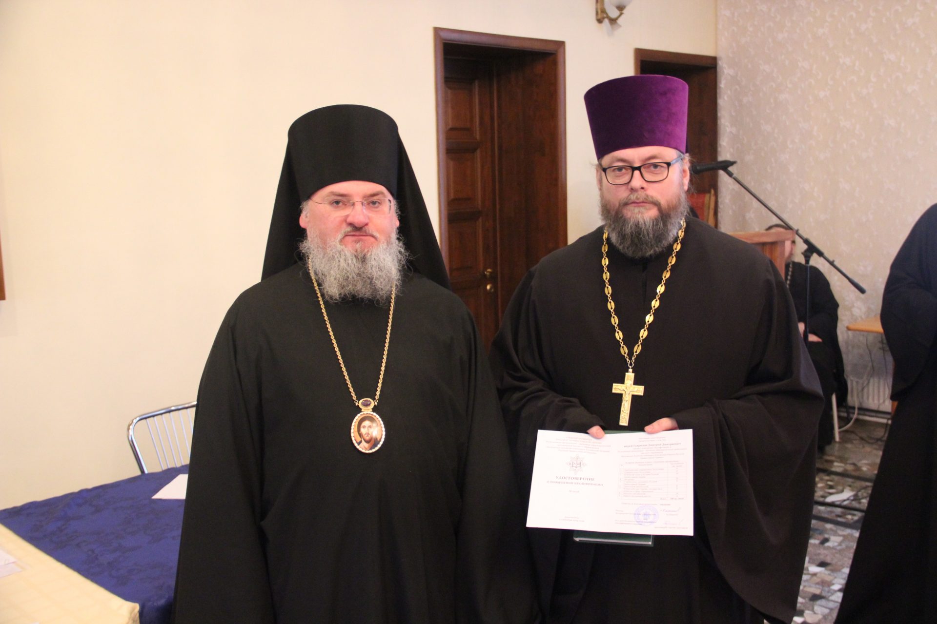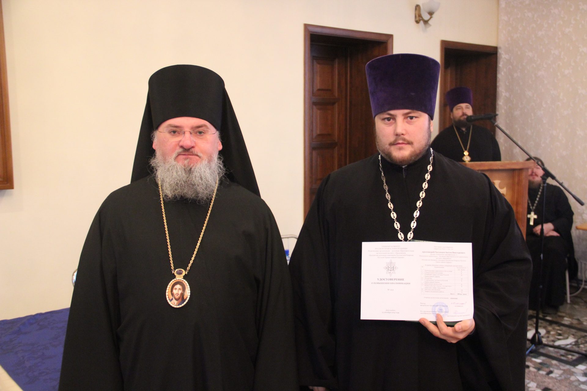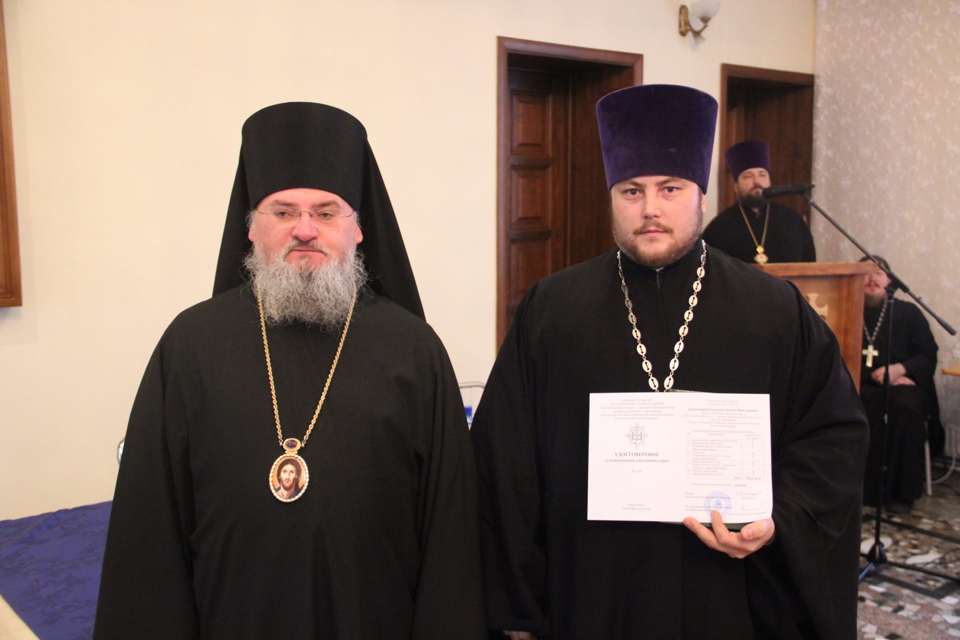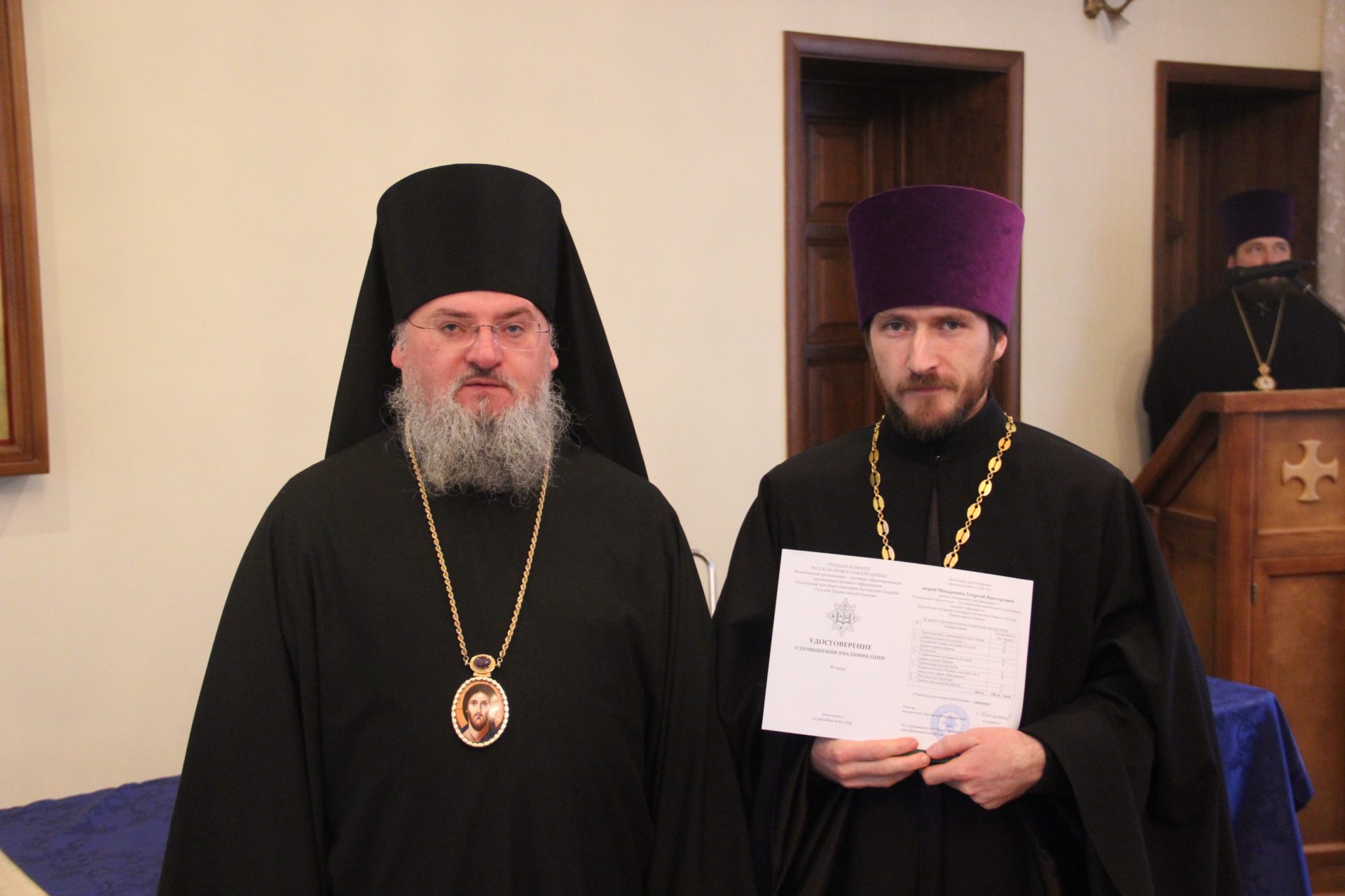 Также владыка вручил удостоверения клирикам, успешно завершившим обучение на курсах повышения квалификации, проходивших при Калужской духовной семинарии в октябре-ноябре сего года.