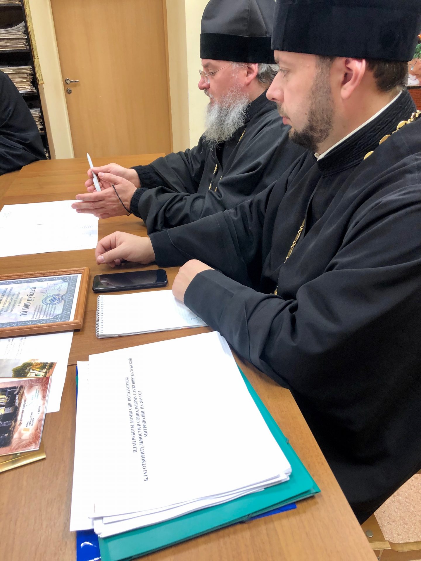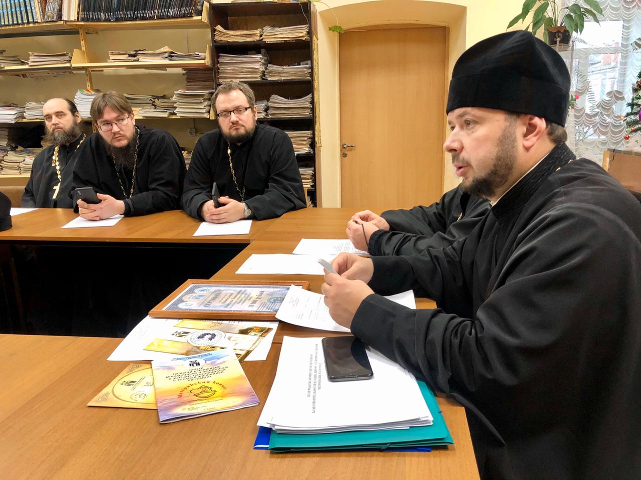 После вступительного слова Владыки Никиты, секретарь Комиссии – протоиерей Алексей Пелевин выступил с сообщением об общих вопросах работы Комиссии и организации праздничных мероприятий в первом квартале 2020 года. Также, отец Алексей отдельно затронул вопрос о проводимых лекциях для людей пенсионного и предпенсионного возраста в рамках реализации социального проекта «Социальный центр поддержки пожилых — Мы всегда рядом!», который является победителем второго конкурса 2019 года на предоставление грантов Президента Российской Федерации на развитие гражданского общества, цель которого – повысить качество жизни пожилых людей.