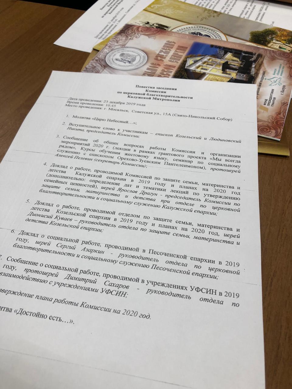 После утверждения плана работы Комиссии на 2020 год была определена дата и место очередного заседания Комиссии по благотворительности, которое пройдет уже в первом квартале 2020 года и прочитана молитва «Достойно есть».