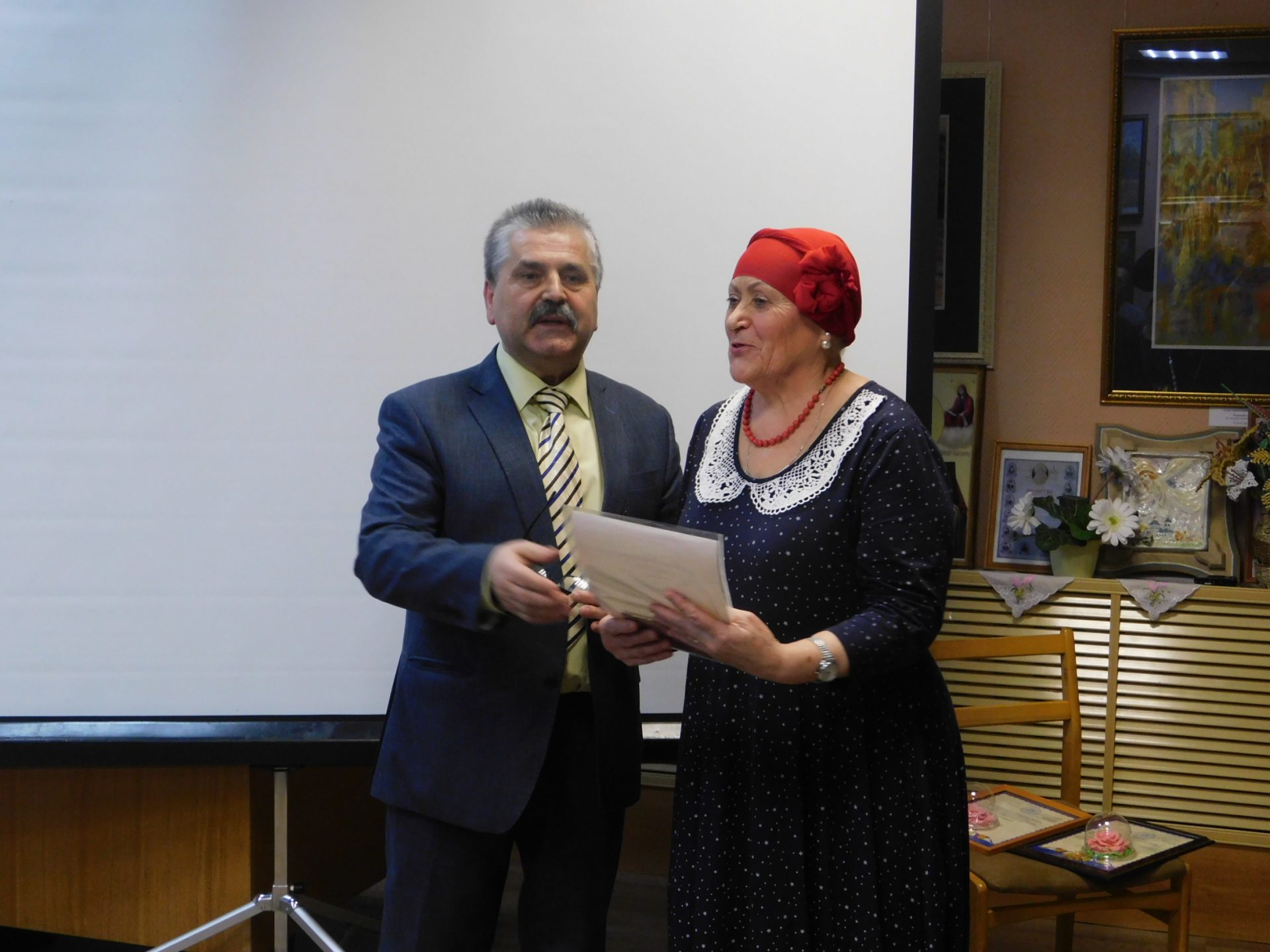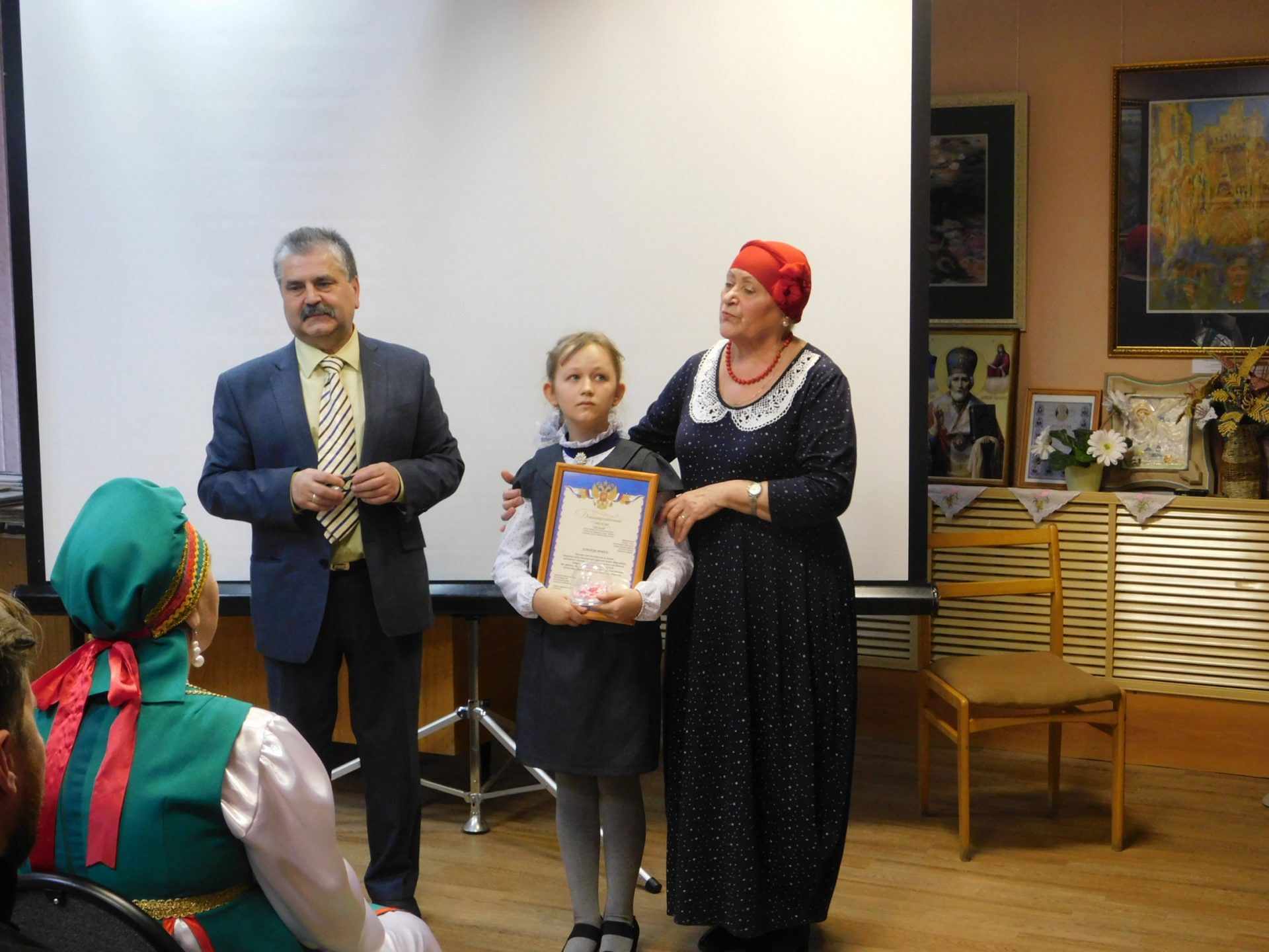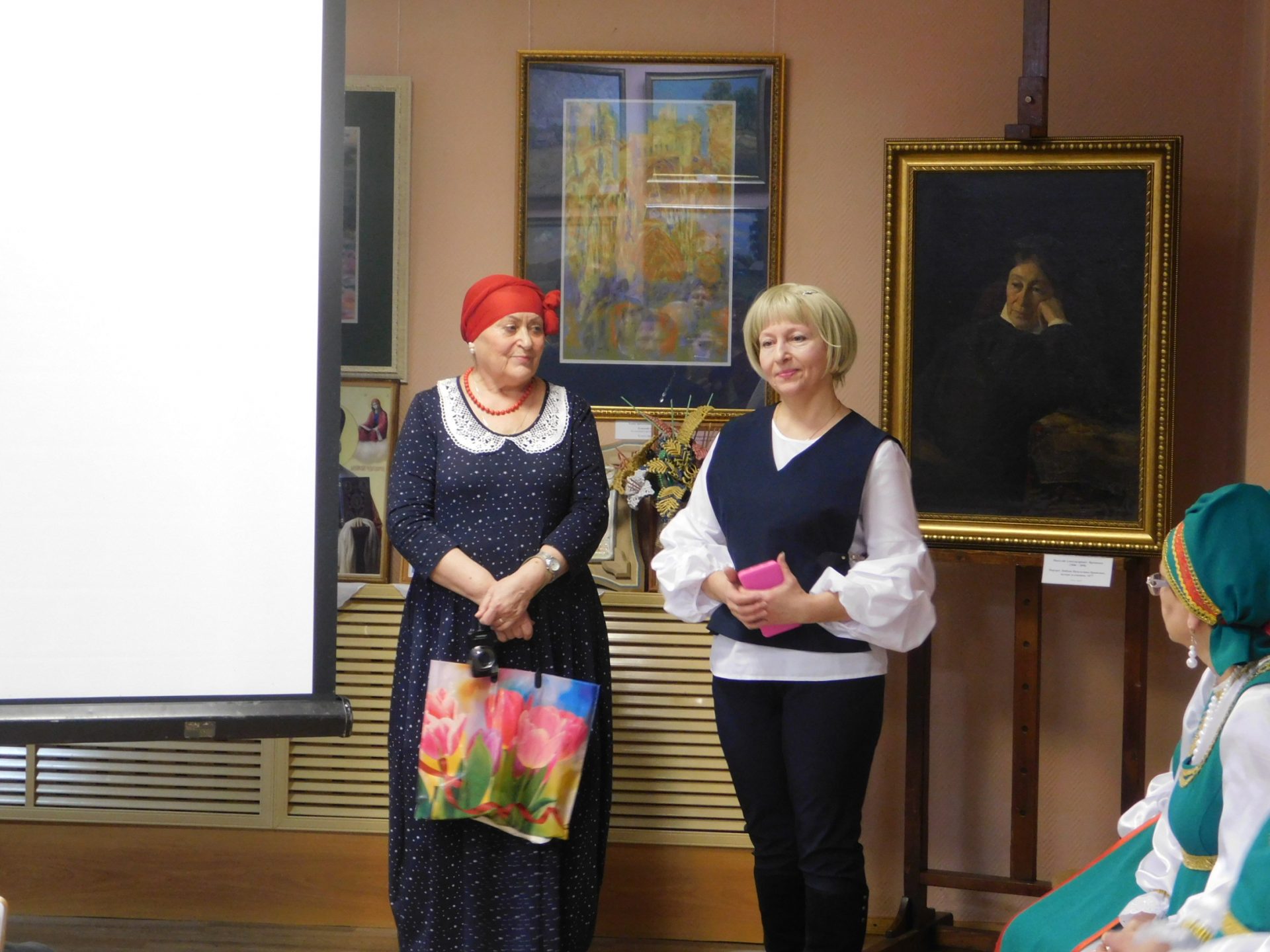 На торжественной встрече, посвящённой юбилею картинной галереи, конечно, было сказано много добрых слов, поздравлений, напутствий и вручено множество наград. Любовь Тимофеевна Ефремкина, глава Хвастовичского района, открыла череду награждений. И, конечно, первые награды — Почётные грамоты главы администрации МР «Хвастовичский район» — были вручены Елене Силаковой и Нине Михайловне. Ольга Владимировна Матвеева, учёный секретарь Калужского музея изобразительных искусств также вручила награды: Нина Михайловна награждена Благодарностью губернатора области за плодотворный труд, Елена Анатольевна — Почётной грамотой министерства культуры области. Поздравления прозвучали и от Марины Григорьевны Шиндяпиной, замдиректора Хвастовичской средней школы, отца Александра Карпова, конечно, от Валерия Фёдоровича Василевского, от гостей праздника поэтесс Валентины Егоровны Новиковой, Надежды Юрьевны Харлановой, художника Сергея Александровича Жукова, от Виктора Андреевича Шашкова. А ещё ученики 6 класса ХСШ (классный руководитель В. М. Кулакова) исполнили для всех тёплую песню. Продолжили музыкальную тему и ещё не раз пели для гостей участницы ансамбля «Рябинушка».