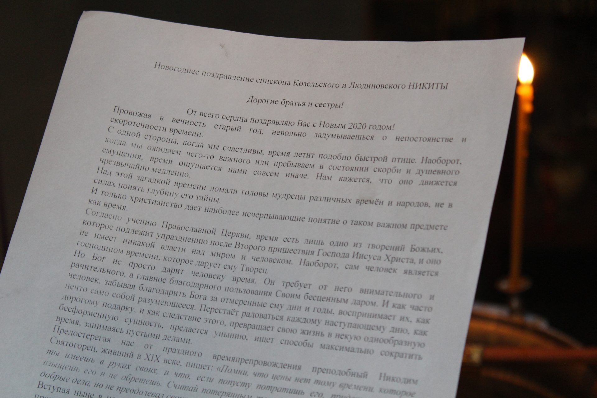 За молебным пением протоиерей Василий Биляк зачитал Новогоднее поздравление епископа Козельского и Людиновского НИКИТЫ.