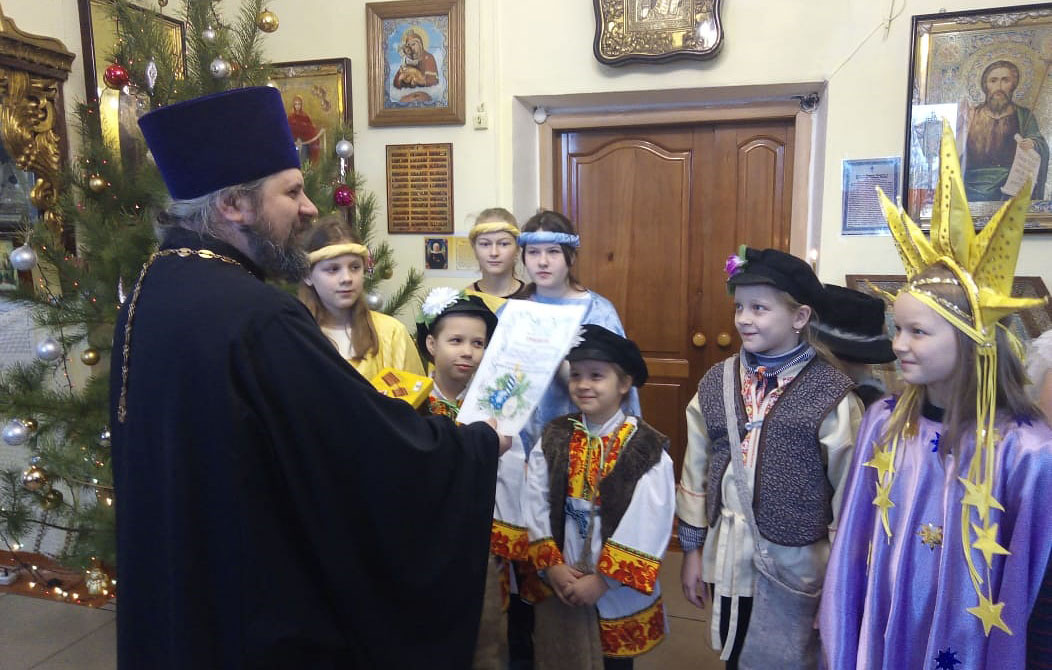 По завершении мероприятия настоятель храма протоиерей Михаил Карпенко поздравил детей, пожелав всем добра, радости и успехов в учёбе и вручил им грамоту районного конкурса за лучшую Рождественскую композицию, где они заняли призовое место.