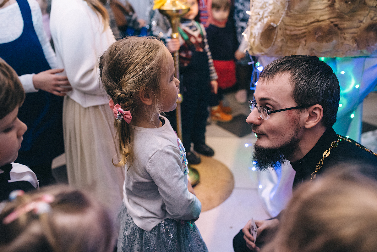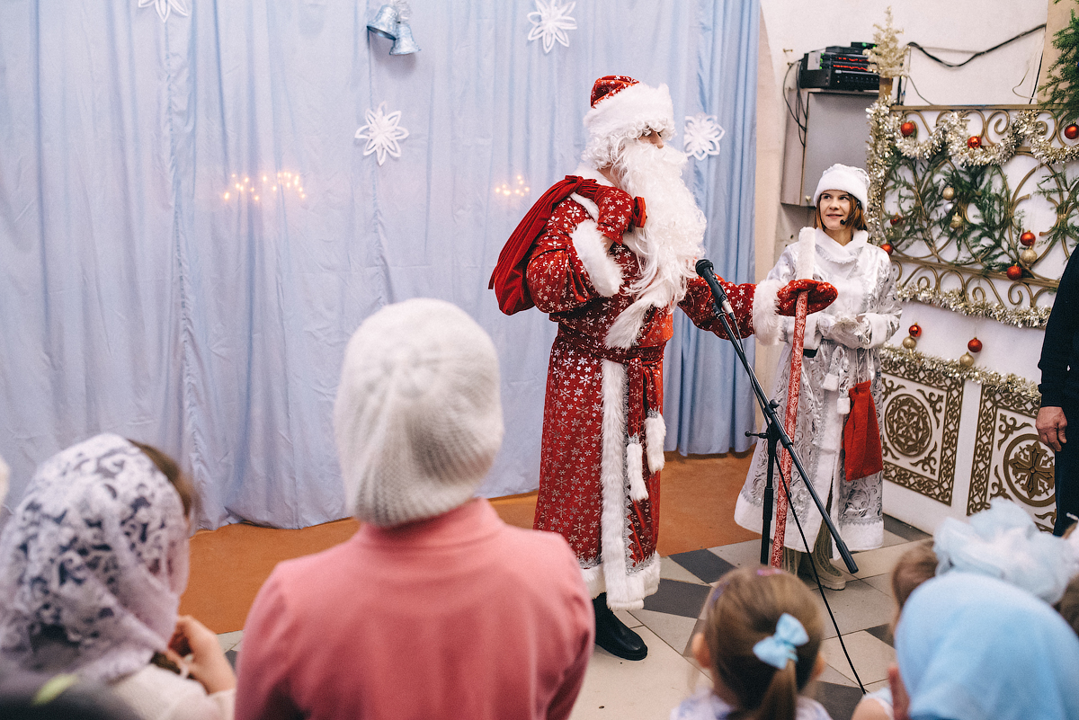 Дед Мороз пожелал ребятам мира и добра в Рождество и предложил пропеть колядки, а также рассказать стихи о зиме и Рождестве. Как полагается, всем ребятам были вручены подарки (игрушки), предоставленные в дар Александром Дмитриковым. Долго еще не смолкали в храме детские голоса, прославляющие Рождение Христа.