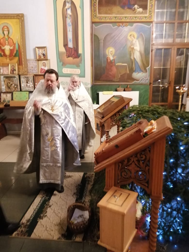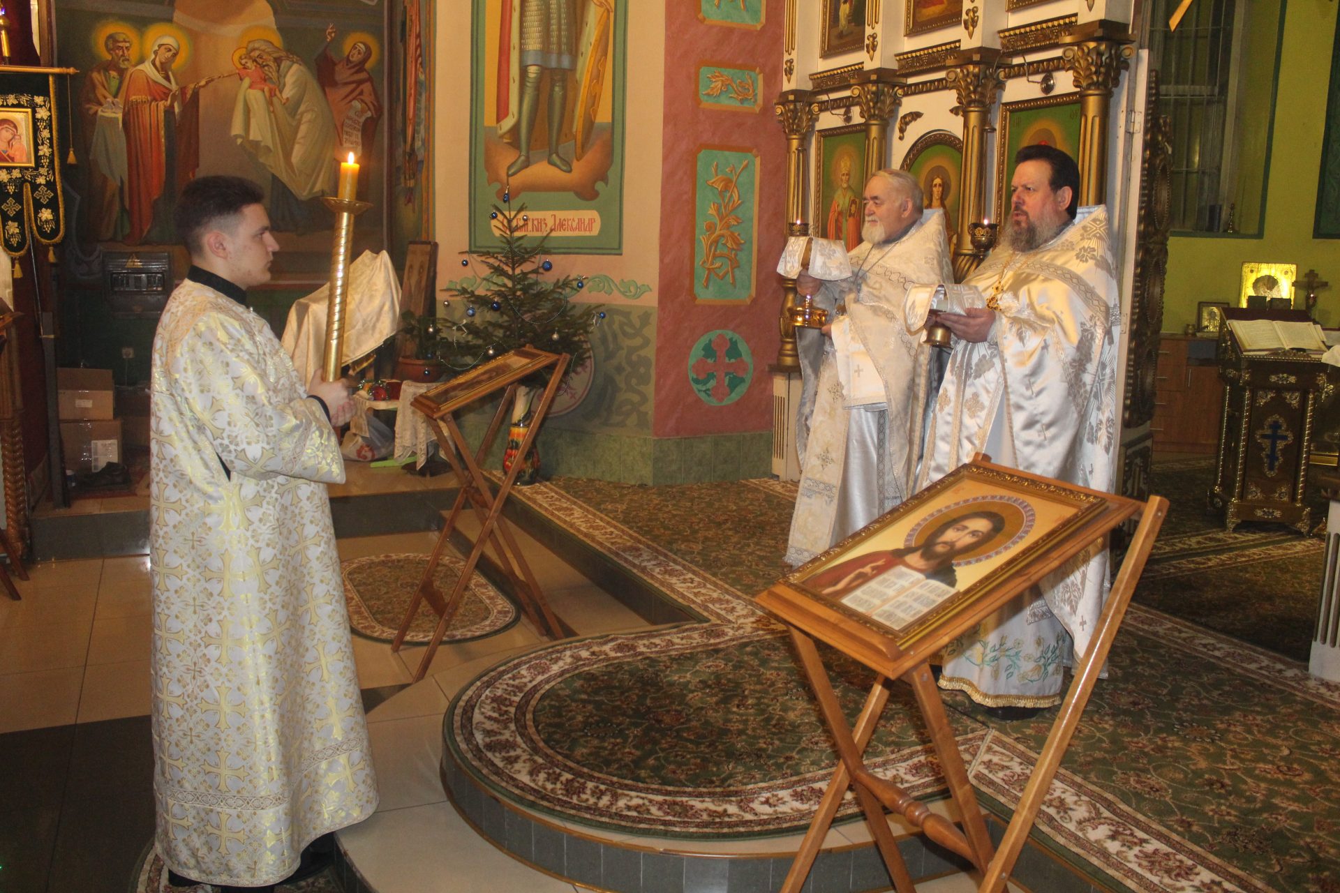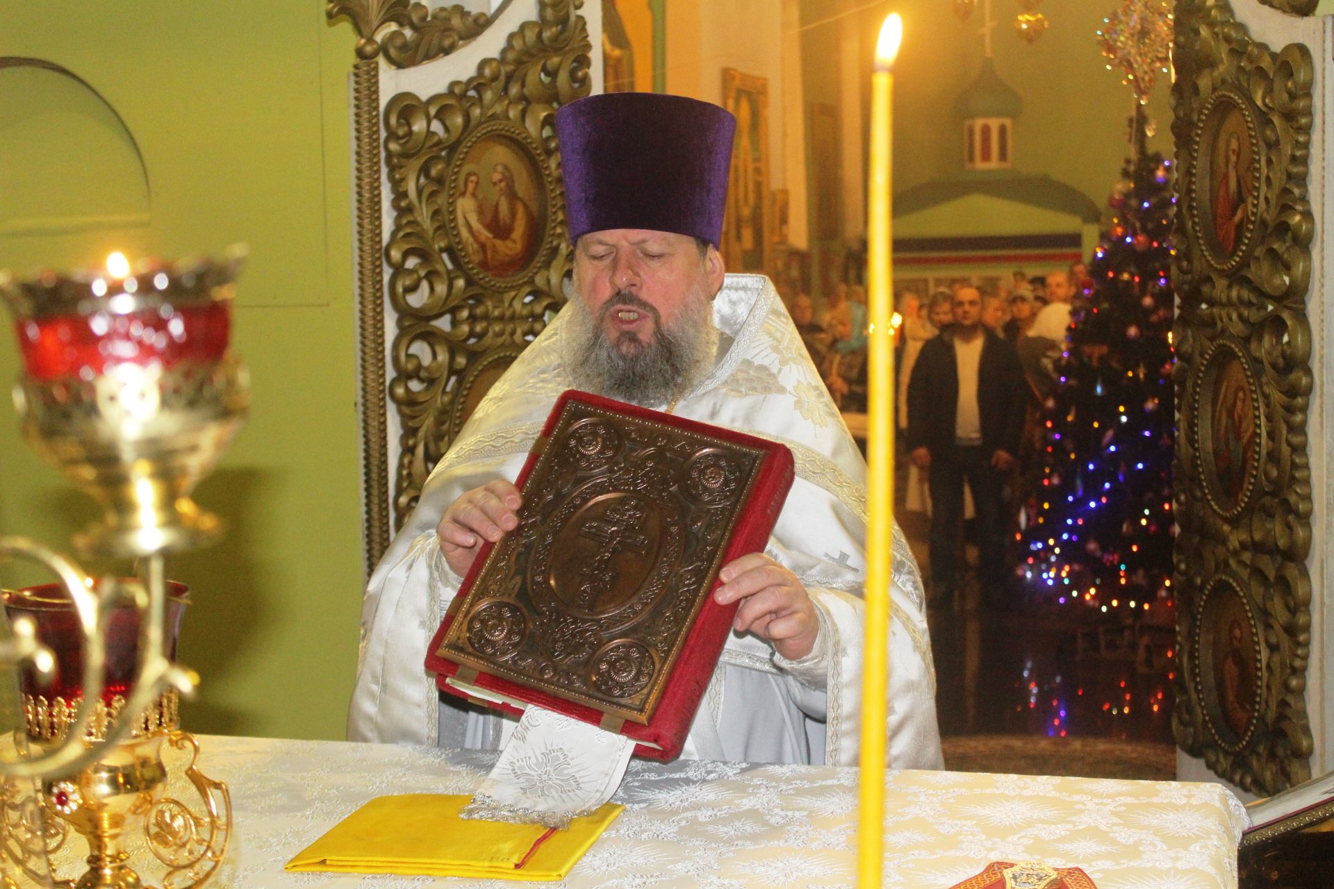 В храме в честь Преподобного Сергия Радонежского города Людиново Рождественские Богослужения возглавил благочинный 6-го округа настоятель храма преподобного Сергия Радонежского протоиерей Василий Биляк, ему сослужил клирик храма протоиерей Димитрий Губаль.
