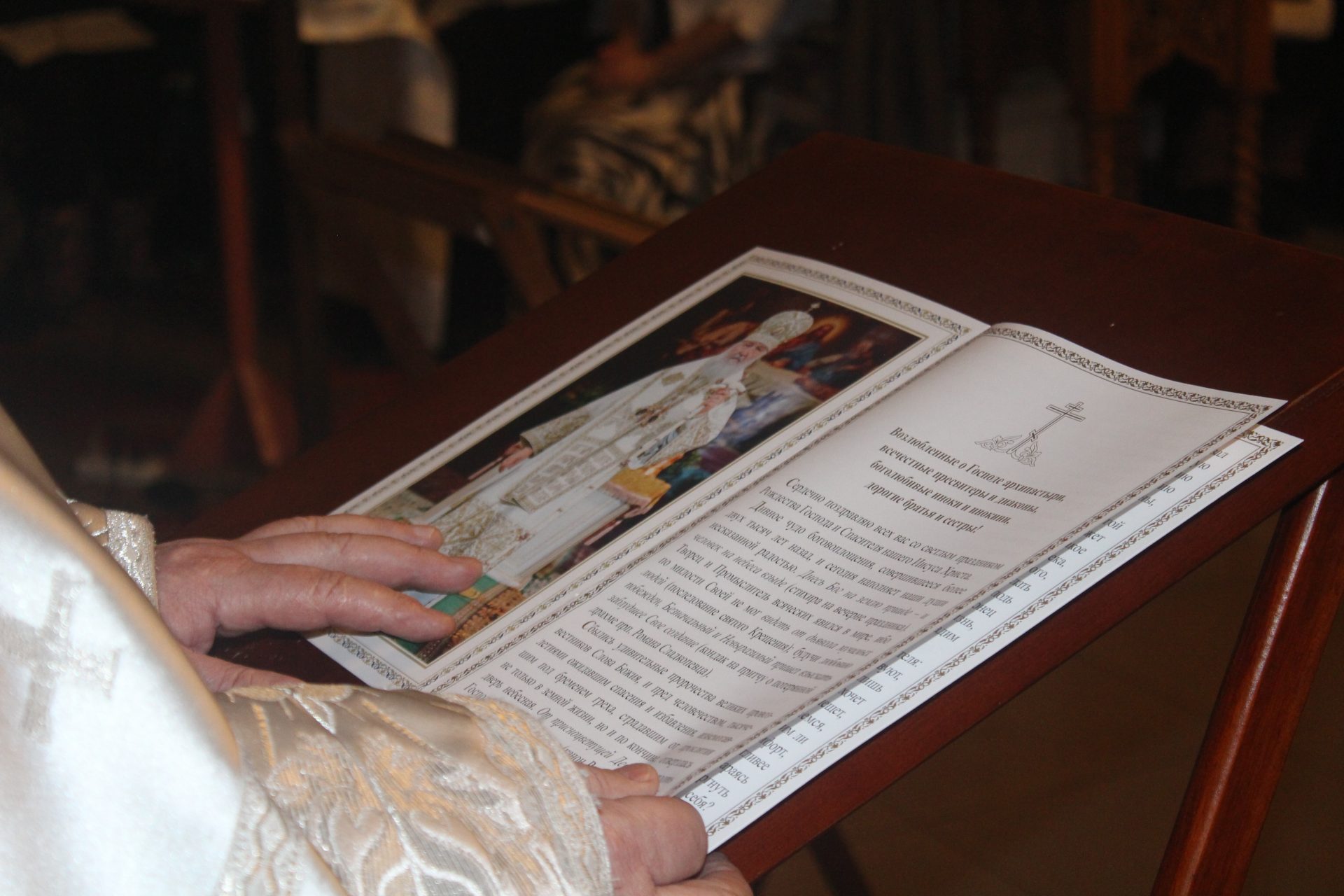 По прочтение Евангелия на Божественной Литургии настоятель храма огласил Рождественское послание Святейшего Патриарха Московского и всея Руси КИРИЛЛА.