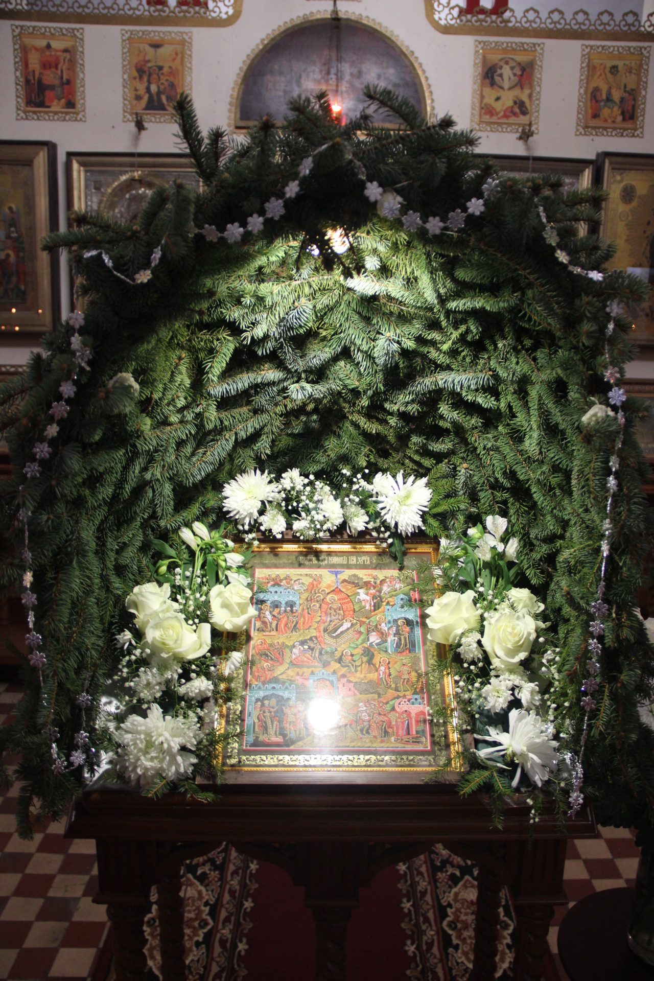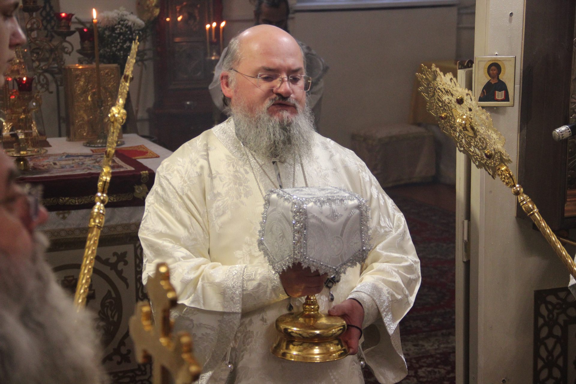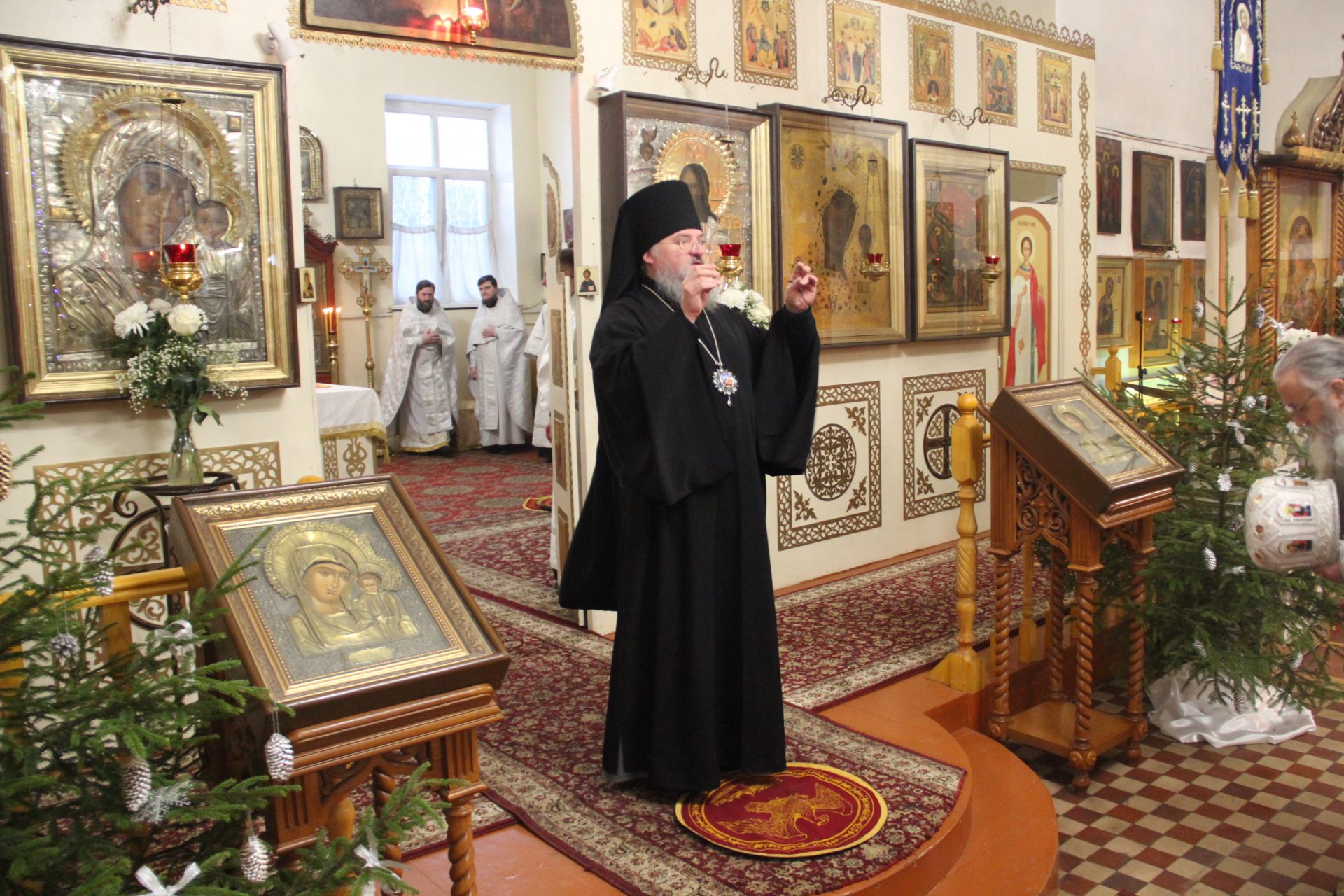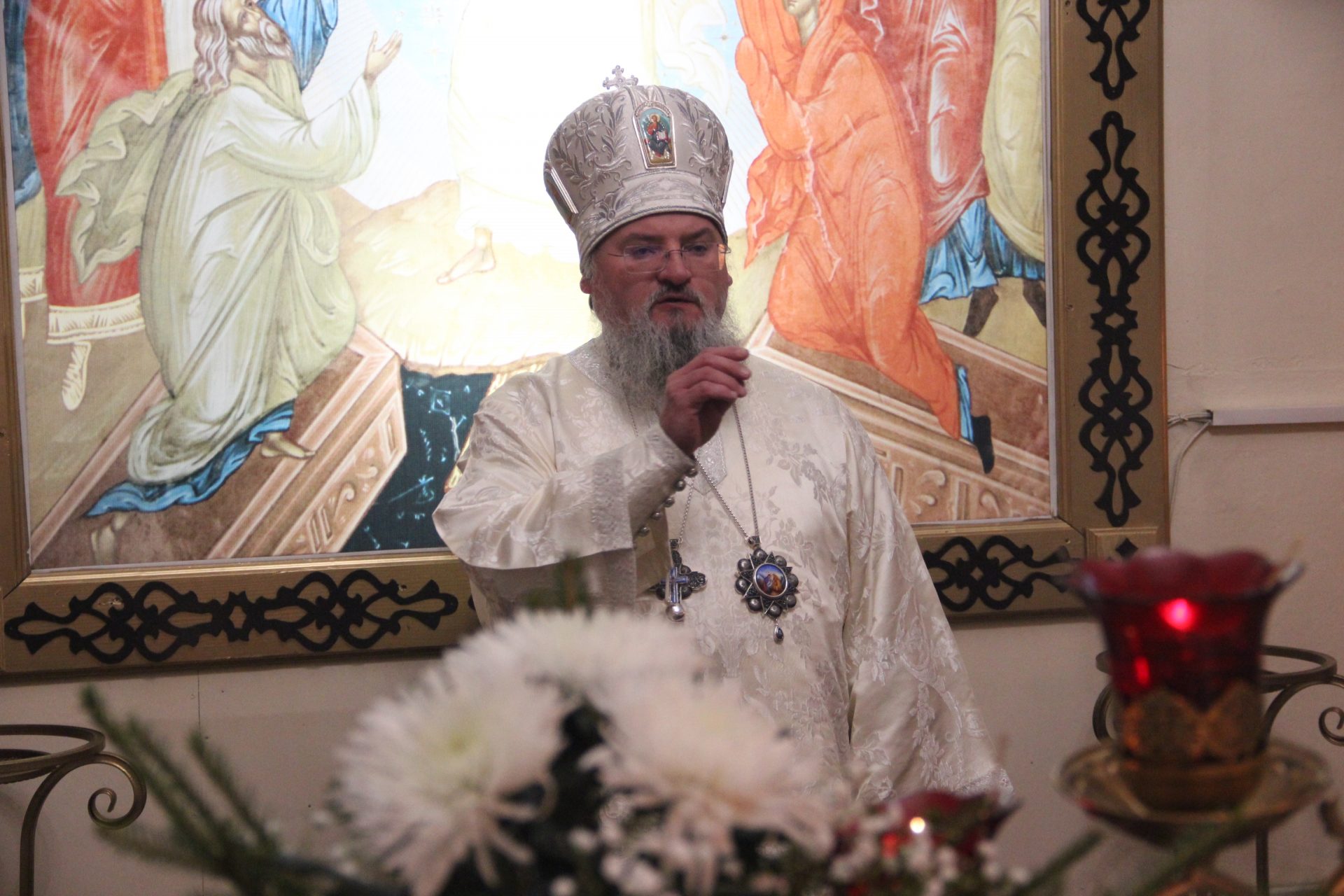 По окончании литургии священнослужители совершили славление праздника, а затем владыка обратился к богомольцам со словом поздравления.