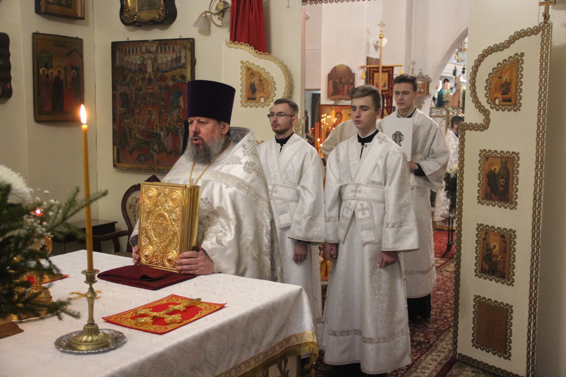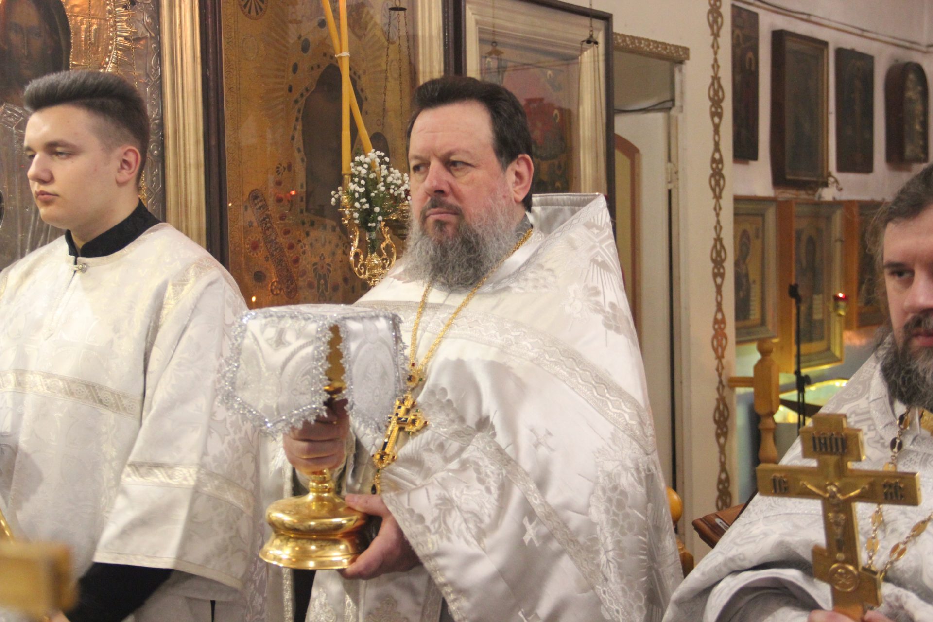 Преосвященному владыке сослужили: митрофорный протоиерей Алексий Жиганов – настоятель собора, протоиерей Василий Биляк – благочинный округа, протоиерей Михаил Карпенко, протоиерей Антоний Хатунцев, клирики храмов города.