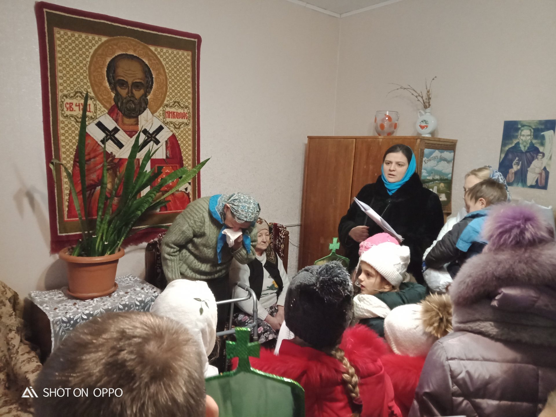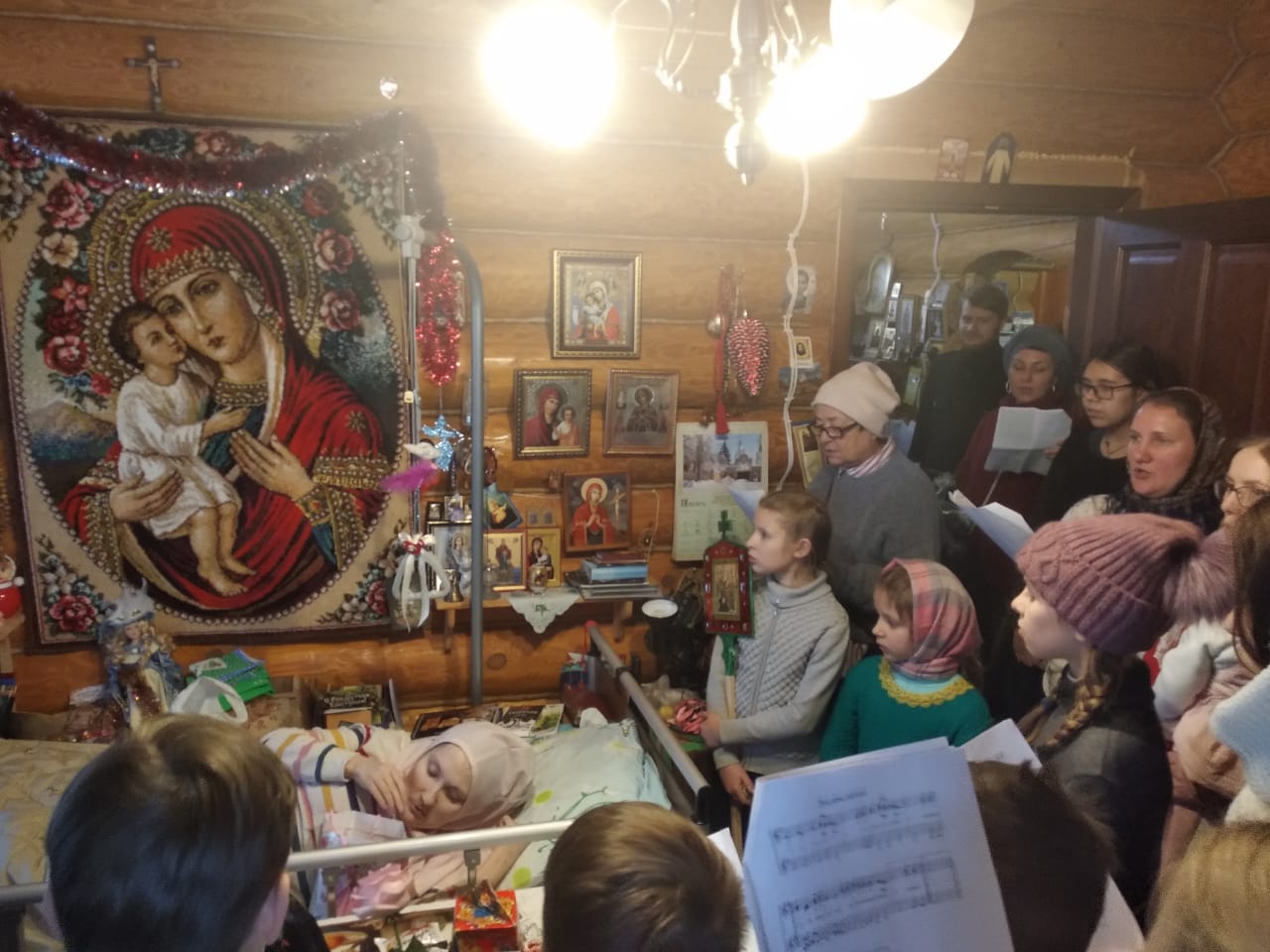 Особое внимание дети уделили престарелым насельницам богоделен при храме в селе Фроловском и при монастыре в селе Клыково. Многие из них тяжко болящие и прикованные к постели, и особенно нуждаются во внимании. Для старушек дети не только исполнили Рождественские песнопения, но ещё подготовили для них сладкие подарки и бумажных ангелочков с написанными в них пожеланиями на будущий год.