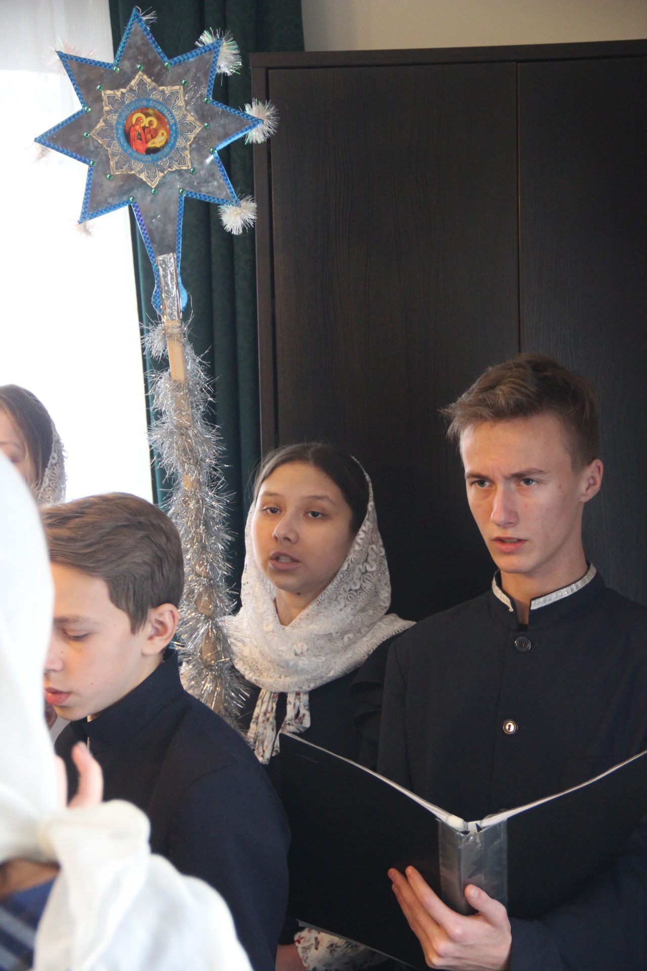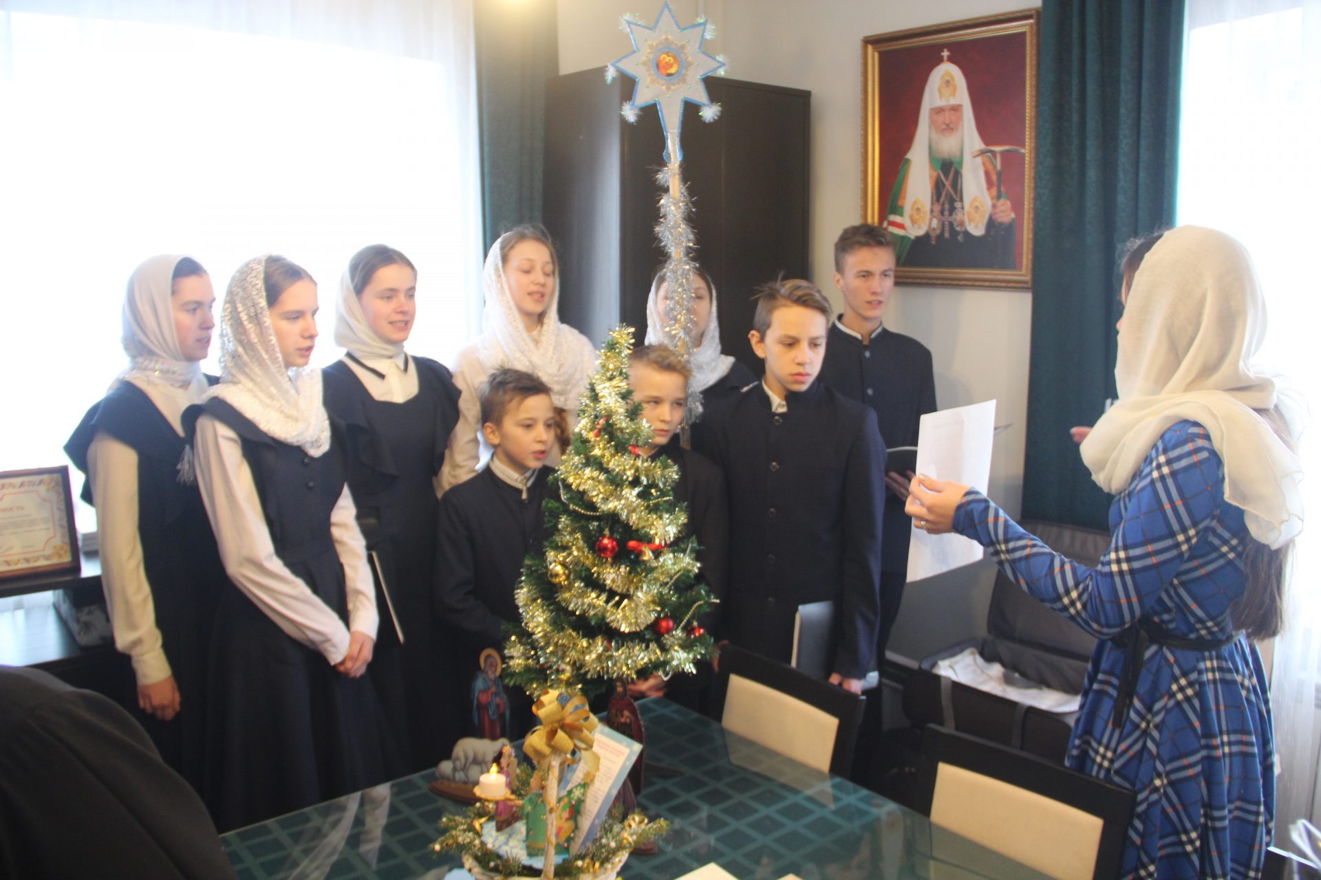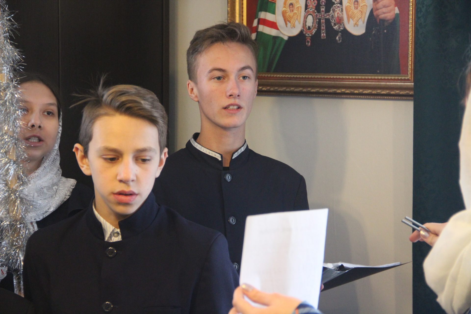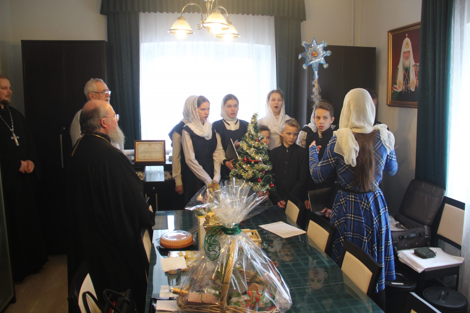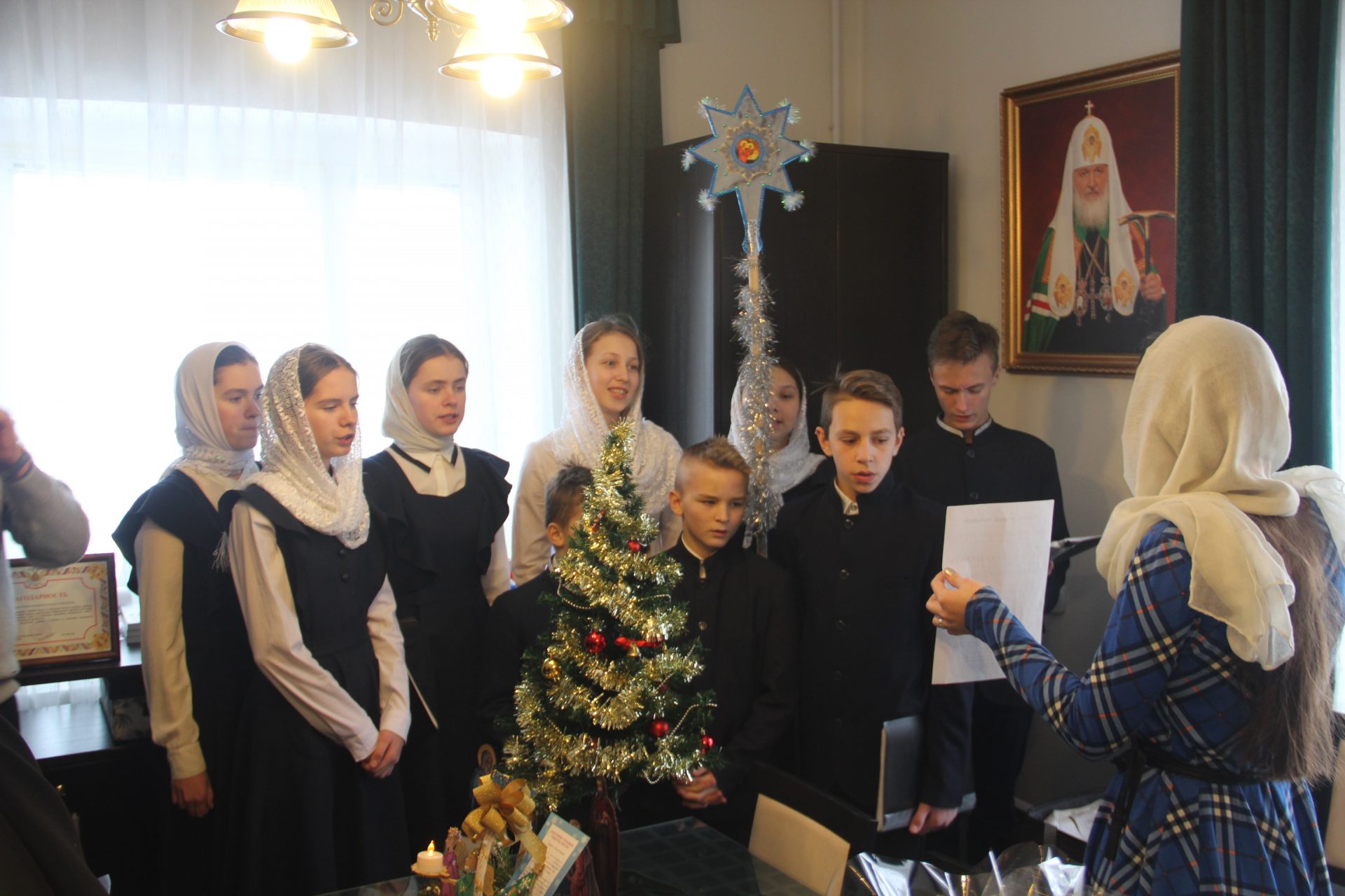 Со словам приветствия к архипастырю обратился директор гимназии Александр Николаевич Секерин, а затем ребята спели рождественские песнопения и колядки.
