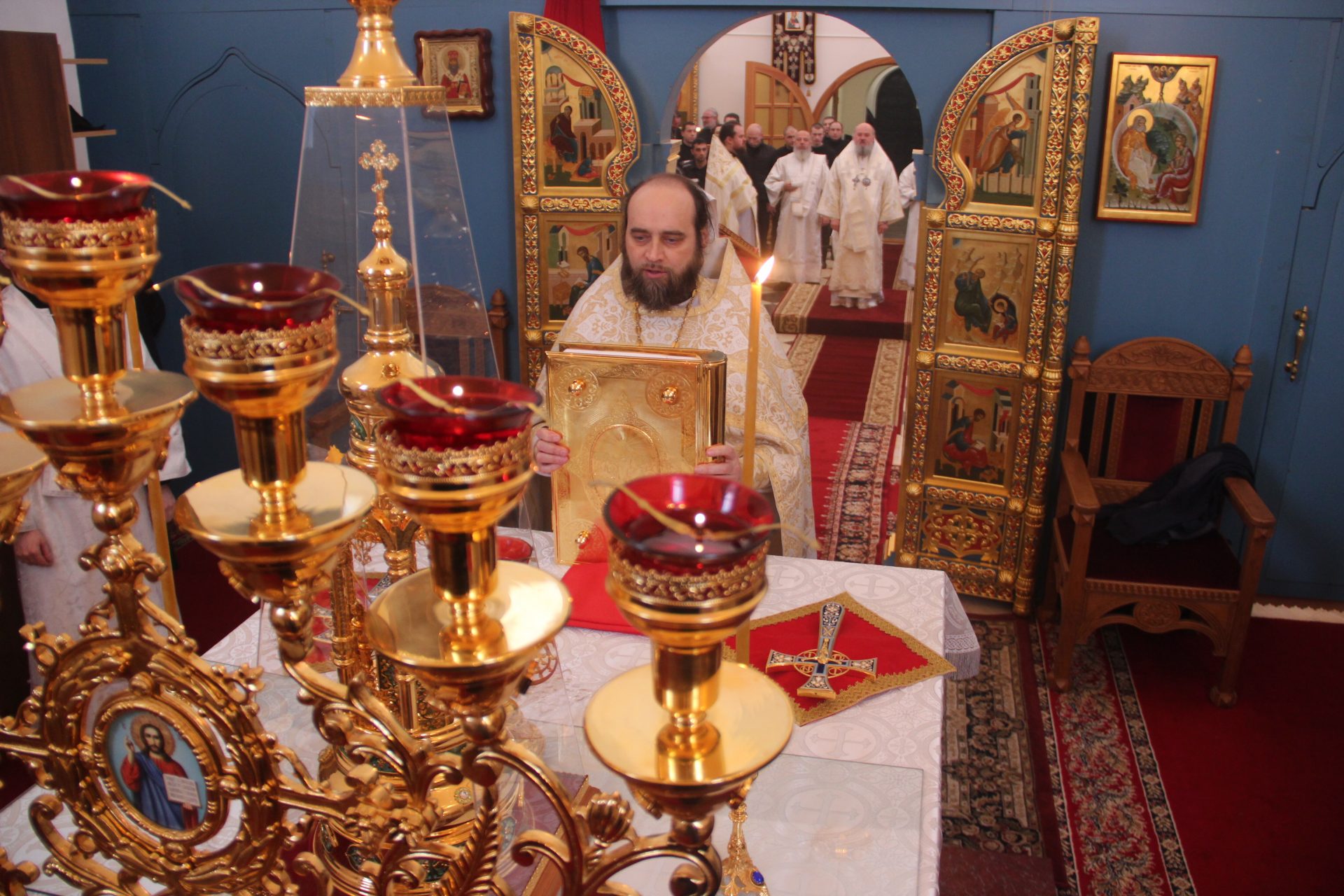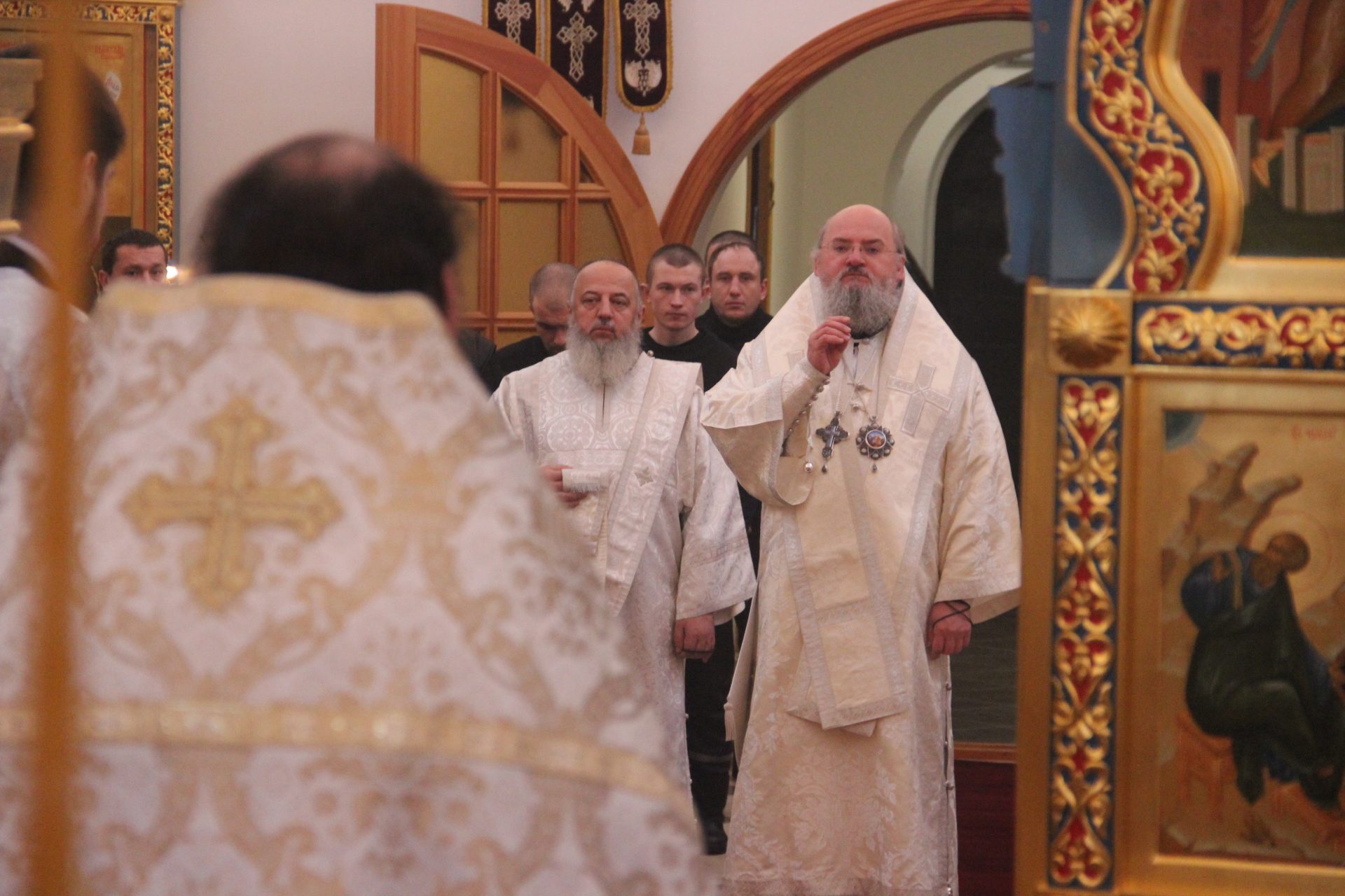 По отпусте литургии священнослужители совершили славление праздника Рождества Христова.