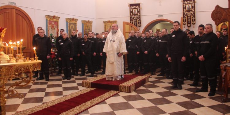 Епископ Козельский и Людиновский Никита посетил Исправительную Колонию №5 города Сухиничи. Владыка совершил Божественную литургию с храме Всех святых в земле Российской просиявших на территории исправительного учреждения.