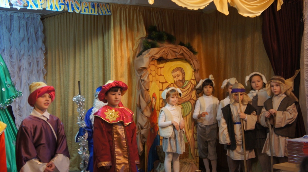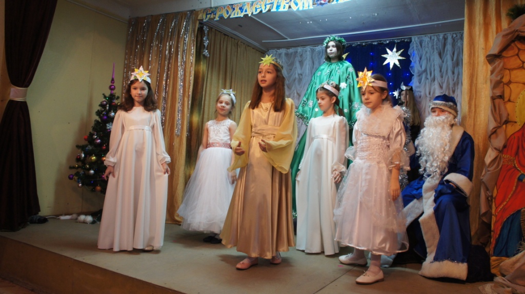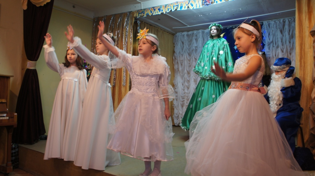 По традиции праздник открыли Рождественским тропарем. Так же в праздничной программе под руководством Виноградовой Н.Ю. прозвучали музыкальные номера: в исполнении ансамбля «Малыши» позвучала песня «Наступило Рождество», колядки «Эта ночь святая», «День рождение Христа», «Светлый праздник рождества» в исполнении ансамблей «Перезвоны» и «Седмица».