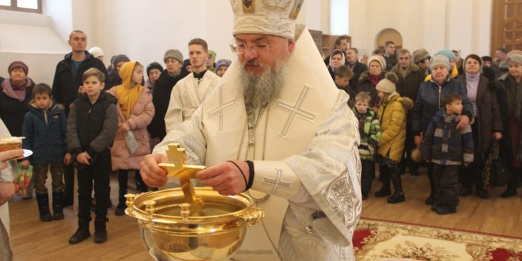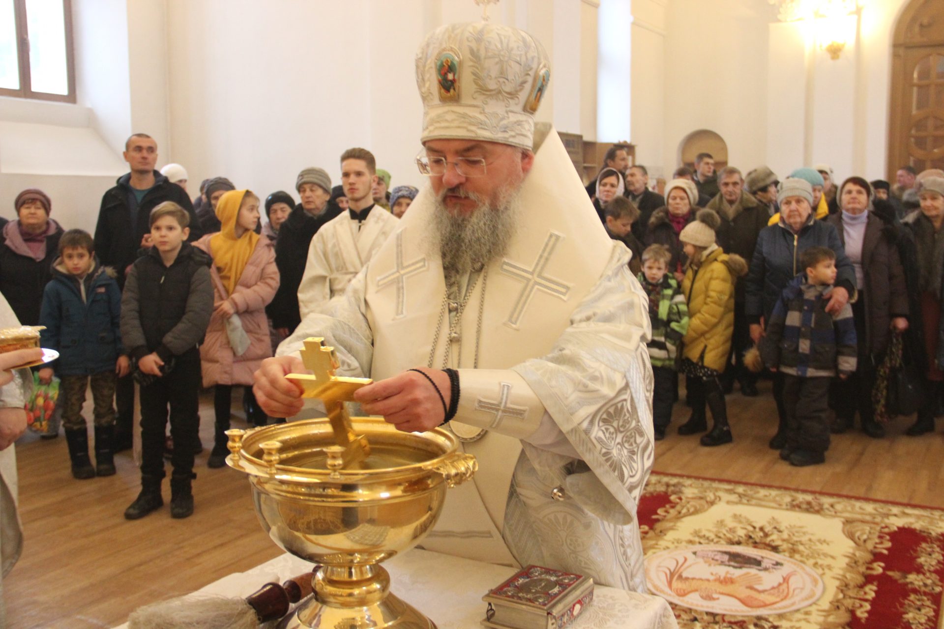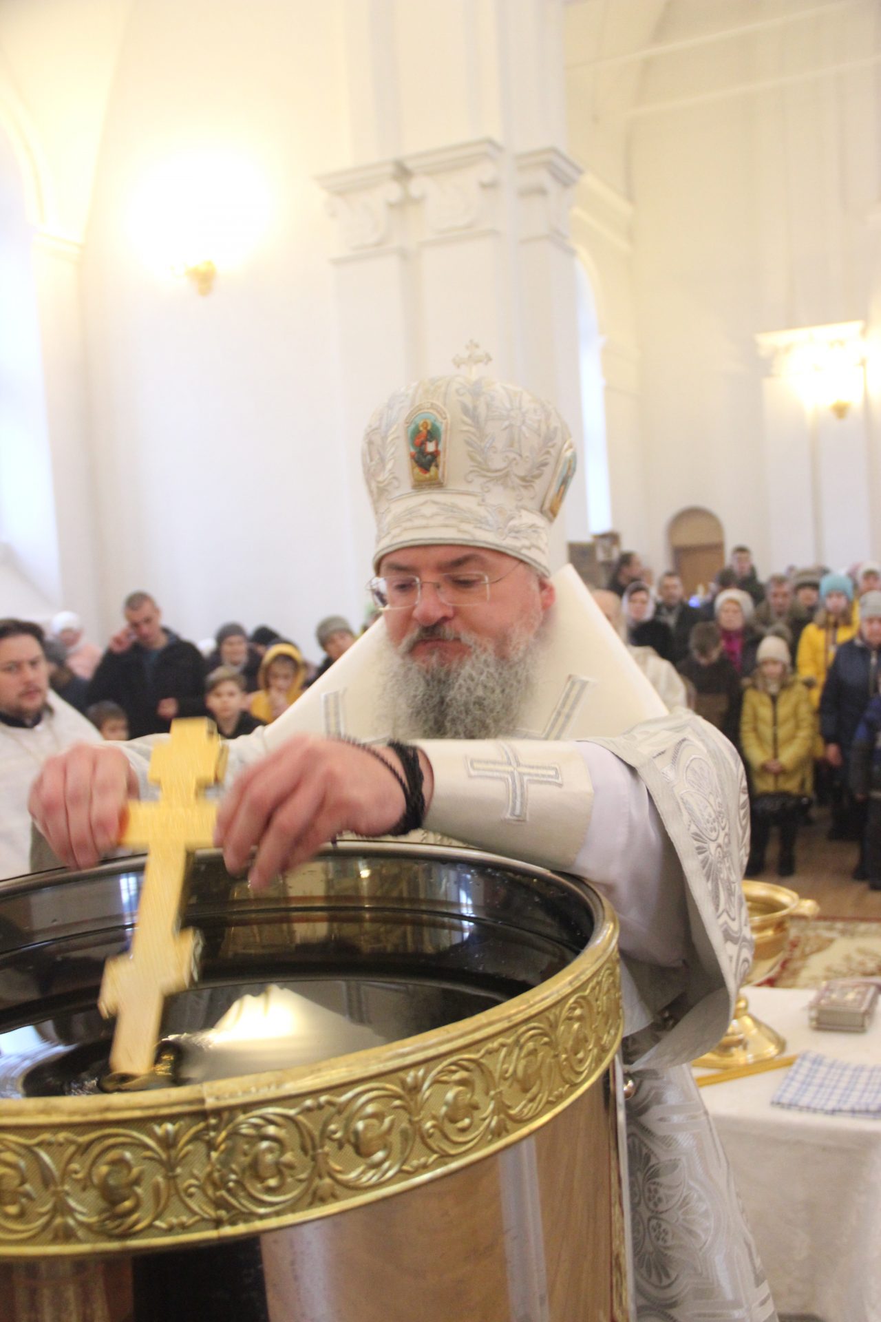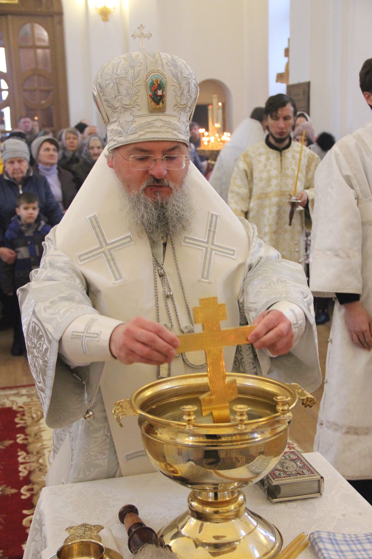 По заамвонной молитве священнослужители совершили Чин Великого освящения воды Святых Богоявлений, в завершении которого владыка обратился к богомольцам с проповедью.