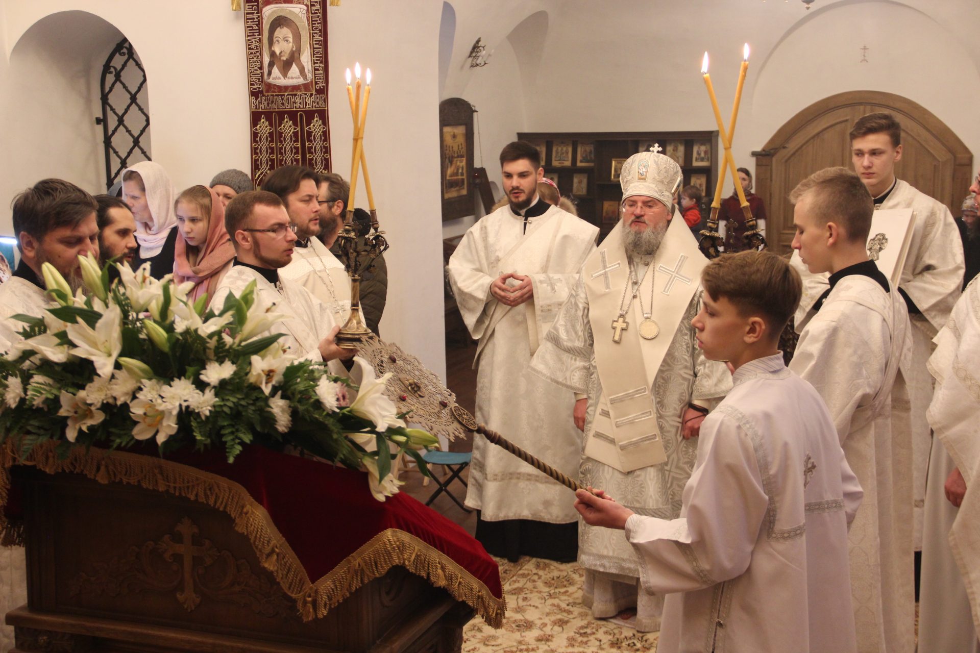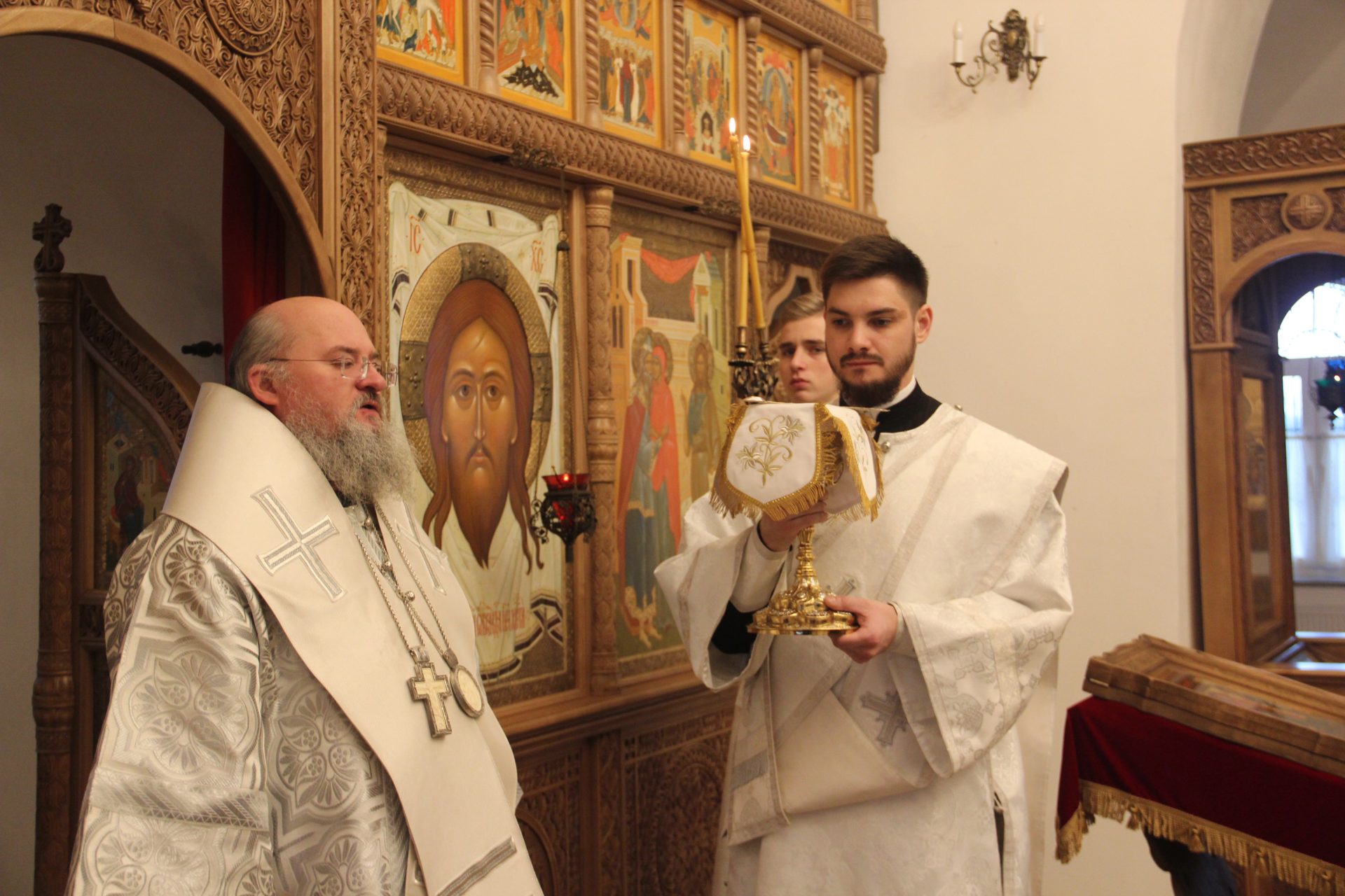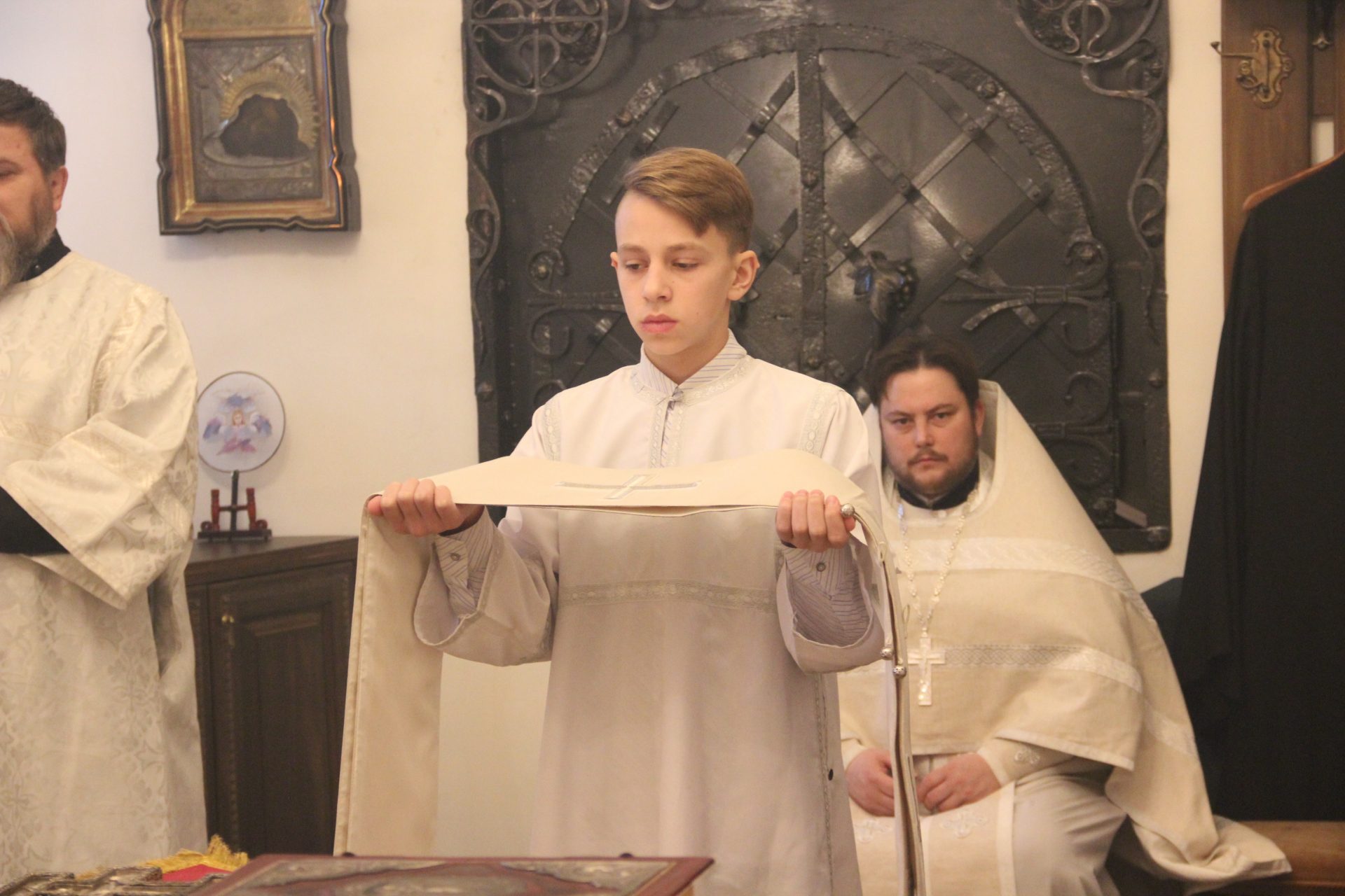 Архипастырю сослужили: протоиерей Антоний Хатунцев, иеромонах Паисий (Курмаз), иерей Максим Изопов – настоятель храма, диакон Евгений Васильев и иеродиакон Виталий (Павленко).
