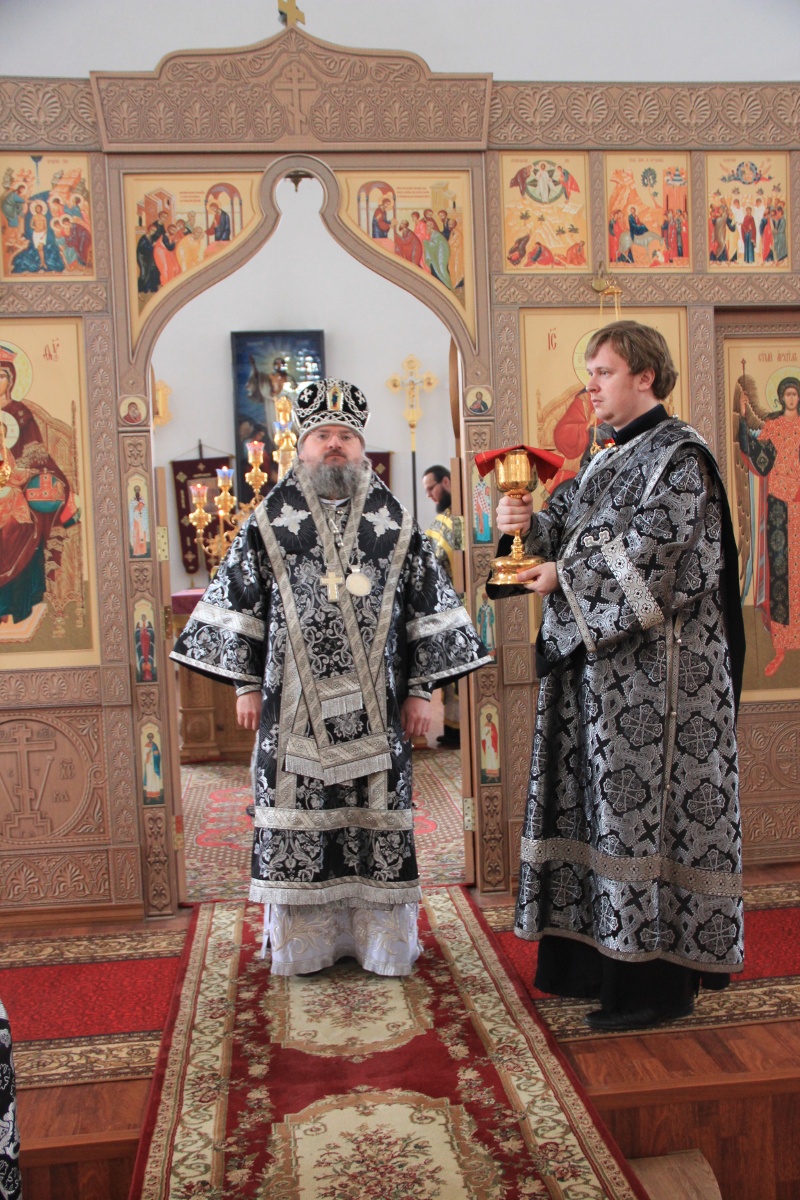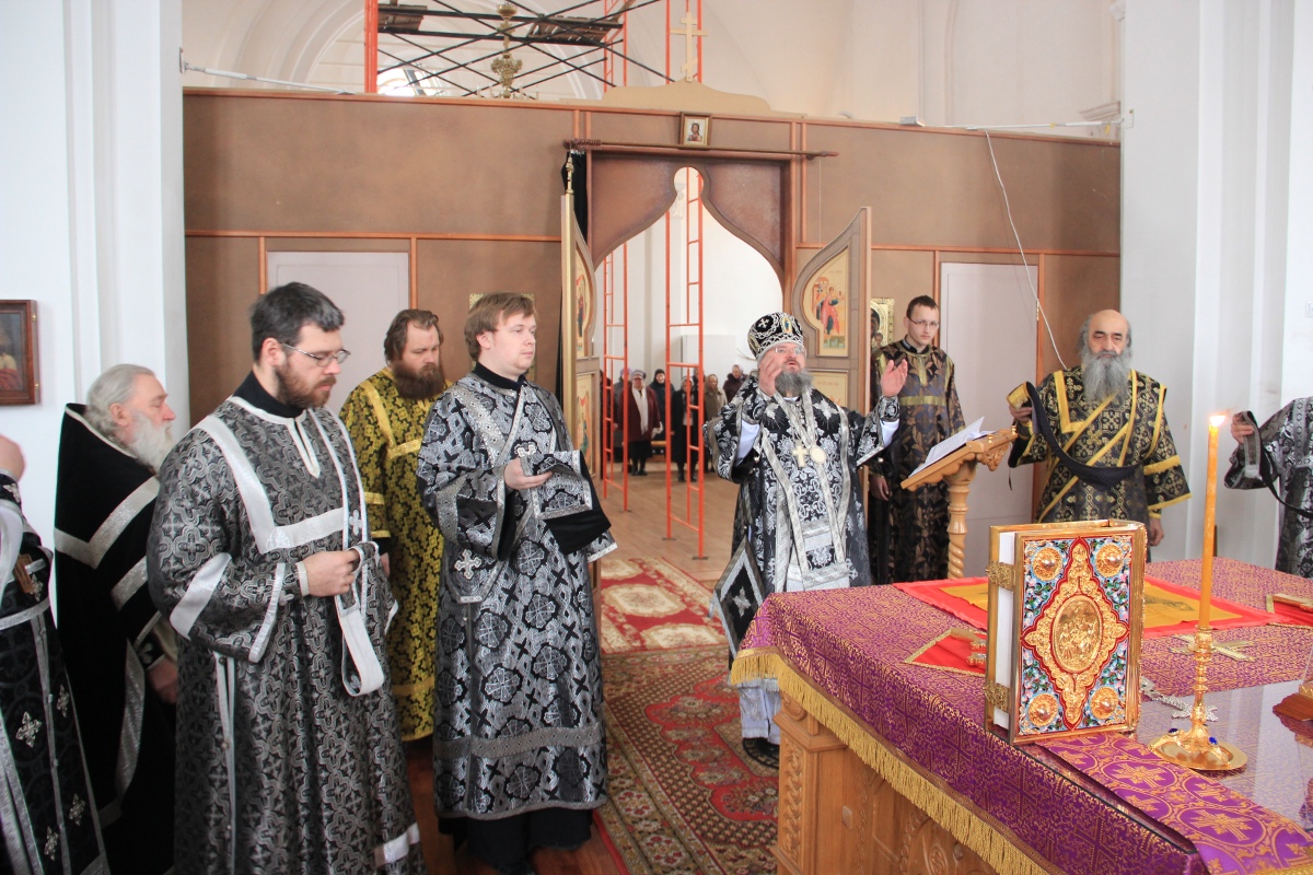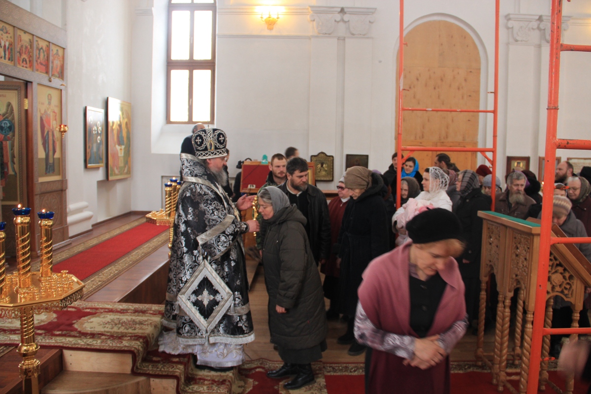 19 марта. Обретение Честнаго и Животворящего Креста царицею Еленою во Иерусалиме. Управляющий Козельской епархией епископ Козельский и Людиновский Никита совершил Литургию Преждеосвященных Даров в сослужении духовенства 1-го (Козельского) благочиннического округа в Свято-Богоявленском храме города Козельска. После отпуста литургии владыка обратился к молящимся с архипастырским словом.