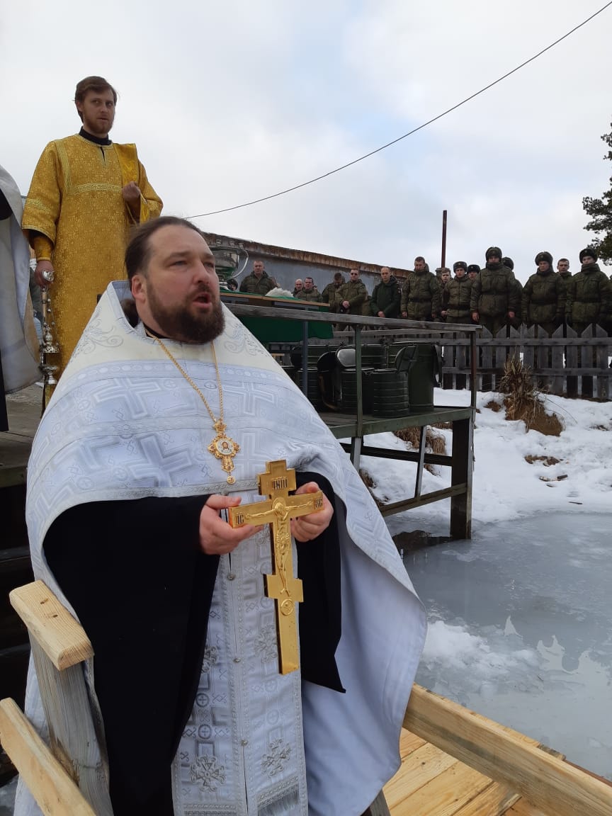 В субботу 18 января было совершенно великое освящение воды в военной части. На освящение воды присутствовали, как и простые служащие так их командиры. По окончанию торжественного молебна протоиерей Владимир Бахаев поздравил всех присутствующих с великим праздником Богявления и пригласил всех желающих окунуться в пруду. Служащие с радостью приняли это приглашения и многие стали, под пение тропаря Крещению, окунаться в освященной воде.
