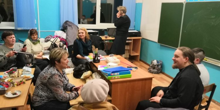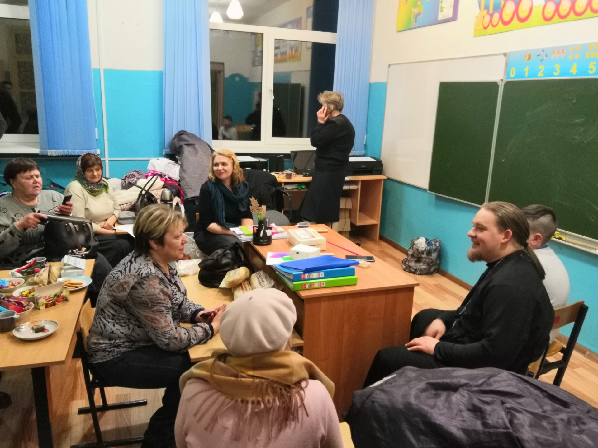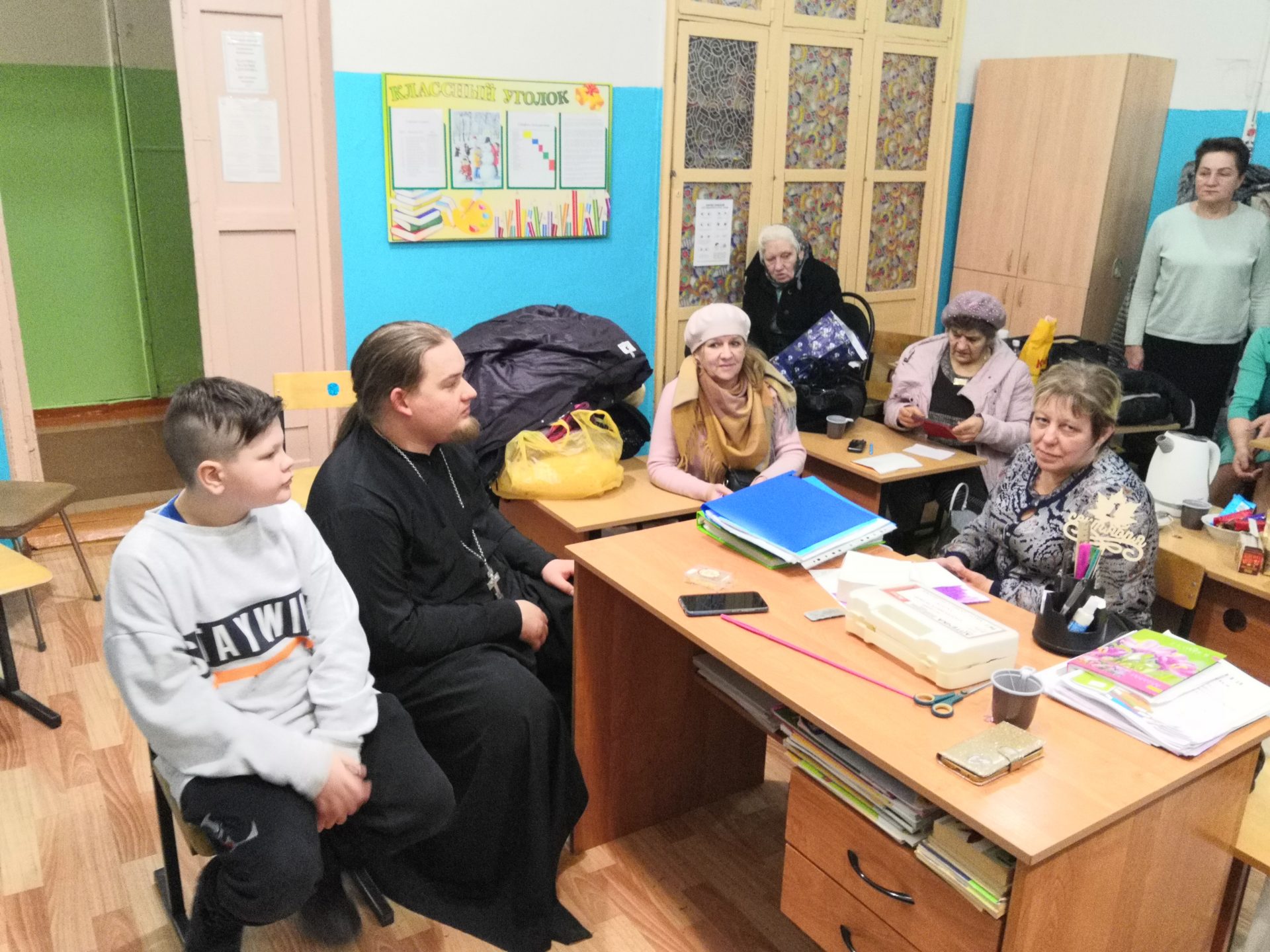 В помещении общеобразовательной школы деревни Подборки был развернут штаб помощи пострадавшим в ДТП. В работе штаба принял участие настоятель храма Успения Пресвятой Богородицы в селе Озерском иерей Дмитрий Торшин.