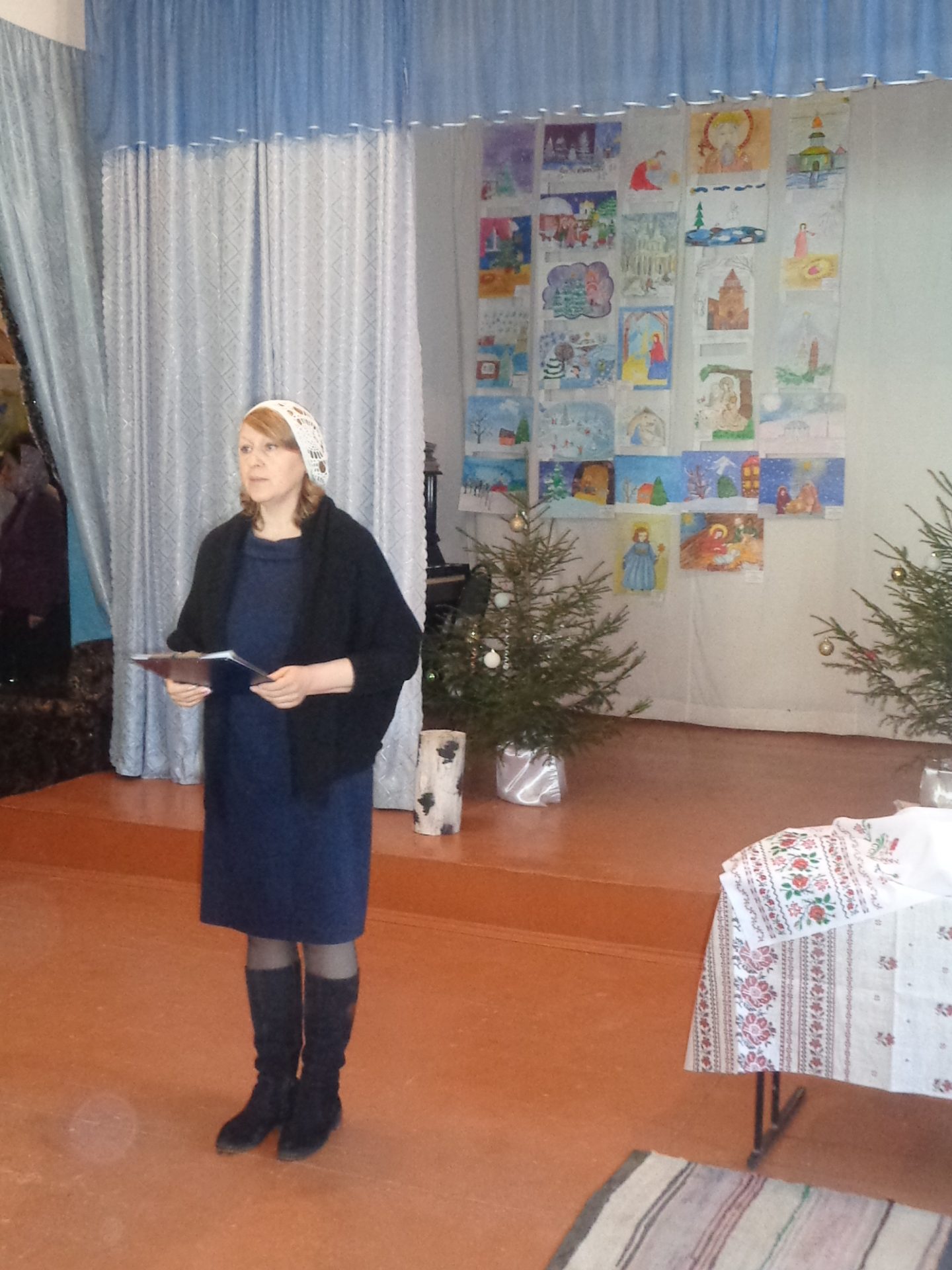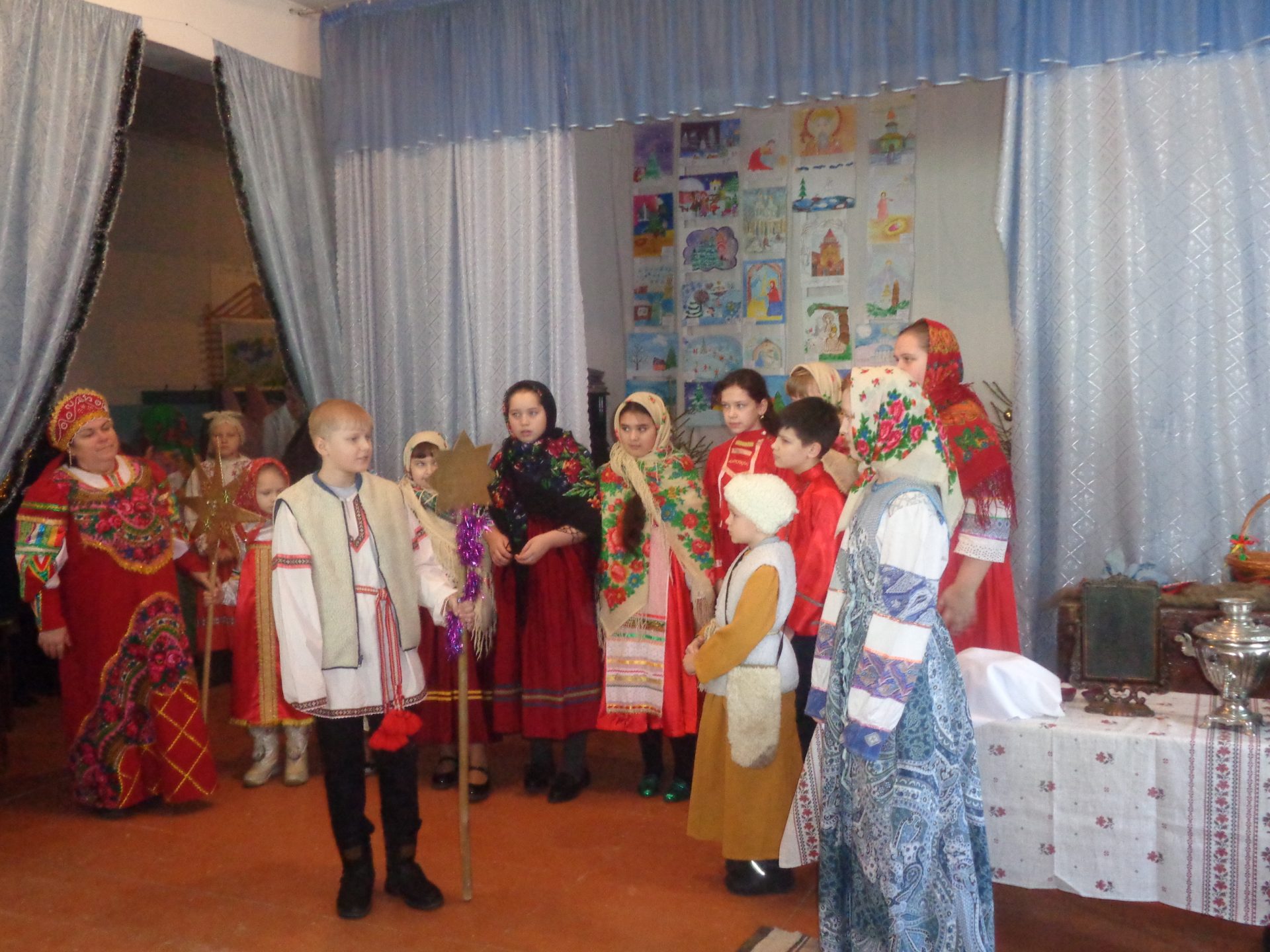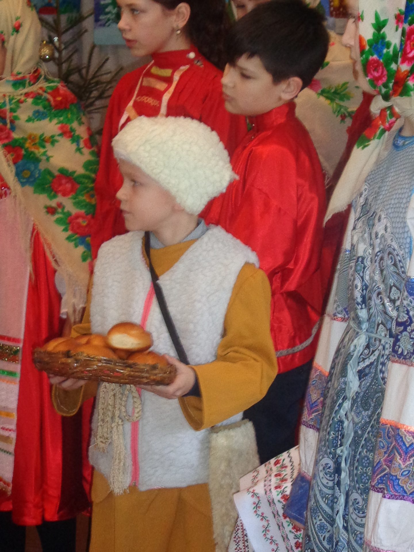Празднику Крещения Господня дети из фольклорного ансамбля «Проталинка» и Анастасия Саврей посвятили песню «Молодая пряха». Ольга Владимировна Пилипченко подготовила презентацию об истории русского костюма, а затем загадывала загадки. За правильные ответы и дети, и взрослые получали сладости.