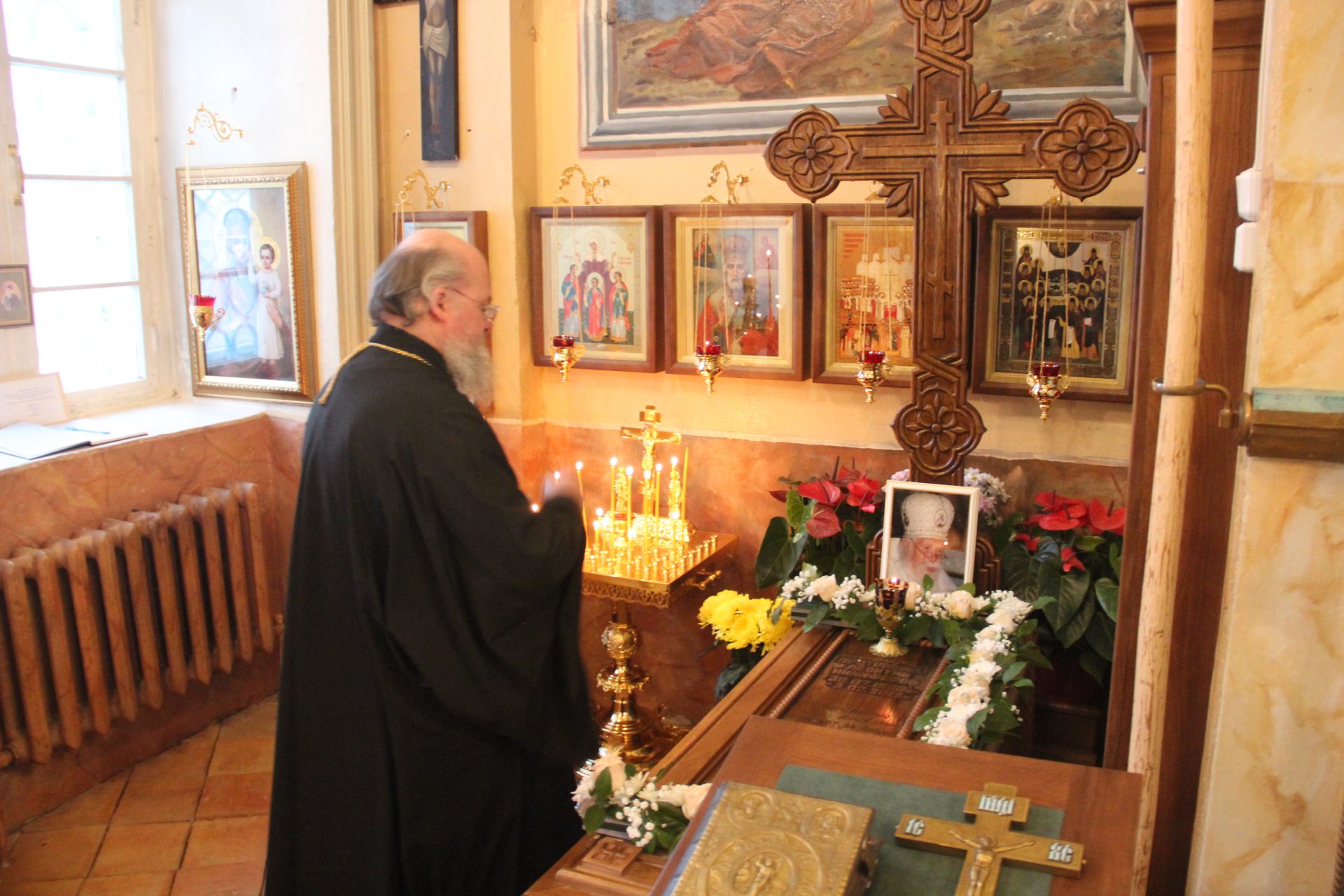 По отпусте литургии священнослужители совершили панихиду по блаженнопочившему настоятелю Преображенского храма митрофорному протоиерею Леонтию Никифорову, прослужившему на приходе без малого 55 лет и почившему два года назад, 3 февраля 2018 года.