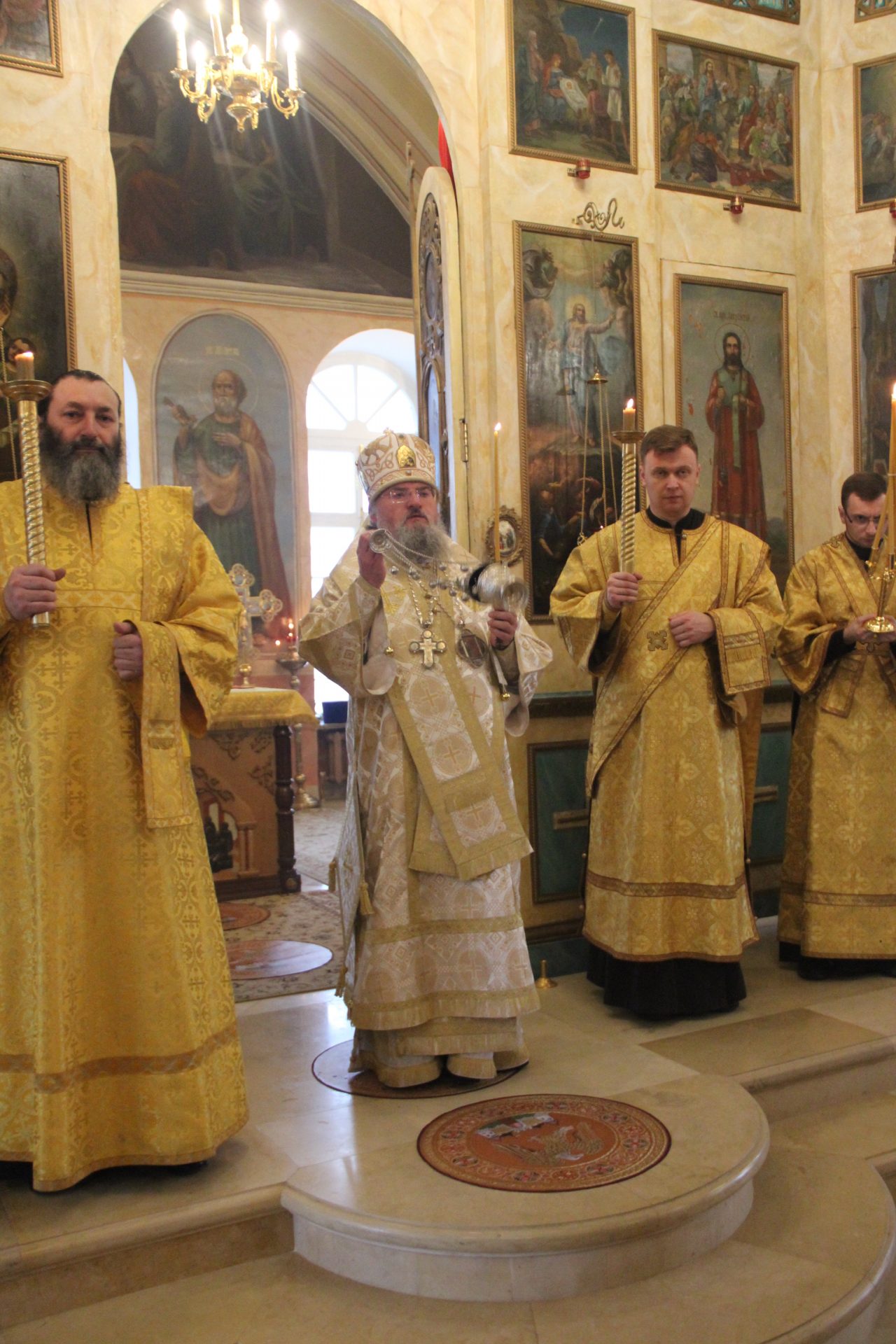 Преосвященному владыке сослужили: протоиерей Антоний Хатунцев, иерей Симеон Худяков, иерей Тихон Худяков – настоятель храма, диакон Евгений Ковригин, диакон Валерий Волков и иеродиакон Виталий (Павленко).