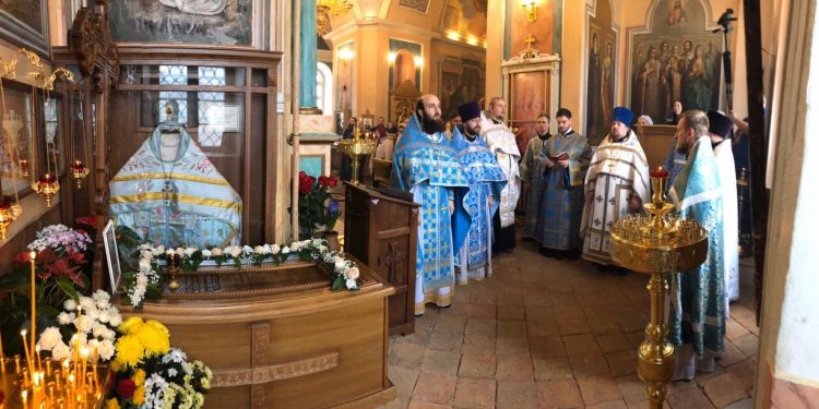 Божественную литургию и накануне всенощное бдение возглавил настоятель храма иерей Тихон Худяков. Ему сослужили: иерей Константин Комаров, настоятель храма Архангела Михаила и благочинный города Калуги, иерей Лев Шиповский настоятель храма в честь Архангела Михаила села Слаговищи Козельской епархии, иерей Андрей Товмасян клирик монастыря Успенская Феклина пустынь, в сослужении диакона Евгения Васильева заведующего канцелярией Козельской епархии и диакона Валерия Волкова.