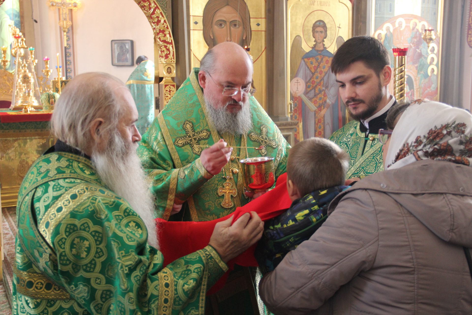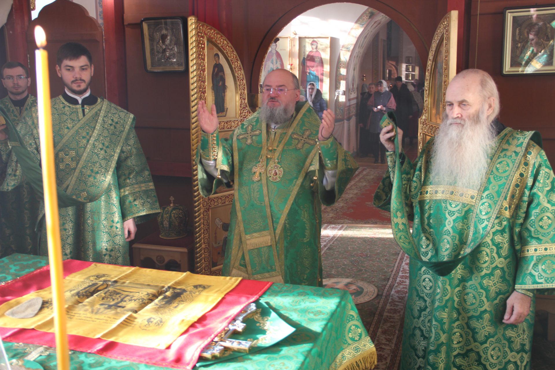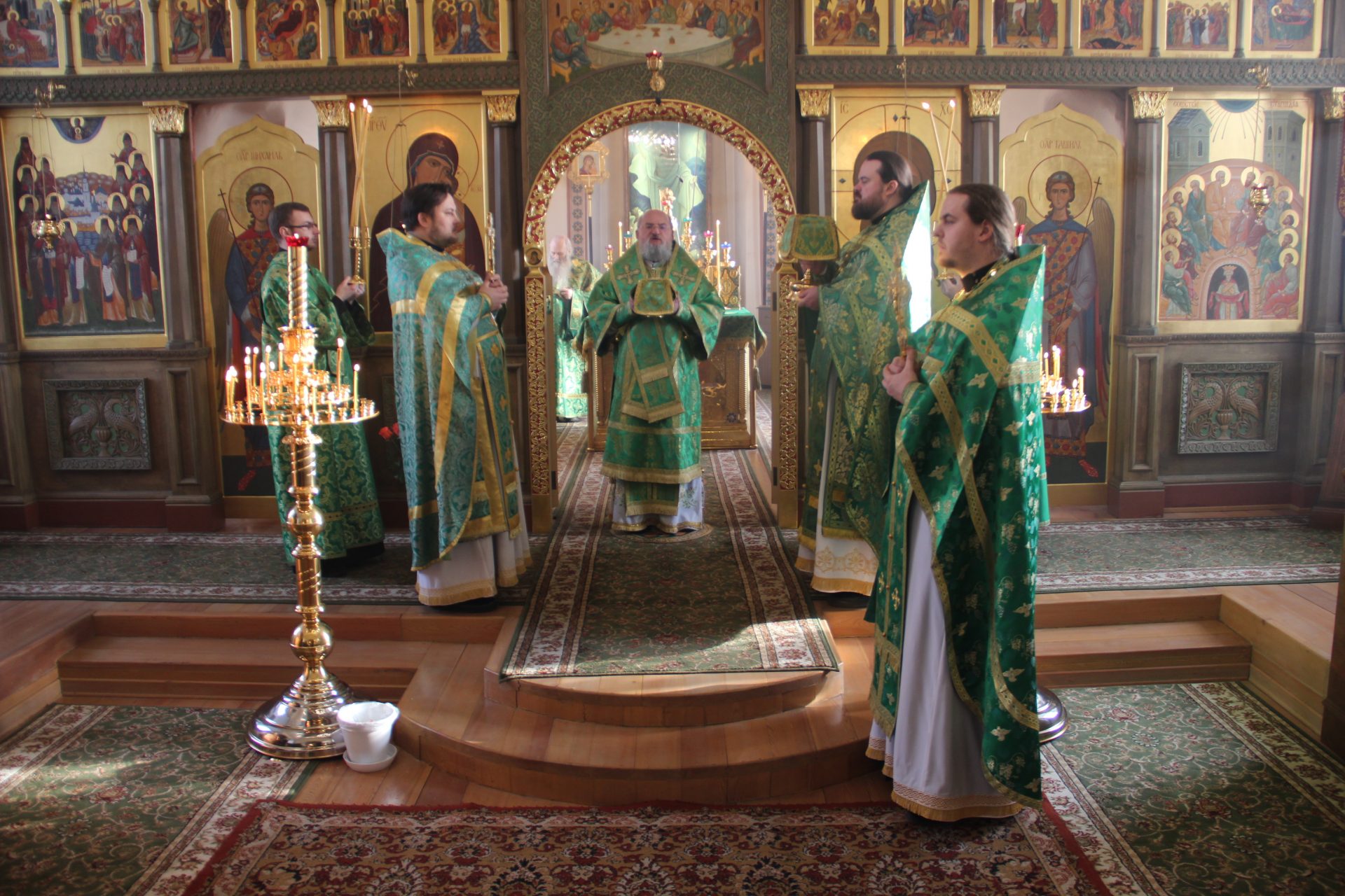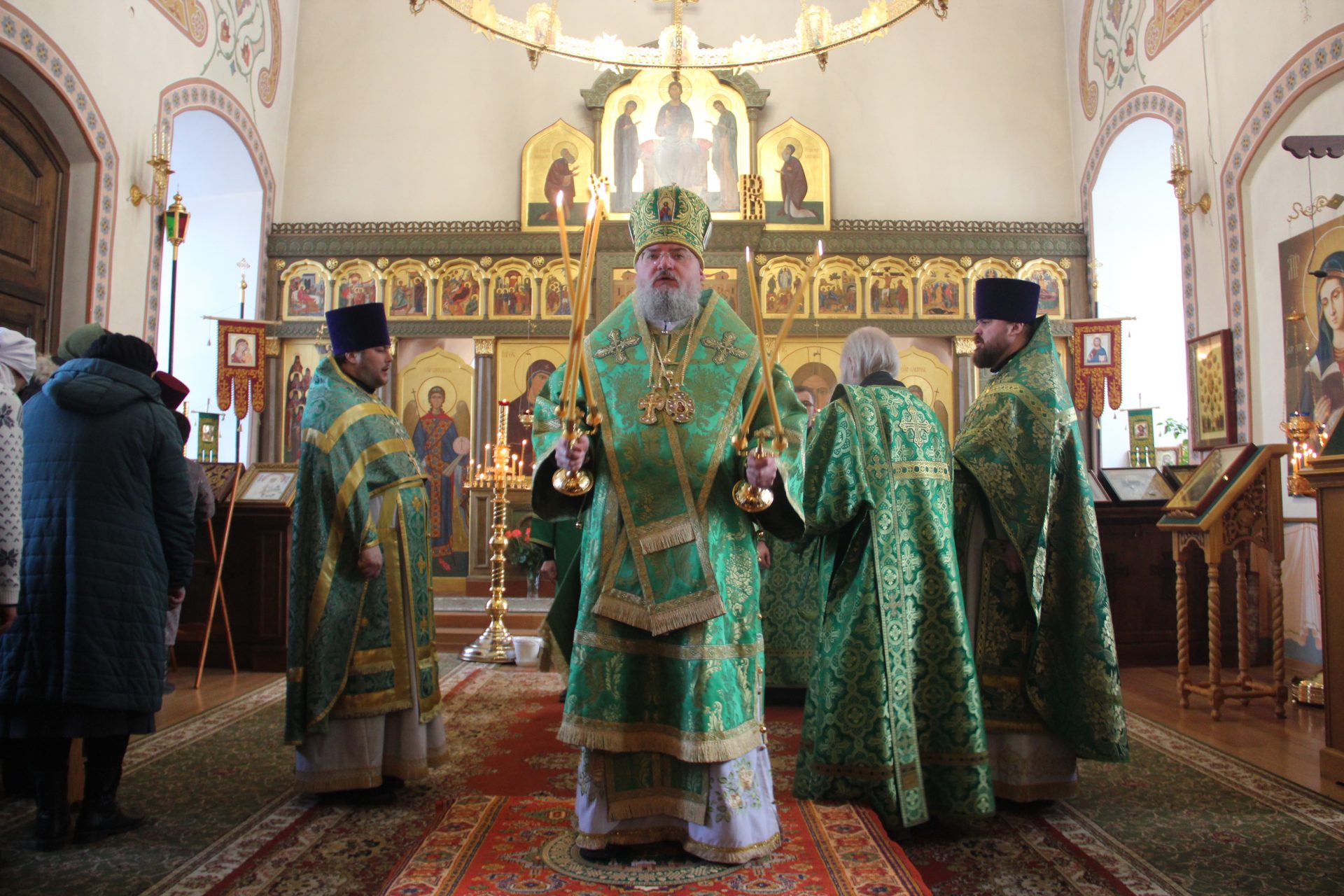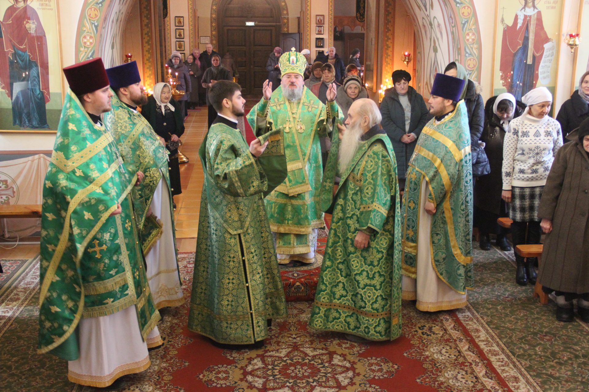 Архипастырю сослужили: настоятель храма протоиерей Сергий Сычев, протоиерей Антоний Хатунцев, иерей Виктор Носов, диакон Евгений Васильев и иеродиакон Виталий (Павленко).