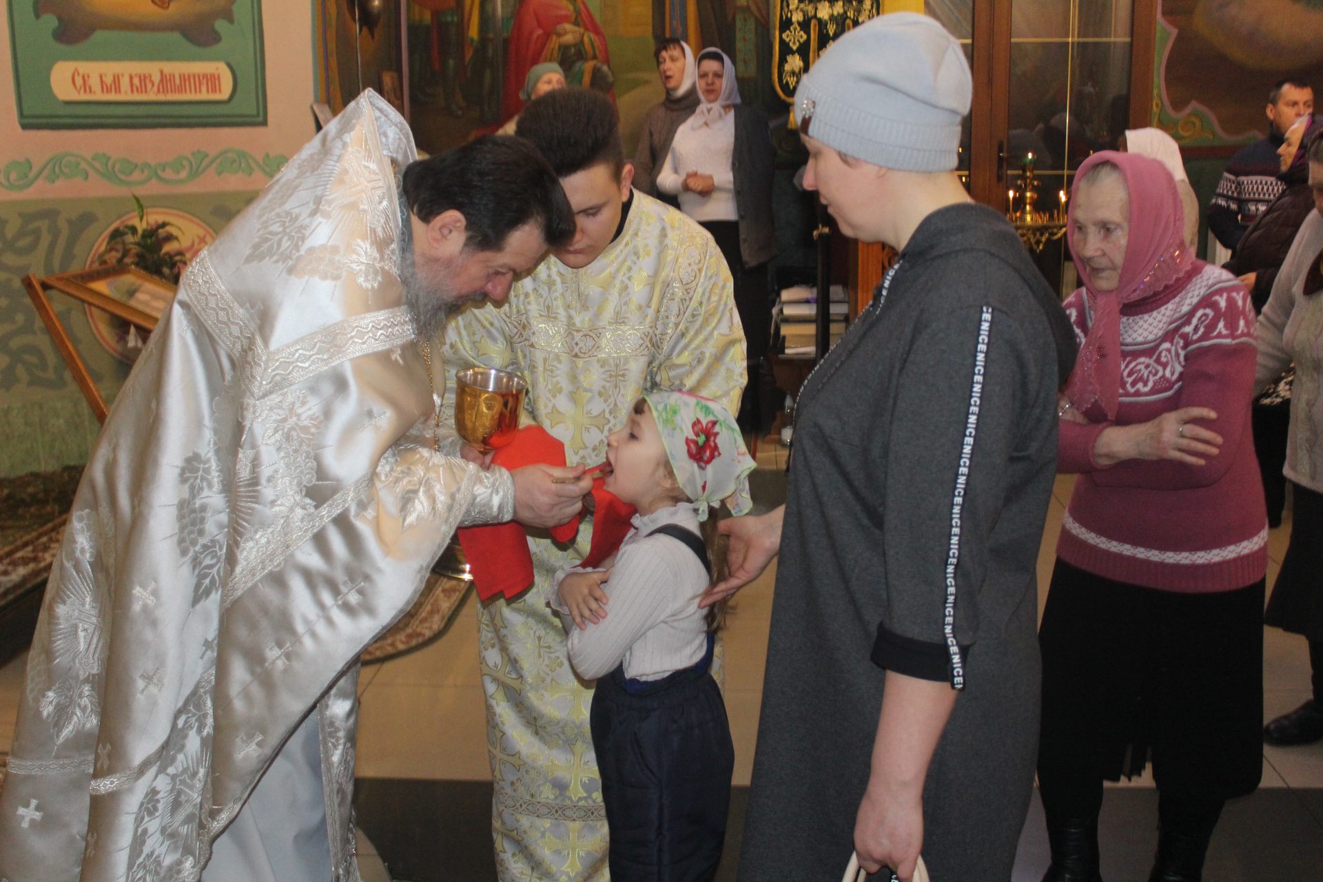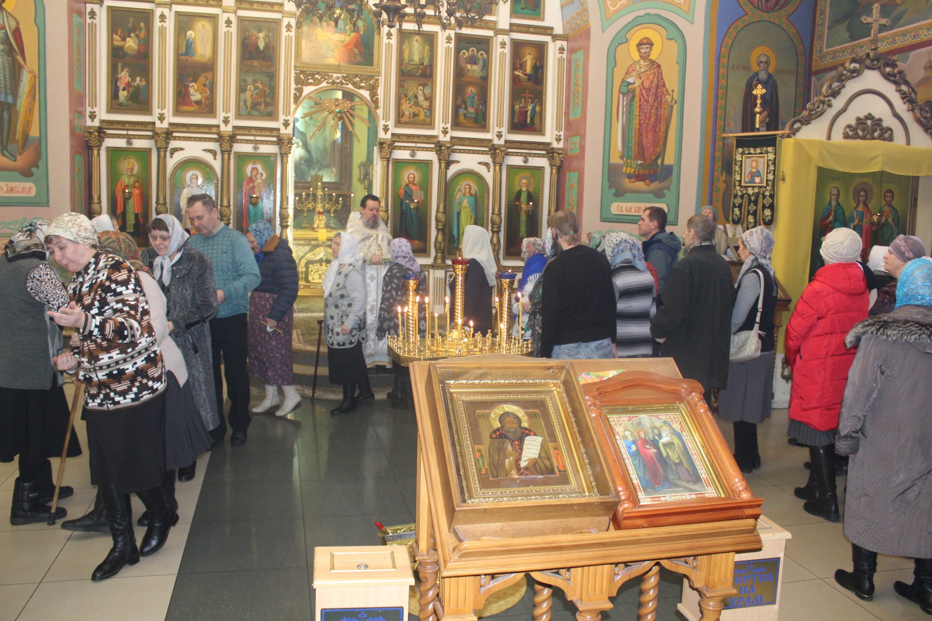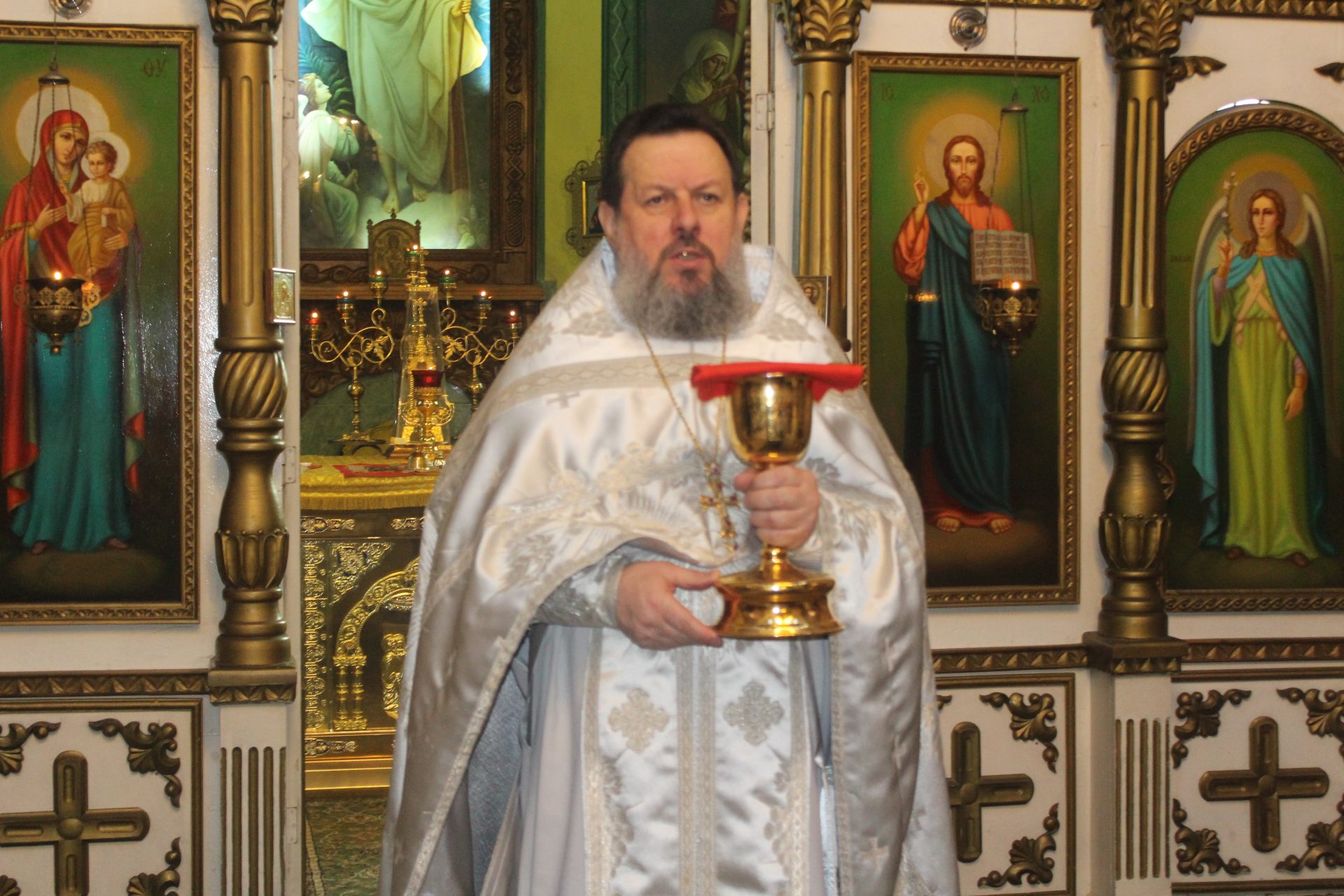 В завершении богослужения, протоиерей Василий обратился к молящимся с проповедью. «В этот день состоялась встреча Младенца Христа с праведным старцем Симеоном, который, водимый Святым Духом, пришел в Церковь, когда туда был принесен Спаситель. И вот этот радостный день настал, праведный Симеон лицом к лицу встретил Бога в образе Младенца Христа. Он трепетно принял на свои старческие руки сего небесного и, вместе с тем, земного Младенца, это сорокадневное крохотное Создание, к Которому он обратил свое моление: Ныне отпущаеши раба Твоего, Владыко, по глаголу Твоему с миром, ибо увидели очи мои Спасение Твое…Теперь Симеон мог с миром отойти в вечность, в область усопших, и принести туда радостную весть, что узрел на земле Бога, пришедшего плотию, узрел спасительный Свет, который будет на падение для неверующих и на восстание верующих в Него.Первая встреча для нас происходит во Святом Крещении, когда мы принесены в храм, любовью ближних отданы Богу.  Своими родителями мы были поставлены перед Господом и посвящены Ему на служение. Встречей с Господом в нашей жизни является каждое Причащение Его Божественной Плоти и Крови, поскольку в этом Таинстве мы соединяемся со Спасителем. Нам должно как можно чаще возобновлять в своей памяти то, что было обещано нами Господу во Святом Крещении, чтобы в нашей встрече с Господом по отшествии из мира сего не быть судимыми как напрасно принявшим благодать Святаго Духа.»