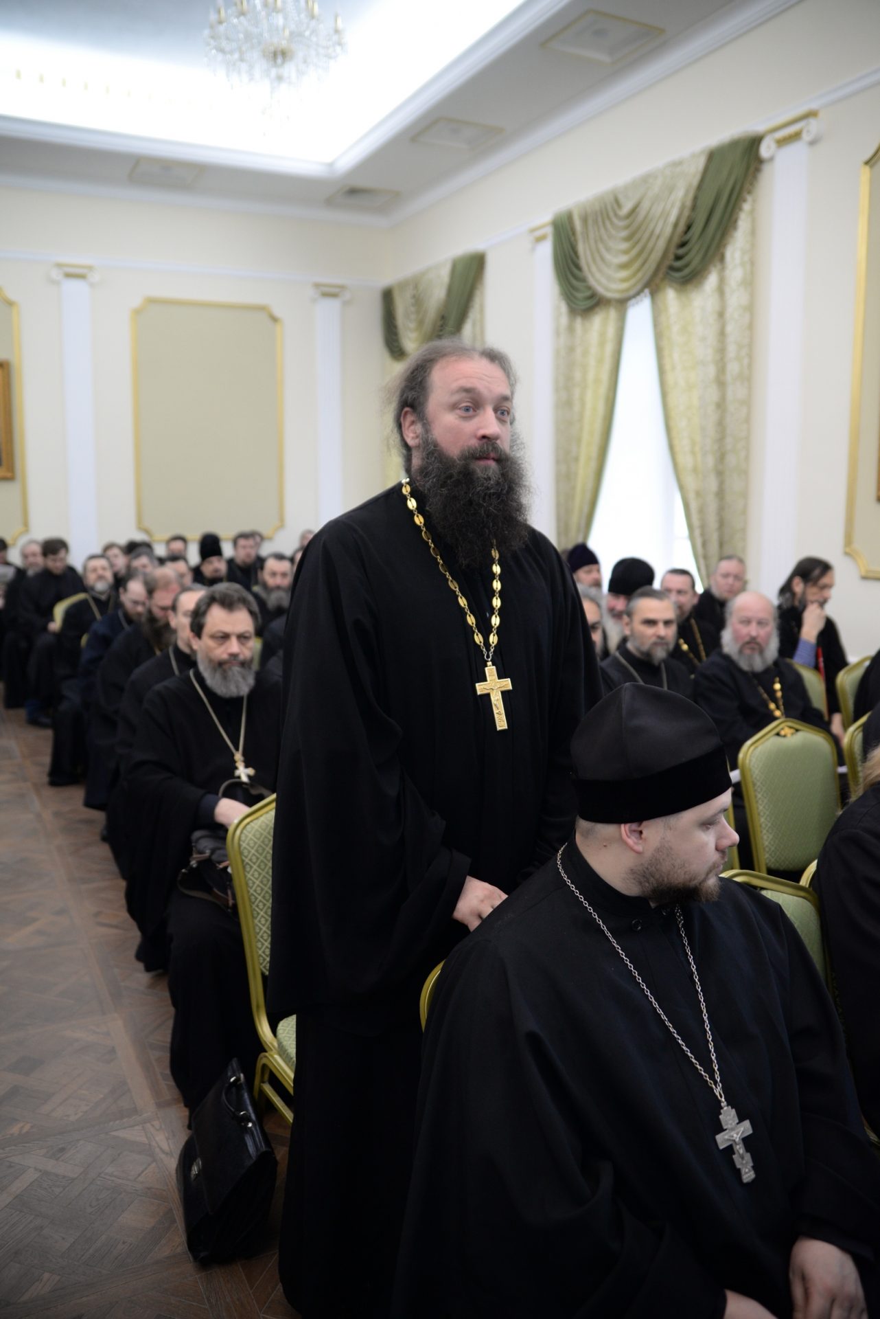Протоиерей Николай Суходолов, духовник Калужской епархии, настоятель храма в честь святого Василия Блаженного г. Калуга прочитал доклад на тему: «Священническая исповедь».