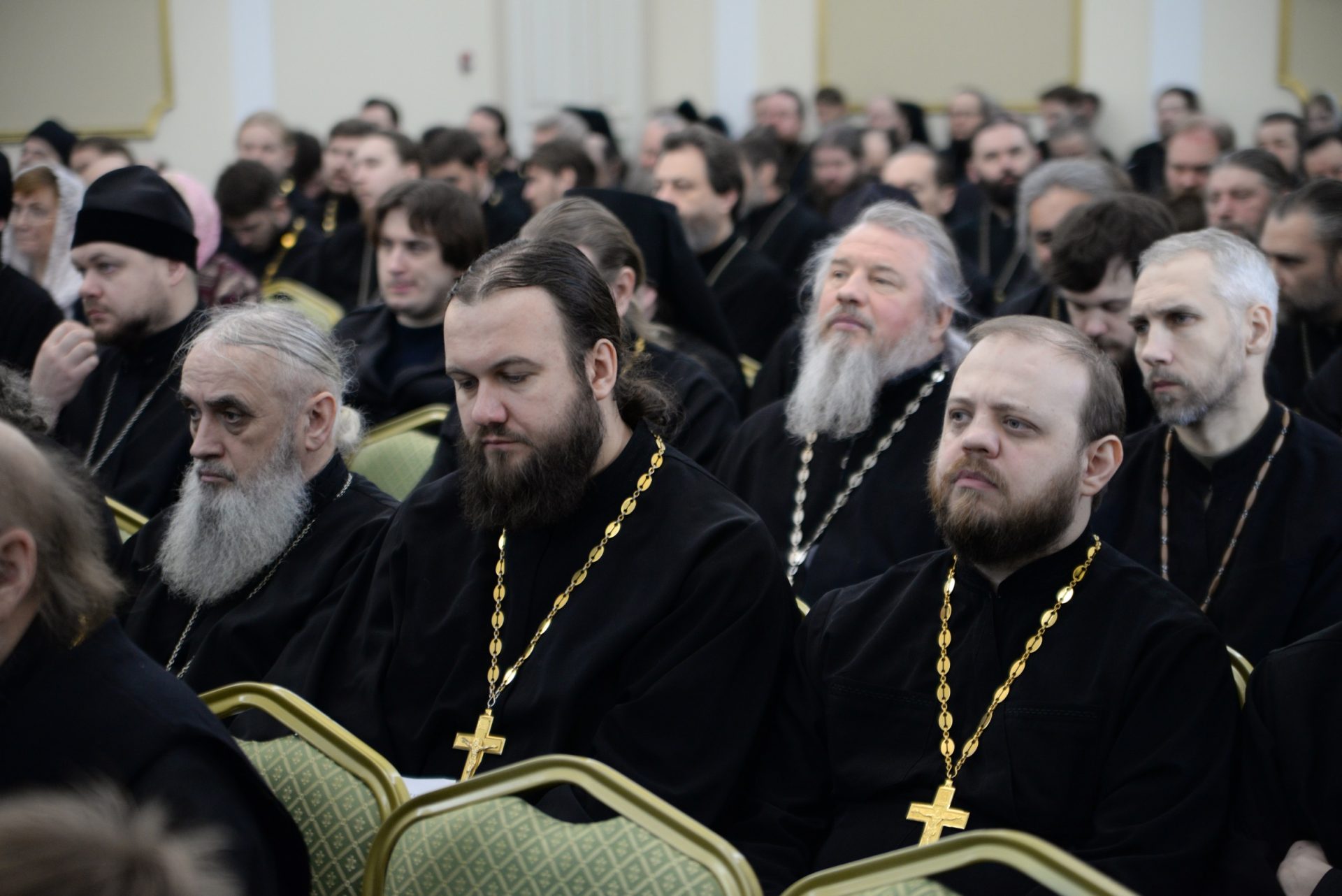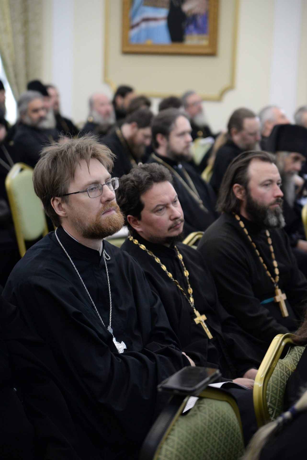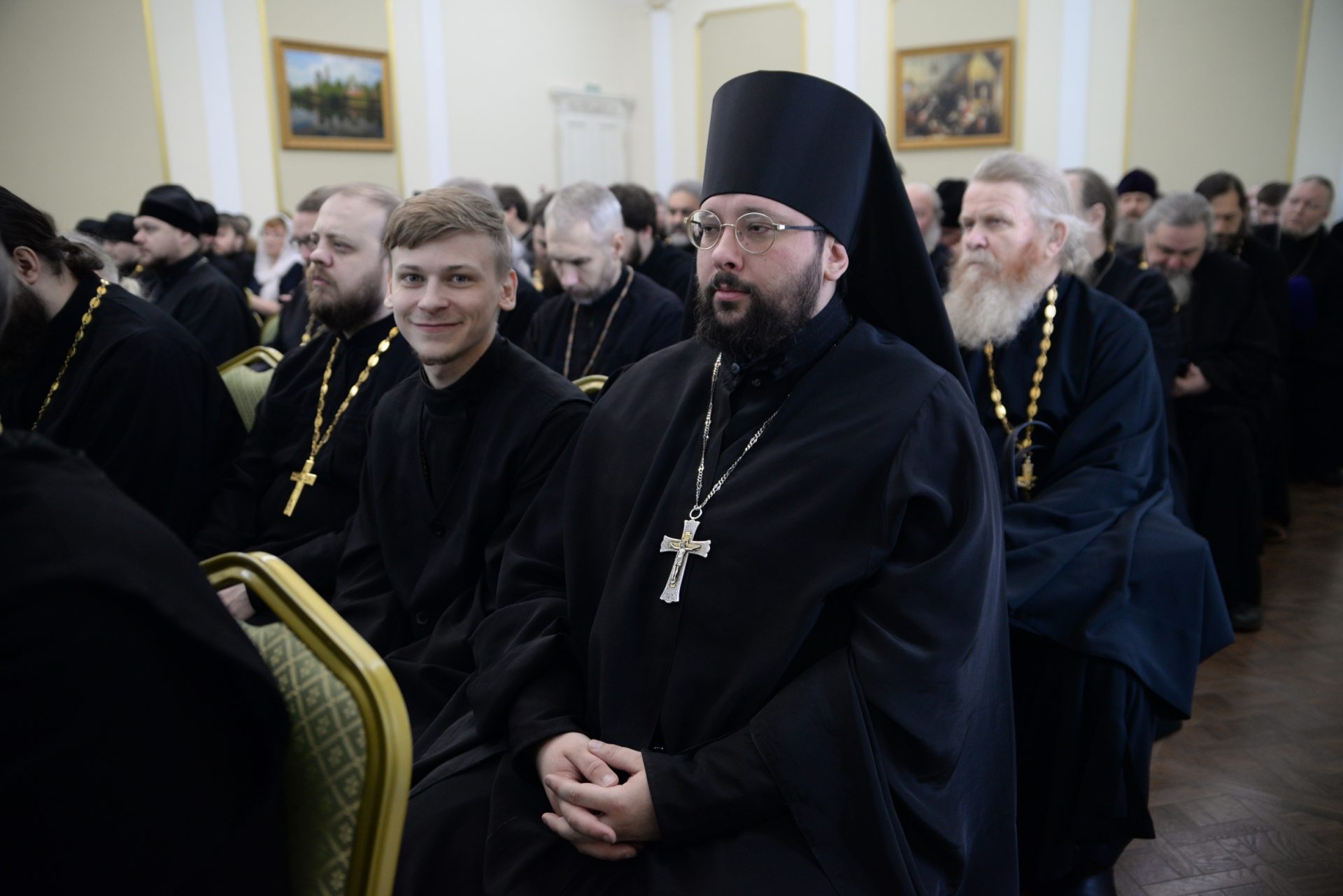 Архиепископ Песоченский и Юхновский Максимилиан и епископ Козельский и Людиновский Никита выступили с докладами «Священник вне храма» и «Священник в храме».