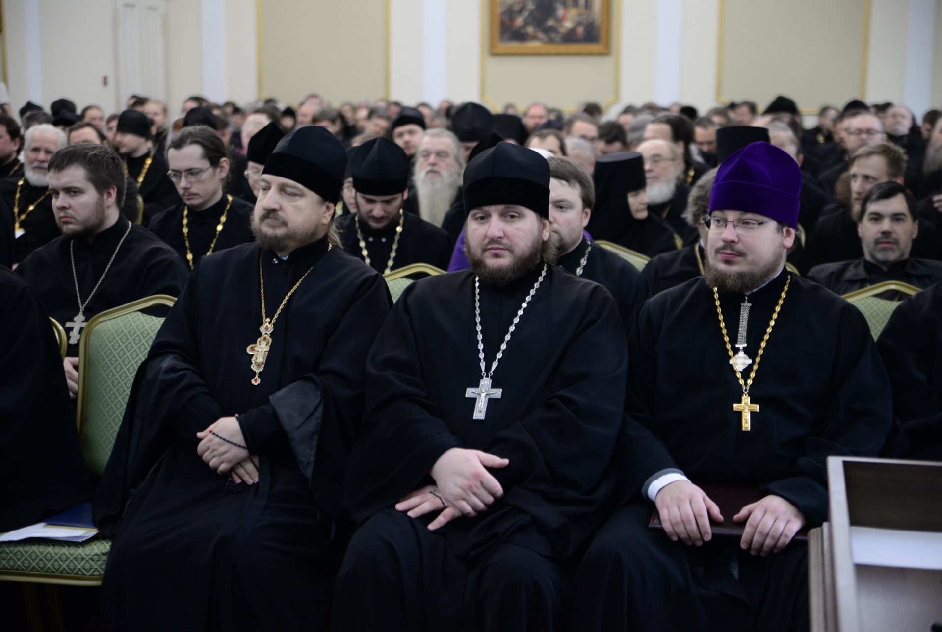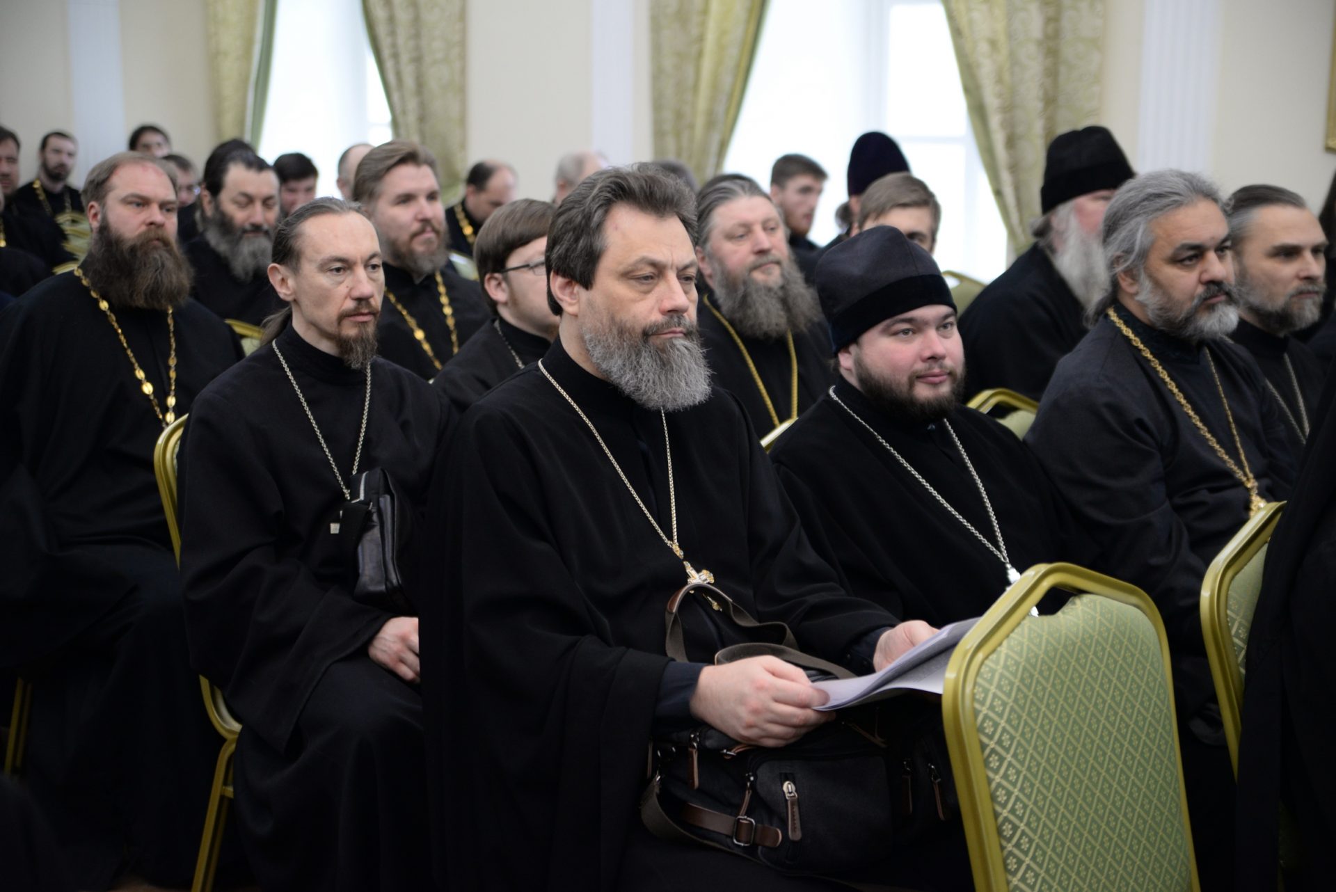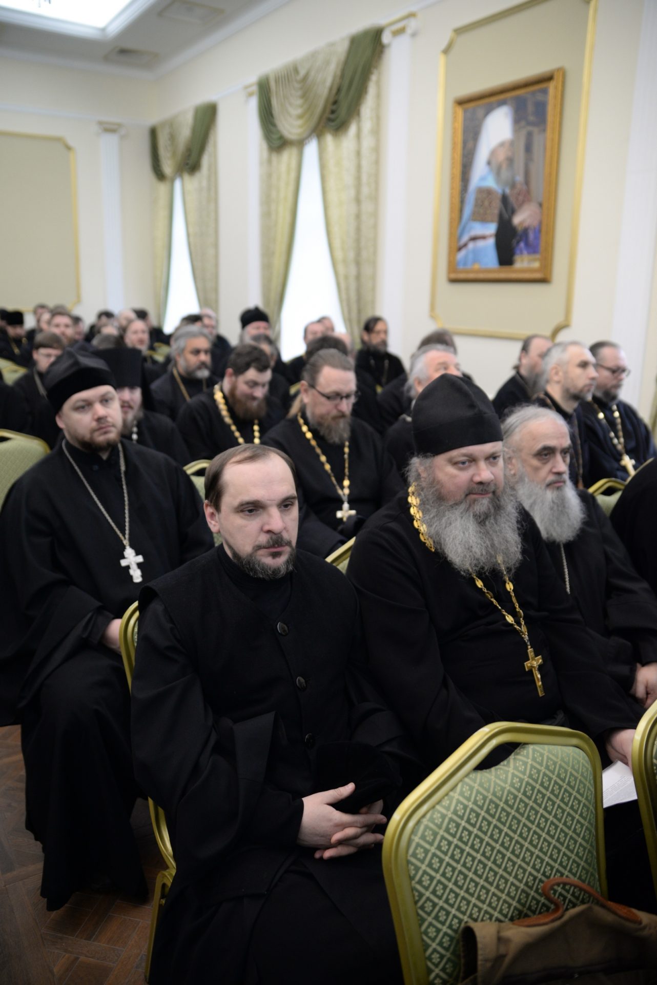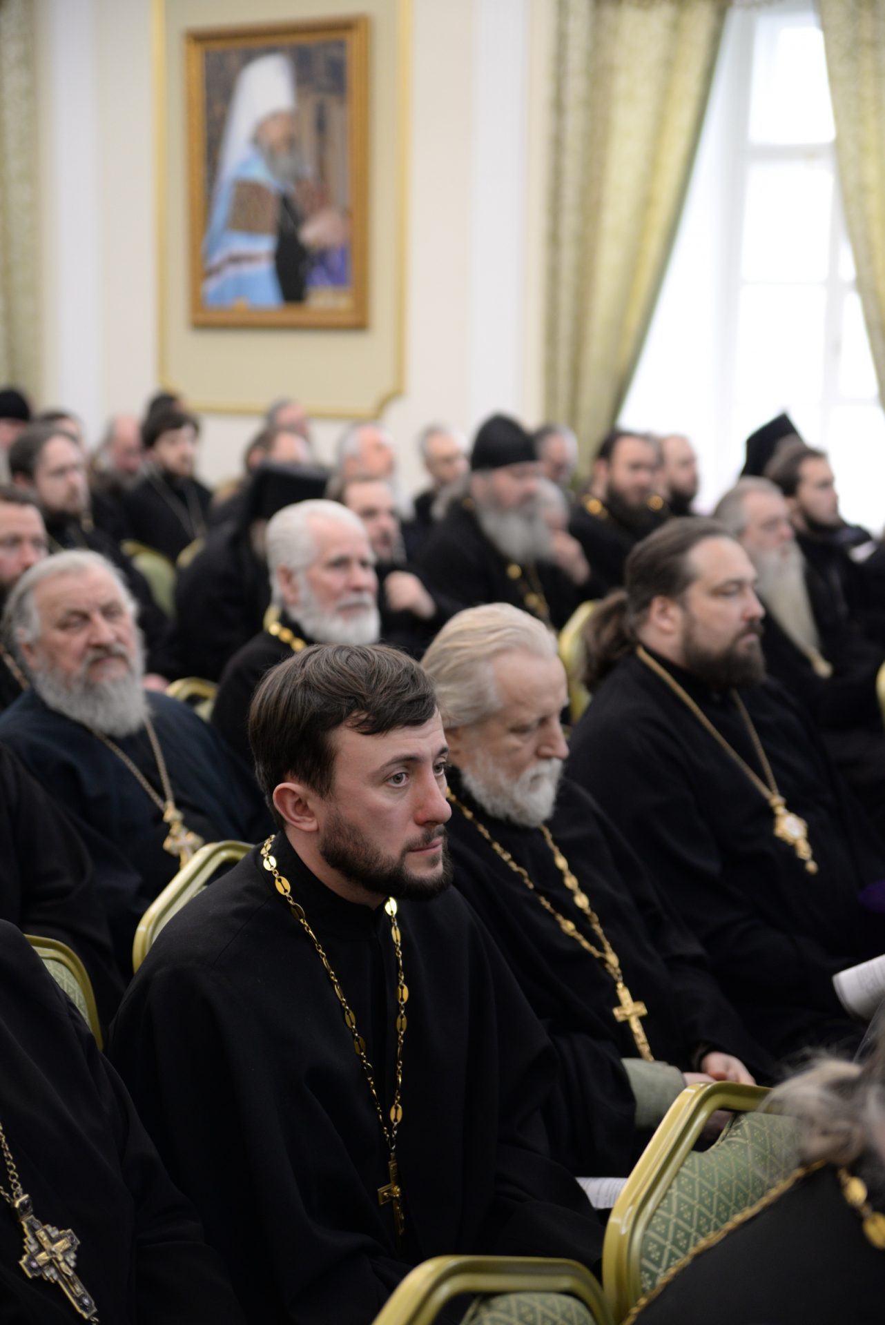 Архиепископ Песоченский и Юхновский Максимилиан и епископ Козельский и Людиновский Никита выступили с докладами «Священник вне храма» и «Священник в храме».