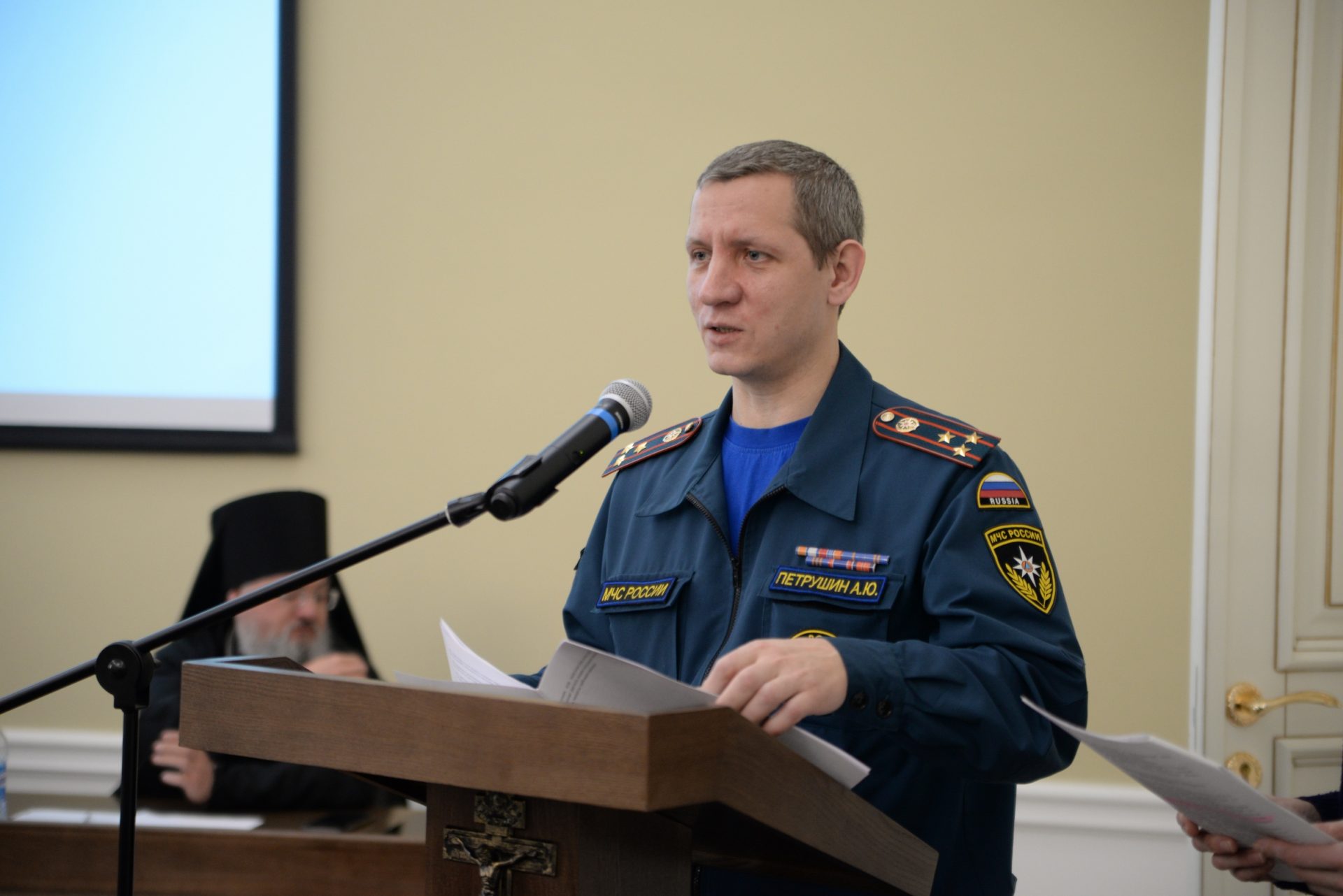 Перед духовенством выступили представители министерства внутренней политики и массовых коммуникаций Калужской области, а так же сотрудники МЧС, Росгвардии и сотрудники управления по охране памятников культурного наследия Калужской области.